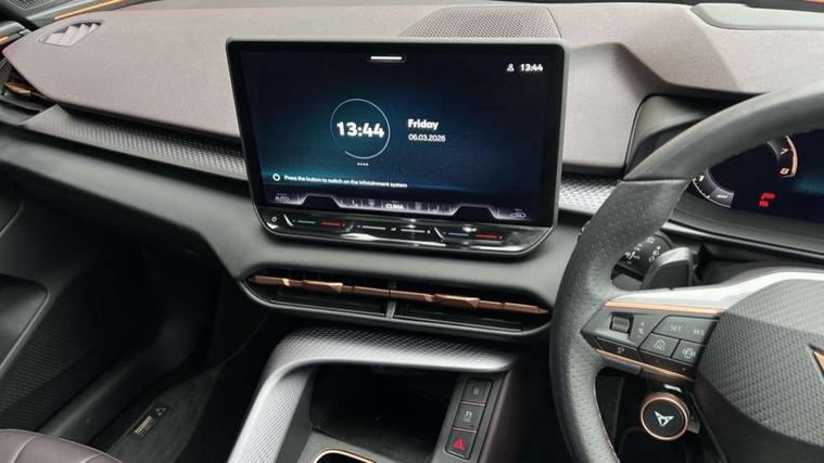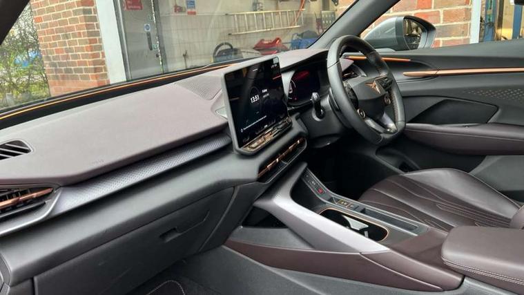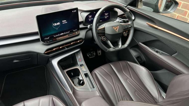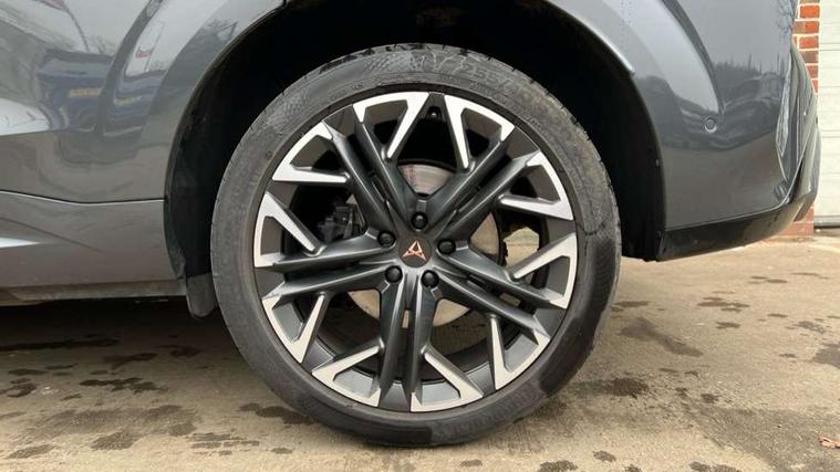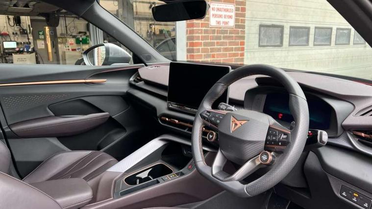10.25" digital cockpit and configurable dashboard, Adaptive cruise control with follow-to-stop and speed limiter, Advanced driver alert system, Advanced lane assist with semi-automatic vehicle control in a medical emergency and traffic jam assist, Driving profile selection (DCC- Comfort, performance, CUPRA, Individual, Dynamic road sign display, E-call, Electric tailgate with virtual pedal, Emergency steering support with turn assist, Front and rear parking sensors, Front assist (Forward collision warning with automatic braking) with multifunction camera and front cross traffic assist, Head up Display, Intelligent park assist, Media system with Nav - 12.9" touch display, voice control, full link phone (wired/wireless), DAB and Steering wheel mounted controls, Rear traffic assist, Side and exit assist, Speed sensitive power steering, Start/stop system with regenerative braking, Top view camera (front camera, rear camera, 2 side cameras), Wireless phone charger, Adaptive chassis control with a 2-valve shock absorber, Auto dimming rear view mirror, Black roof rails, CUPRA 3D rear lights with ceremony & swiping indicator and illuminated logo, Dark tinted rear windows, Daytime running lights with automatic headlight control and Coming and Leaving home function, Door mirrors with memory function and lowing function on passenger mirror, Electric front/rear windows, Electrically adjustable, heated and folding door mirrors, Front fog lamps with cornering function, Heat reflecting windscreen, High beam assist, Rain sensing wipers, Rear fog light on one side, back up light on both sides, Rear side wing doors, Rear wash/wipe, Third brake light, Welcome lights (within exterior mirror housing), 3 seat bench in 2nd row, Black roof lining, Cupra sports pedals, Driver seat memory function, Electrically adjustable front seats including lumbar support, Four x USB Type C ports (2 in front and 2 in rear), Front and rear head restraints, Front and rear reading lights X 4, Front centre armrest, Heated front seats, Heated leather wrapped multi function sports steering wheel with tiptronic, Illuminated interior front door sills, Isofix, Leather upholstery, Operating voltage 12V, Single front passenger seat, Smart wraparound interior lighting, Sunvisors with illuminated mirror, Three zone climate control with control panel in rear, Unsplit rear seat bench, split folding backrest, with centre armrest, Variable luggage/load compartment floor, Pure performance pack - Terramar, 3 point seatbelts in front with pretensioner and electric height adjustment, 3 point seatbelts on all rear seats, Brake control system - ESC and brake booster, Child proof door locks, Driver and front passenger airbags, Electronic parking brake, Front and rear disc brakes, Front interaction airbag, Front passenger airbag deactivation switch, Front side airbags with curtain airbags, Pre-crash front and rear seat belt tensioner, window closure and hazard lights, Tyre pressure monitoring system, Visual and acoustic seat belt reminder, electric contact in front and rear, Anti theft alarm, Keyless locking and starting system with keyless access, Locking wheel bolts, Black decorative trims, Chrome interior detailing, 20" Hadron exclusive machine alloy wheels, Performance tyres in polmer coating, Tool kit,