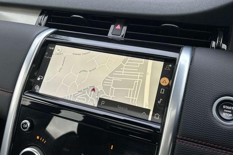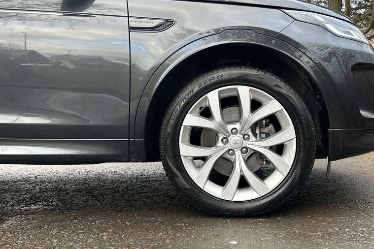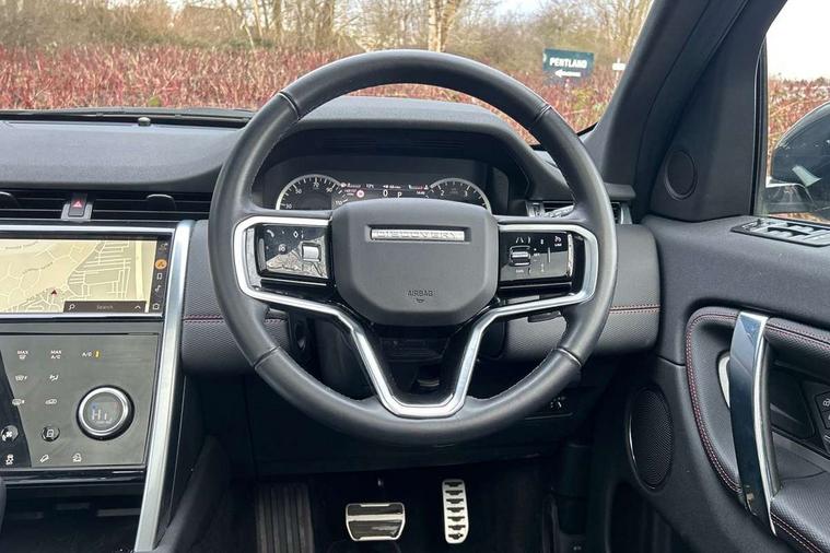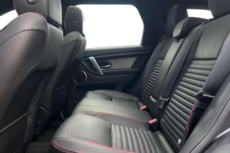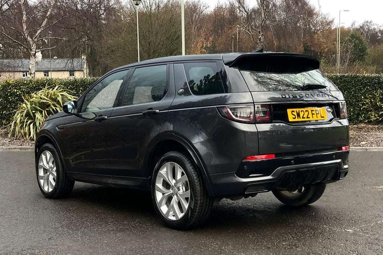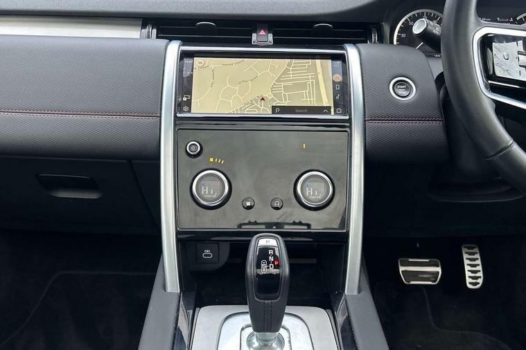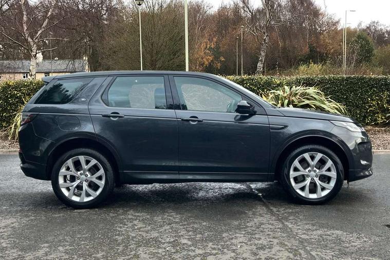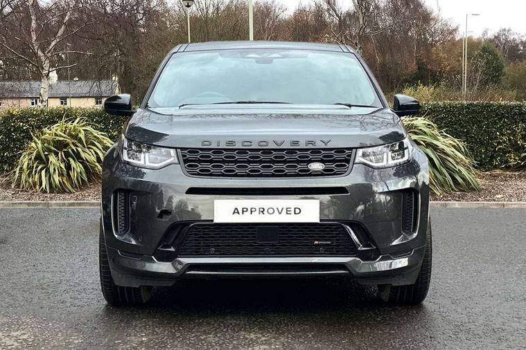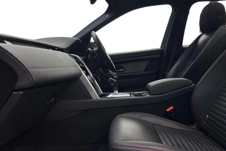10" touch screen, Adaptive cruise control, Android Auto, Apple CarPlay, Driver condition monitor, eCall emergency call system, Front and rear parking aid, InControl remote premium, Lane keep assist, Locking fuel flap, PAS, Pivi Pro connected navigation system with upgraded Infotainment, Powered tailgate/boot lid, Push button start, Rear collision monitor, Service interval indicator, Traffic sign recognition with adaptive speed limiter, Trip computer, Wade Sensing, All terrain progress control, Coil suspension system, Diesel particulate filter, Dynamic stability control, Terrain Response 2, Bluetooth connectivity including audio streaming, Digital Audio Broadcast radio-DAB, Steering wheel mounted audio controls, 3rd brake light, Automatic headlights, ClearSight interior rear view mirror, Electric front/rear windows, Electric heated/power fold door mirrors with approach lights and auto dimming driver side, Fixed panoramic sunroof with powered sunblind, Front and rear recovery eyes, Heated rear window, Heated windscreen including heated washer jets, No badges, R Dynamic badge, Rain sensing windscreen wipers, Rear fog lights, Rear side wing doors, Rear wing door, Rear wiper, 5 seats, Bright metal pedals, Centre console with armrest, Footwell lights, Front and rear grab handles, Front passenger isofix child seat attachment, Loadspace cover, Loadspace light, Overhead lighting console, Overhead stowage for sunglasses, Rear headrests, Satin chrome gearshift paddles, Sunvisors with illuminated vanity mirrors, Tilt/reach adjustable steering wheel, Black exterior pack - Discovery sport, Online pack with data plan - Discovery, 3 point seatbelts on all seats, ABS, Brake hold function, Child locks on rear doors, Collision mitigation braking system, Cornering brake control (CBC), Driver/Front Passenger airbags, Drivers knee airbag, Electronic brake force distribution, Electronic parking brake, Emergency brake assist, ESP + traction control, Hill descent control, Hill launch assist, Pedestrian airbag system, Rear seat ISOFIX, Roll stability control, Side and curtain airbags for front and 2nd row seats, Trailer stability control, Tyre pressure monitoring system, Battery Back Up System (BBUS) with tilt sensor, Global lock and unlock switch on driver door, Intrusion sensor, Keyless entry, Locking wheel nuts, Centre stack rails in noble chrome,
