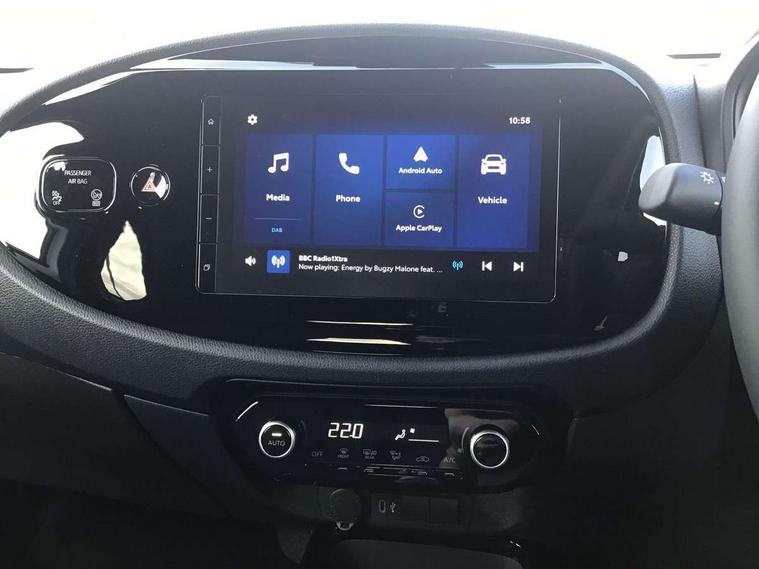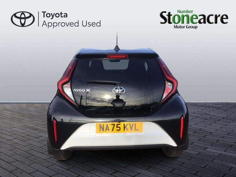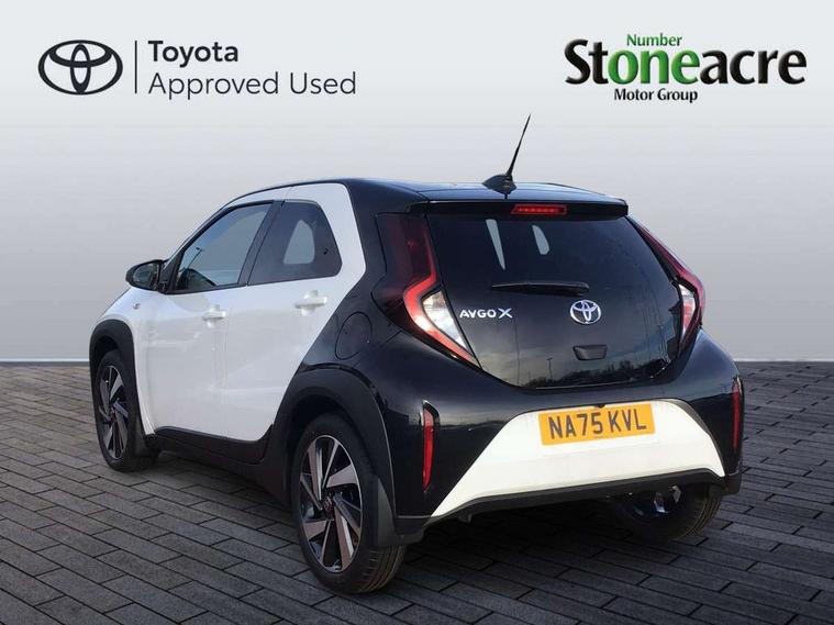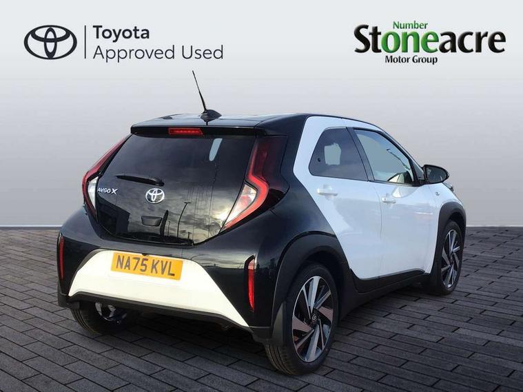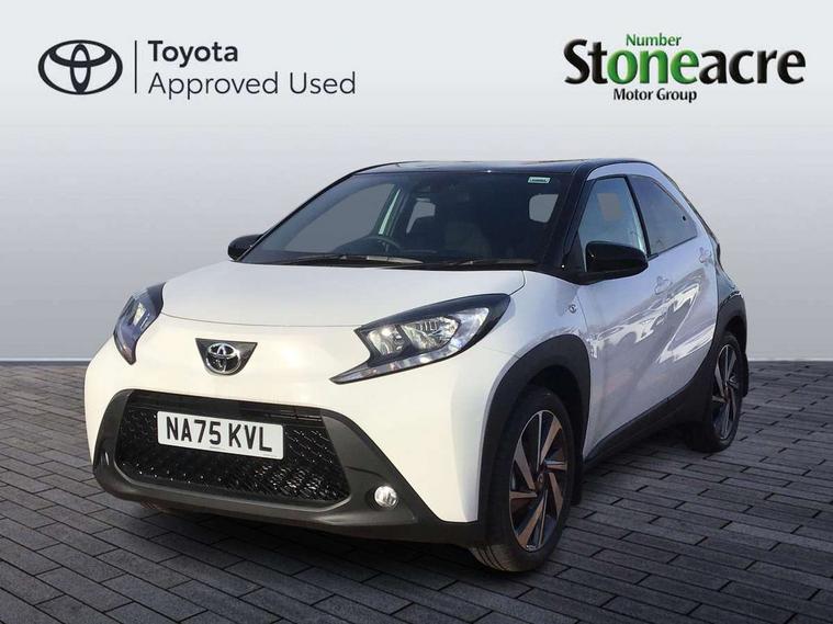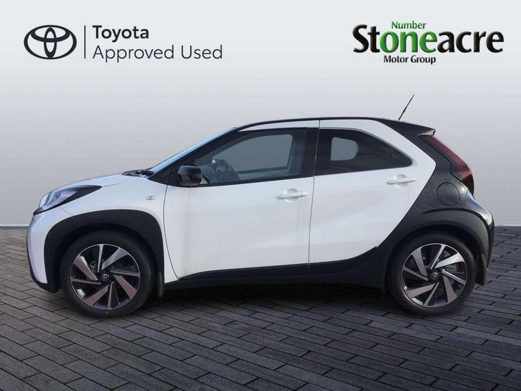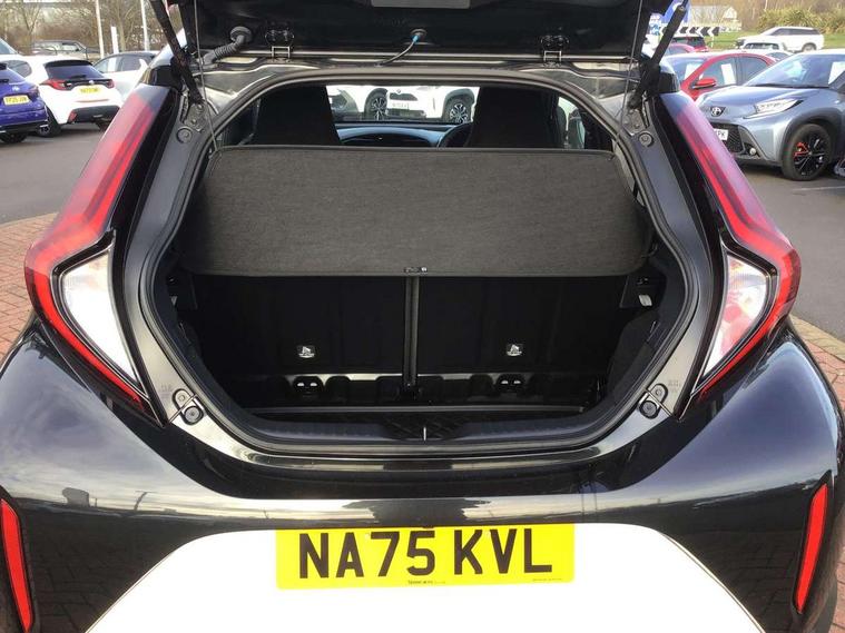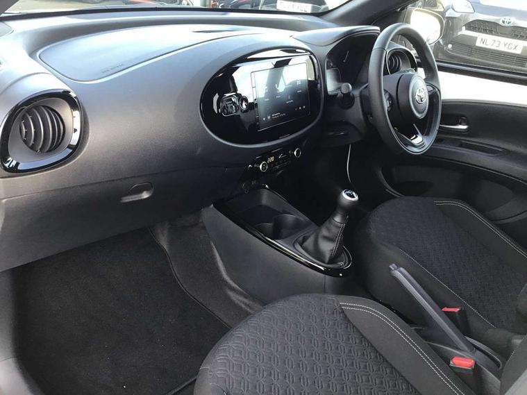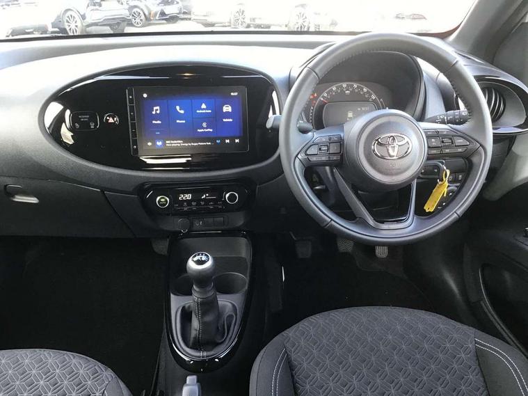 4.2" TFT colour screen, Adjustable speed limiter, Analogue speedometer, Bluetooth connectivity, Digital tachograph, Driver attention alert system, eCall emergency call system, Electric power steering, Intersection turn assist, Key reminder warning, Noise reduction kit, Pre collision system with emergency steering assist, Reversing camera with static guide lines, Smart phone integration with Apple car play/Android Auto, Speed limit display, Start and stop, Vehicle Stability Control (VSC), 4 speakers, 9" HD multimedia display touch screen with Toyota smart connect, DAB digital audio broadcast, USB connector, Auto headlights, Auto wipers, Automatic headlights cut-off, Bicycle towing hook, Black contrast roof, Black side protection mouldings, Black wheel arch mouldings, Body colour door handles, Body coloured front bumper, Boot door scuff plate, Eclipse black rear bumper, Electric heated door mirrors, Follow me home headlights, Front fog lights, Front power windows, Gloss black door mirrors, Gloss black upper front grille, Headlight cut-off reminder, LED daytime running lights, LED front light guide, LED High mounted stop lamp, Manual day/night rear view mirror, Manual headlight levelling, Pagoda roof, Power adjustable door mirrors, Power back door, Privacy glass, Projector halogen headlights, Rain sensor, Rear combination lights LED bulb type, Rear side wing doors, Rear windscreen defogger, Rear windscreen wiper, Short antenna, Variable intermittent windscreen wipers, 12v power outlet - front, 2 seat bench in 2nd row, 3 spoke leather steering wheel, 50/50 split folding rear seat, Adhesive roof headlining, Adjustable speed limiter switch on steering wheel, Audio and telephone switches on steering wheel, Auto air conditioning, Black insert on steering wheel, Black roof lining, Boot light, Centre room light, Chrome interior door handles, Chrome surround on air conditioning buttons, Clean air filter, Console box storage in body color, Fabric upholstery, Floor mats, Front and rear cup holders, Front head rest deco art, Front head restraints, Height adjustable driver seat, Intelligent adaptive cruise control switch on steering wheel, ISOFIX child restraint system on rear seats, Lane departure alert switch on steering wheel, Leather gearshift knob, Manual tilt steering wheel, Manually reclining and sliding driver seat, Manually reclining and sliding front passenger seat, Multimedia switches on steering wheel, Pollen filter, Rear door pockets, Rear head restraints, Satin silver insert on gear shift knob, Single compartment glovebox with lights, Single front passenger seat, Soft tonneau cover, Sun visors with mirror on driver and passenger side, Voice recognition switch on steering wheel, Toyota safety sense pack - Aygo X, Anti lock braking system + Electronic brake force distribution, Child safety door lock, Emergency brake light signal (EBS), Hill start assist control (HAC), Passenger airbag on/off switch, Seat belt reminder for front and rear seats, Supplement restraints system (SRS) - 6 airbags, Traction control, Tyre pressure warning system, Immobiliser, Remote power door locks, Black wheel centre caps, Tyre repair kit,