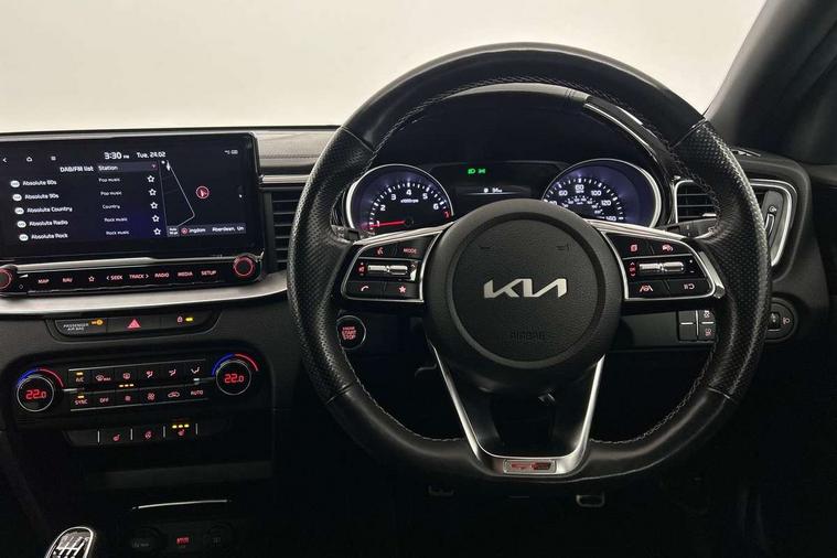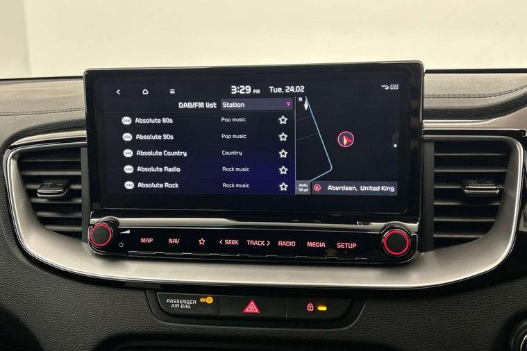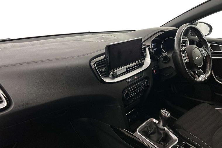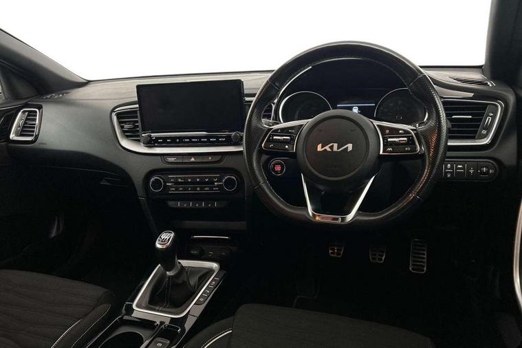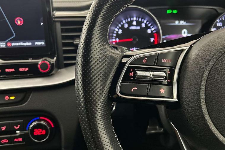 10.25" touchscreen satellite navigation including telematics, 4.2" supervision colour cluster display, Apple car play/Android Auto, Bluetooth with Voice Recognition & Music Streaming, Cruise control + speed limiter, Driver attention warning, Emergency call service, Emergency stop signalling system, Forward Collision-Avoidance Assist (FCA) - City/Pedestrian/Cyclist, Kia connected services featuring TomTom live, Lane keep assist, Motor driven power steering, Rear parking sensor, Reversing camera with dynamic guide lines, Trip computer, Intelligent Stop and Go, 6 speaker audio system, DAB Radio with MP3, Illuminated USB & aux ports, Steering wheel mounted controls, USB & AUX Ports for Connection of a Media Device, USB Fast Charger in Front Centre Console, 3rd brake light, Air intake with black accent lower lip, All-round Electric Windows with Front Auto Up & Down Function, Auto dimming rear view mirror, Automatic defog system, Automatic headlights, Body colour bumpers, Body colour exterior door handles, Body coloured rear roof spoiler with high gloss black trim, Chrome window surround, Electric adjustable/heated/folding door mirrors with LED Indicators, Exterior front door handle illumination, Front fog lights, Front wiper de-icer, Headlamp levelling, Heated rear window with timer, High beam assistant, High Gloss Black and Satin Chrome Radiator Grille, High gloss black door mirrors, High gloss black side sill mouldings, LED daytime running lights, LED full width tail lights, LED rear fog light, LED rear lights, Privacy glass in rear windows and tailgate, Projection headlights, Puddle lights, Rain sensing front wipers, Rear side wing doors, Rear wash/wipe, Wide view drivers door mirror, Windscreen Washer Level Warning, 2 x 12V Power sockets (Front centre console), 3 seat bench in 2nd row, 3 x passenger assist grips, 60/40 split folding rear seat, All-round height adjustable headrests, Aluminium pedals, Black headlining, Centre console storage and sliding armrest, Cloth/faux leather upholstery, Cupholders in rear armrest, Dash illumination dimmer switch, Driver & Front Passenger Sunvisors with Vanity Mirror Illumination & Ticket Holder, Driver + front passenger electric lumbar support, Driver's seat height adjuster, Dual zone automatic air conditioning, Front and rear door storage, Front map light with sunglasses case, Front Passenger Seat Height Adjuster, Front seat and rear pockets, Gear shift indicator, Heated front seats, Heated steering wheel, Illuminated ignition key hole, Interior door lock/unlock function, ISOFIX Child seat top tethers and anchor fixings, Leather D-Cut steering wheel with grey stitching, Leather gearshift, Load area cover, Luggage area light, Luggage area parcel shelf, Luggage hooks, Premium centre console with sliding cupholder cover, Rear Air Ventilation, Rear centre armrest, Rear coat hooks, Satin chrome interior door handles, Single front passenger seat, Tilt/telescopic adjustable steering wheel, ABS with Electronic Brakeforce Distribution (EBD) and Brake Assist System (BAS), All round 3-point seatbelts, Dual front side airbags, Dual horn, Electric parking brake, Electronic stability control (ESC) and vehicle stability management (VSM), Front passenger airbag deactivation, Height adjustable front seatbelts, Hill start assist control (HAC), Impact sensing auto door unlocking, Rear door child safety locks, Seatbelt reminder warning, Traction control, Twin curtain airbags, Twin front airbags, Tyre pressure monitoring system, Alarm system, Engine Immobiliser & Deadlocks, Engine Start/Stop Button with Smart Entry System, Locking wheel nuts, Speed sensitive auto door locking, Black high gloss front console tray garnish & door trim, Satin Chrome Fascia Trim, 17" GT-Line alloy wheels, Tyre mobility system,