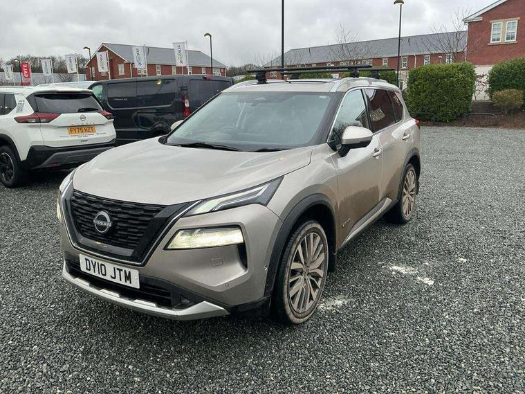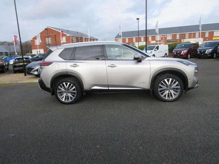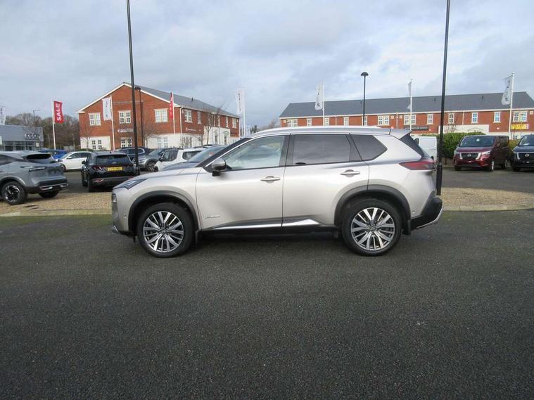 Advanced 10.8" head up display, Android auto/Apple CarPlay (Wired), Blind spot warning, Drive modes (sport, normal, eco, snow, off-road), e-Pedal step, Electric speed sensitive power steering, Emergency and breakdown call, Front and rear parking sensors, Full Digital 12.3" TFT Digital Combimeter, Google maps services - search, weather, 3D maps and Google street view, Hands free power tailgate, Idle stop/start system, Intelligent around view monitor, Intelligent driver alert system, Intelligent forward collision warning, Intelligent lane departure warning, Intelligent lane intervention, Intelligent lane keep assist, Lane departure prevention, Maximum speed limiter, Moving object detection, Nissan connect 12.3 inch touchscreen infotainment system, Nissan connect nav with TomTom traffic, Pro pilot and head up display, ProPilot park, Push button starter, Rear cross traffic alert, Rear view camera, Remote control services - door locks, lights, horn and car locator, Telematics - notifications and connectivity services, TomTom live traffic services, Traffic jam pilot, Traffic sign recognition with legal speed adjustment, Trip computer, Virtual personal assistant and firmware over the air capability, Wireless apple carplay, Wireless charging pad, AM/FM audio system with DAB, Bluetooth audio streaming, Bose premium acoustimass bass box with digital amplifier, Bose premium sound system with 10 speakers, Digital amplifier, Front USB connections (Type-A and Type-C), Rear USB charging only ports (Type-A and Type-C), 3rd brake light, Auto dimming rear view mirror, Auto rear wiper when reversing, Body colour mirror caps, Body coloured door handles, Bodyside mouldings, Chrome side window finisher, e-4ORCE badging, e-POWER badging, Electric auto folding door mirrors, Electrically adjustable and heated door mirrors, Follow me home headlights, Headlights auto levelling system, High beam assist, Intelligent auto headlights, LED daytime running lights, LED front fog lights, LED headlights with adaptive driving beam, LED rear lights, Memory function for door mirrors, One touch front and rear electric windows with remote opening and closing, Partially body coloured bumpers, Rain sensing wipers, Rear privacy glass, Rear reversing light (bulb lighting), Rear roof spoiler, Rear side wing doors, Rear styling plate, Reverse tilting door mirrors, Shark fin antenna, Splash free wipers, Super UV and infrared cut glass, Thermaclear heated windscreen, Three blink turn signal, 12v power socket in dashboard and luggage, 3 bench rear seats in 2nd row, 3 rear headrests, Butteryfly console, Chrome interior door handles, Dark headlining, Driver and front passenger sunvisors with illuminated vanity mirrors, Driver seat back pocket, Electric adjustable 2 way lumbar support for driver, Electrically adjustable driver seat with massage and memory functions, Electrically adjustable passenger seat with massage and memory functions, Front and rear heated seats, Front centre console and armrest, Front cupholders, Front door with bottle holders, Heated steering wheel, Height adjustable driver's seat, Height adjustable front headrests, Height adjustable passenger seat, Leather shift knob, Leather steering wheel, Luggage board system, Luggage space lighting, Multifunction steering wheel, Passenger seat back pocket, Quilted premium leather upholstery, Rear armrest with 2 cupholders, Rear door bottle holders, Single front passenger seat, Sliding second row seats, Split folding 2nd row - 40/20/40, Steering column mounted gear shift paddles, Tilt/telescopic adjustable steering wheel, Tri zone automatic climate control with pollen filter, Two rear isofix child seat anchorage points with top tether, Sky pack - X-Trail, 3x3 point rear seatbelt pretensioners + load limiters, ABS with EBD and brake assist, Active brake limited slip, Auto hold function, Child locks on rear doors, Curtain and front side, far side airbags, Driver and passenger airbags, Driver, passenger and 2nd row rear seat belt reminder, Electronic parking brake, Front seatbelt pretensioners + load limiters, Height adjustable front seatbelts, Hill start assist, Intelligent blind spot intervention, Intelligent front emergency braking with pedestrian, cyclist recognition and junction assist, Intelligent rear automatic braking, Tyre pressure monitoring system, Vehicle dynamic control, Advance intelligent key with driver memory storage (seats, mirrors, audio), Engine immobiliser, Remote central door locking with deadlocking, Thatcham Cat.1 alarm, 20" Diamond cut alloy wheels, Tyre puncture repair kit,