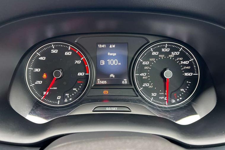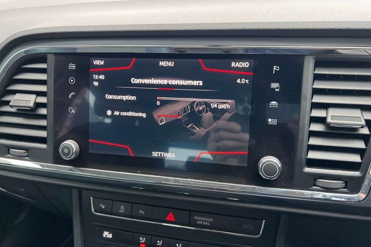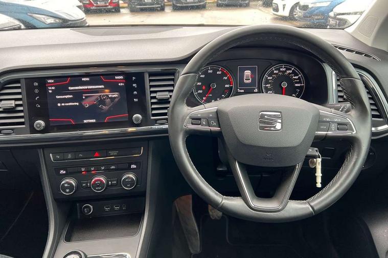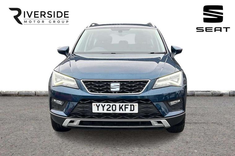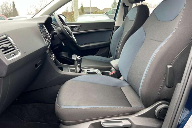 'Lights On' Reminder warning buzzer, 3.5" driver's display, Cruise control, Digital clock, Driver alert system, Electric speed sensitive power steering, Front assist city emergency braking and pedestrian protection, Full Link Smartphone Integration with Mirror Link, Apple Car Play, Google Android Auto, Low fuel warning light, Multi function display, Outside temperature gauge, Remote fuel flap release, RPM counter, Satellite navigation system, SEAT logo boot release, Self parking functionality (includes front and rear parking sensors), Trip computer, Comfort suspension, XDS electronic differential lock, SEAT USB media cable, Steering wheel mounted audio/phone controls, Armrest with air outlet in rear, Black wheel arch extensions, Body colour bumpers, Body colour door handles, Body colour door mirrors, Chrome front grille frame, Chrome headlight surround, Chrome roof rails, Chrome side window trim, Door mirrors with welcome light silhouette, Electric adjustable/heated/folding door mirrors, Front and rear electric windows, Full LED headlights, Hidden exhaust pipe, LED daytime running lights, LED front fog lights, Matt black radiator grille, Rear fog lights, Rear LED tail lights, Rear wash/wipe, 12V socket in front, 4 Lashing eyes in boot, 60/40 split folding rear seat, Active head restraints, Adjustable front armrest with storage compartment, Ambient spot lighting and front footwell illumination, Cloth upholstery with front comfort seats, Driver and passenger seats, height-adjustable, with lumbar adjustment and height-adjustable headrests, Driver and passenger sun visor, covered and illuminated mirror, driver sun visor with card holder, Dual zone climate control, Front courtesy lights, Front cupholders, Front reading lights, Front seat back storage pockets, Gear shift indicator, Illuminated boot, Illuminated glovebox, Instrument lighting with brightness control, ISOFIX points in outer rear seats with top tether anchorage points, Leather steering wheel and gear knob, Rear armrest and easy back seat release mechanism from boot, Rear head restraints, Rear reading lights, Storage box under drivers seat, Navigation system pack - Ateca, 3x3 point rear seatbelts, ABS, Automatic post collision braking, Driver/Front Passenger airbags, Drivers knee airbag, Electronic parking brake with auto hold, Electronic stability control, ESP+EBA, Front and rear seatbelt reminder, Front passenger airbag deactivation, Front side airbags, Hill hold control, Tiredness recognition system, Traction control, Twin curtain airbags, Tyre pressure monitoring system, 2 folding remote keys with window open/close function, Immobiliser, Locking wheel bolts, Remote central locking, Volumetric alarm with back up horn, Chrome interior detailing, 18" Performance machined alloy wheels 36/2,