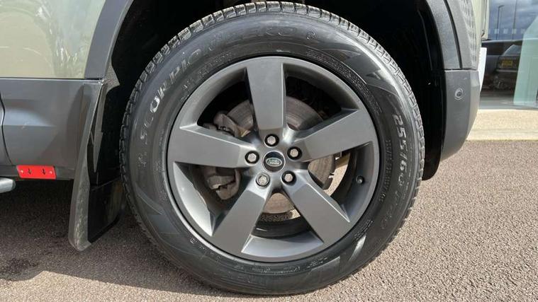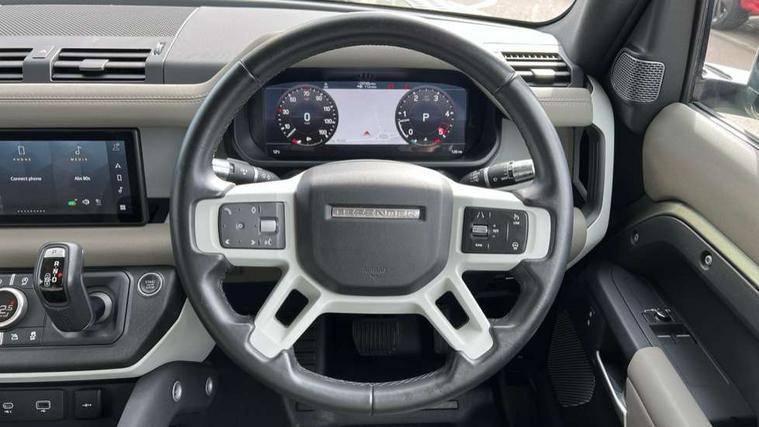 360 degree parking aid, 3D Surround Camera with 360 View, 180 Rear View, Front Traffic Detection, Forward Vehicle Guidance, Tow Hitch Assist and clear sight Ground View, Android Auto, Apple CarPlay, Assisted tailgate with soft close, Bluetooth system, Brake pad wear indicator, Click and go integrated base unit, Connected navigation pro, Driver condition monitor, Electric power assisted steering (EPAS), Interactive driver display, Lane keep assist, Push button start, Traffic sign recognition with adaptive speed limiter, Trip computer, Wade Sensing, DAB Radio (Digital Audio Broadcasting), Pivi pro connected, Auto high beam assist, Automatic headlights, Centre high mounted stop light, Electric heated/power fold door mirrors with approach lights and auto dimming driver side, Electric windows with one touch open/close and anti-trap, Follow me home lighting, Heated rear window with timer, Heated windscreen, LED tail lights, Puddle lights, Rain sensing windscreen wipers, Rear fog lights, Standard tread plates, Trailer stability assist, 12V power socket in loadspace, Carpet mats, Durable rubber cabin flooring, Durable rubber loadspace flooring, Footwell lights, Loadspace cover, Loadspace Hook, Multifunction steering wheel, Overhead stowage for sunglasses, Rear headrests, Rear ISOFIX, Rear reading lights, Storage glovebox, Sunvisors with illuminated vanity mirrors, Online pack with data plan - Defender, 5 x 3 point seatbelts, ABS, Brake hold function, Cornering brake control (CBC), Customer configurable autolock, Driver and passenger airbags, DSC - Dynamic Stability Control, EBD - Electronic brakeforce distribution, Electric parking brake (EPB), Emergency braking, ESP + traction control, Front airbags with passenger seat occupant detector, HDC - Hill descent control, Hill launch assist, Low traction launch, Power operated child locks, Remote for (e-Call, Optimised assistance call, InControl app, Climate, beep and flash and door), RSC - Roll stability control, Seat belt reminder, TPMS (Tyre pressure monitoring system), Alarm, Immobiliser, Intrusion sensor, Keyless entry and go, Locking wheel nuts,