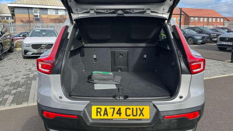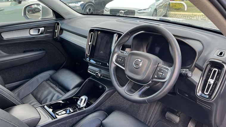 12.3" Progressive Driver Display, 360 degree surround view parking camera with side proximity sensors, 9" centre console portrait touch screen, Adjustable steering wheel force, Android auto (Wired), Apple carplay (wired), Bluetooth handsfree system, Driver alert control, Driver assistance (pilot assist and adaptive cruise control), Driver awareness - Blind spot information system with steer assist, cross traffic alert with autobrake and rear collision warning and mitigation, E-call, Front park assist, Google automotive services - Enabled entertainment apps, navigation with google maps, voice recognition with google assistant, Hands free power tailgate, Intelligent speed assistance, Lane keeping aid, Oncoming Lane Mitigation, Rear park assist, Speed sensitive steering, Volvo cars services with app - Driving journal, emergency and breakdown call, engine remote start, remote door locking/unlocking and vehicle dashboard, Wireless/Inductive Mobile Phone Charging, Automatic transmission with start/stop and manual change functions, Dynamic chassis, DAB Digital radio, Premium Sound by Harman Kardon, Dolby Pro Logic II Surround Sound, Dirac Unison, 12 speakers/600W and subwoofer, Steering wheel mounted remote controls, Active bending pixel LED headlights with adaptive shadow technology, Active high beam incorporating daytime running lights, Adaptive brake lights with high level LED brake lights, Auto dimming feature for exterior door mirrors, Auto dimming interior mirror, Automatic headlamp levelling, Dark tinted windows - rear side windows and rear screen, Front aluminium tread plates, Front and rear electric windows, Headlight cleaning system, High gloss black front and rear skid plate, High gloss black front bumper deco, High gloss black mesh front grille with high gloss black surround, High gloss black window trim, Home safe and approach lighting, Integrated roof rails in high gloss black, LED front fog lights with cornering function, Power glass tilt and slide panoramic sunroof with sun curtain, Puddle lights, Rain sensor with automatic windscreen wiper activation, Rear side wing doors, Rear wiper, Roof antenna, Roof spoiler, Visible VIN plate, 12V socket in front tunnel console and luggage compartment, 2-Zone electronic climate control with CleanZone air quality system and pollen filter, 3 seat bench in 2nd row, 3 Spoke tailored steering wheel with chrome trim, 60/40 versatile split folding rear seat, Centre console cupholders and storage, Flexible load floor and grocery bag holder, Floor mats, Front cabin courtesy lights, Front door pocket, front cupholder, ambient front door, rear reading, rear courtesy, instrument panel and tailgate lighting, Front footwell illumination, Front headrests, Front reading lights, Front seat cushion extensions, Front side step illumination (under door), Glovebox bag hook, Heated front seats, Height/reach adjustable steering column, High gloss centre tunnel deco, Illuminated glovebox, Illuminated luggage compartment, Illuminated vanity mirrors + ticket holder, Integrated waste bin, Isofix attachments on outer rear seats, Load cover, Load protection net, Multi directional lumbar support for driver and passenger seat, Power driver seat with memory + exterior mirrors memory, Power folding rear headrests, Power passenger seat, Rear armrest with cupholders, Single front passenger seat, Underfloor cargo storage, Climate pack without heated front seats - XC40, 3x3 point rear seatbelts, City safety with steering support with Pedestrian + cyclist + front collision warning with full auto brake and rear auto brake, Driver and passenger airbags, Drivers knee airbag, Electronic parking brake with auto hold, First aid kit, Front and outer rear seatbelt reminder and pretensioners, Front seats SIPS airbags, Hill descent control, Hill start assist, Inflatable curtain, Passenger airbag cut-off device, Power child locks on rear doors, Road sign information display, Run off Road Protection, SIPS (Side Impact Protection System), Slippery road and hazard light alert, Stability and Traction Control with Spin control, Engine Drag Control and Corner Traction Control, Tyre pressure monitoring system, Vehicle deceleration control with Anti-lock Brake System, Electronic Brake Distribution and Emergency Brake Assist, Warning triangle, WHIPS whiplash protection system - front, 2 x Key integrated remote control central locking including with deadlocking system and auto open/close windows and sunroof, Anti-theft alarm including immobiliser/volume sensor + level sensor, Keyless drive includes keyless entry and keyless start, Locking wheel nuts,