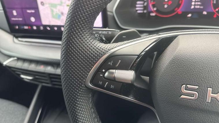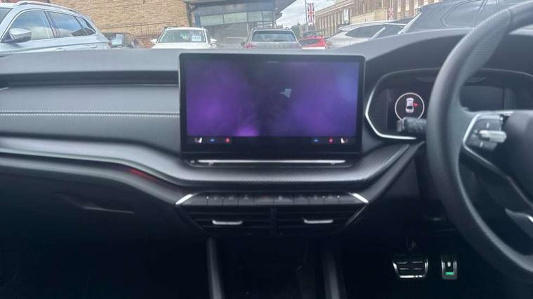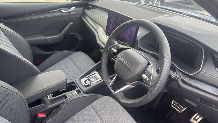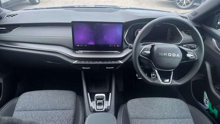 1x USB Typc C port in rear view mirror, 4x USB Type C ports - 2x in front centre console and 2x in rear (45W), Drive mode selection, Driver fatigue sensor, eCall emergency system, Front assist system, Progressive dynamic steering, Traffic sign recognition, Turn Assist, Virtual Cockpit - 10.25" digital display, Voice control system, Wireless charging (15W) with cooling function, Wireless SmartLink for Apple CarPlay and Android Auto, Sports suspension with 15mm lower, 13" touchscreen display with navigation, DAB Digital radio, Aero front windscreen wipers with intermittent function, Auto dimming rear view mirror, Body colour bumpers, Body colour door handles, Chrome strip in lower front bumper, Electric front and rear windows, Exterior gloss black sports styling including front grille, window surrounds, door mirrors and badging, Gloss black diffuser, Gloss black spoiler, Heated rear windscreen, High beam control, High level third brake light, Ice scraper in fuel cap, LED daytime running lights, Logo projection in front doors, Rain and light sensors, Rear fog light on one side and reversing lights on both sides, Rear privacy glass, Rear side wing doors, Rear wiper, 12 volt socket in boot, 3 rear headrests, 3 seat bench in 2nd row, 4 foldable roof handles, Aluminium pedals, Boot net programme, Electric auxiliary air heater, Front head restraints, Front sport seats, Heated front seats, Illuminated glovebox, Interior door handles in dark chrome, Jumbo Box storage, Luggage compartment lighting x2 lights, Mechanical rear seat release from boot, Parcel shelf - folding, Single front passenger seat, Steering wheel in black leather with black stitching, Storage compartment under passenger seat, Storage compartments in left and right of boot, Sun visors with mirrors, Sunglasses storage, Three spoke leather sports multifunction steering wheel with paddles, Ticket holder, Umbrella in door panel, Unsplit rear bench seat, split folding backrest with centre armrest with cupholder, SportLine Design Selection pack - Octavia, 3x3 point rear seat belts, Alarm with interior monitoring, tilt sensor and back up horn, Curtain airbags and front side airbags, Driver and front passenger airbags, Drivers knee airbag, Electronic parking brake, ESC including ABS, EBV, MSR, ASR, EDS, HBA, DSR, Front central airbag, Hill hold assist, ISOFIX on front passenger seat and outer rear seats, Passenger airbag deactivate switch, Three point seat belts in front and rear, Two tone horn, Tyre pressure monitor, Visual and acoustic seat belt reminder, Warning reflectors in front door, Anti-theft wheel bolts, Keyless entry and start/stop, Remote central locking, Gloss black air vent surrounds,