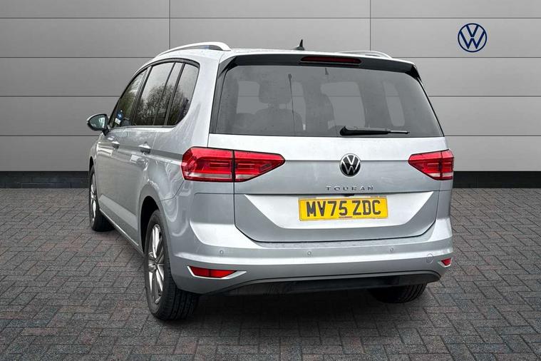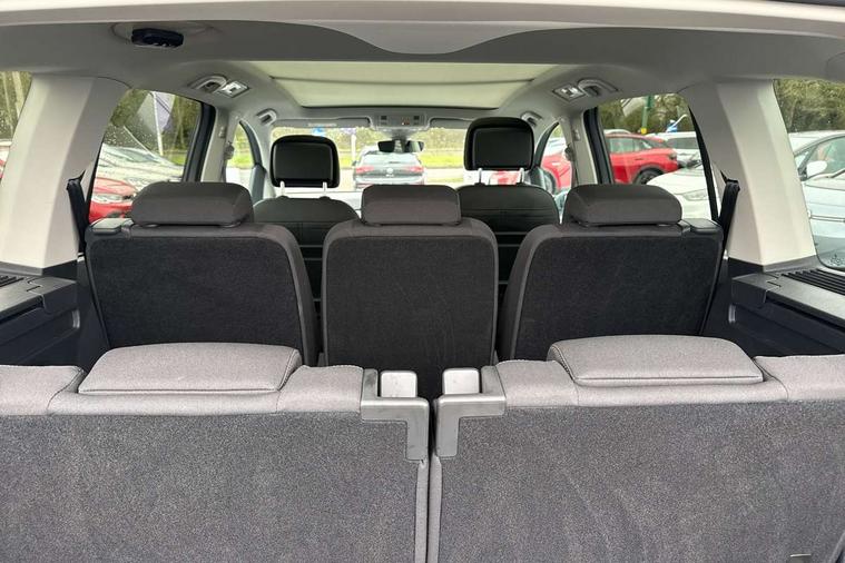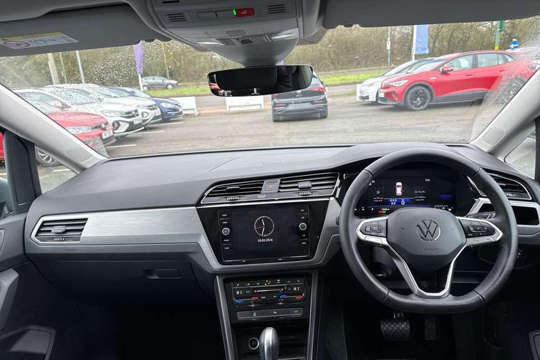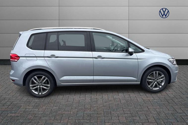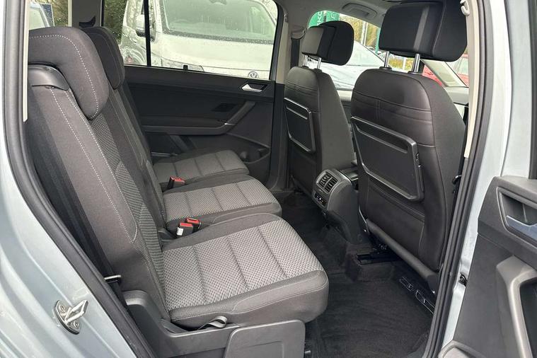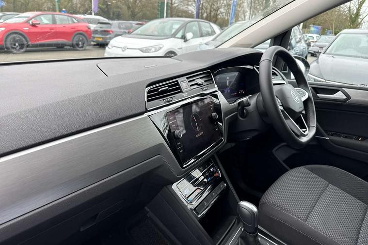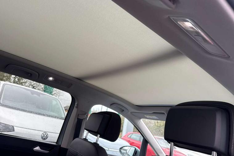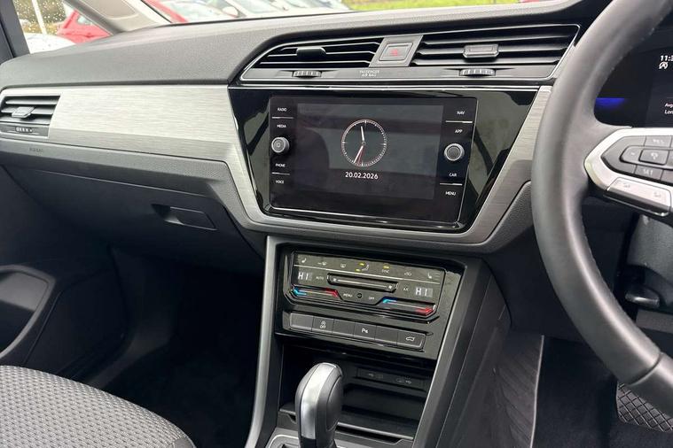 Adaptive cruise control, Audible lights on warning, Discover media navigation touchscreen navigation/radio system with streaming and internet, Driver alert system, Driver profile selection, Dynamic road sign display, Electric tailgate, Electronic odometer, Emergency services call system, Extended, crash-active and proactive Pedestrian and cyclist monitoring, External temperature gauge, Front parking sensors, Lane change system side assist and rear traffic alert, Lane keep assist, Misfuelling protection device, Mobile pairing with SMS function, Mobile phone interface with inductive charging, Rear view camera displayed via vehicles audio system display, Rev counter with fuel gauge, Side scan, Speed limiter, Speed sensitive power steering, Stop/start system, Think blue trainer driver tips and journey analysis, Trip and service interval display, We connect' and 'We connect plus' functionality, Petrol Particulate Filter, Rear stabiliser bar, XDS electronic differential lock, 4x20 watt output, 8 Speakers, Audio Connectivity System, DAB Digital radio, External USB-C data socket with increased charging performance - 2 USB sockets 45W, MP3/WMA compatability, SD card slot, Title and cover art display, USB connection, Aerial integrated into side window, Auto dimming door mirrors, on driver side, surround lighting and front passenger side mirror lowering function, Auto dimming rear view mirror, Automatic coming/leaving home lighting function, Body colour bumpers, Body colour door handles, Body colour door mirrors with integral indicators, Door mirrors with memory function, Dusk sensor + auto driving lights, Electric folding door mirrors, Electric heated + adjustable door mirrors, Electric, glass sliding/tilting panoramic sunroof including integrated roller blind and LED lighting around aperture, Front and rear electric windows, Fully galvanised body, Gloss black finish B pillar, Green tinted heat insulating glass, High level third brake light, Rain sensor, Rear fog lights, Rear side wing doors, Rear tinted glass from B-pillar backwards approx 65% tinted, Rear wash/wipe with intermittent wipe setting, Removable engine badge, Silver roof rails, Tailgate wiper- reverse gear activation, Twin chrome exhaust tailpipes, Volkswagen roundel, Windscreen wipers intermittent wipe, 12V power point for Row 2, 12V socket in luggage compartment, 2 individual fold flat 3rd row seats, 2 three point seatbelts in 3rd row, 2nd row centre armrest, 2nd row centre seat converts into table, 3 single slide/fold/removable 2nd row seats, 3 spoke steering wheel, 3x3 point seatbelts on 2nd row with height adjust on outer seats, 4 boot load lashing points, 4 way adjustable front head restraints, 5 headrests, Activated charcoal canister for intensified evaporation system, Air care climatronic 3 zone air conditioning system with rear air conditioning control panel, Chrome plated radiator grille inserts, air vent surrounds and light switch surrounds, Driver and front passenger under seat drawer, Dust/pollen filters, Foldable front passenger seat backrest with load through function, Front and rear reading lights X 2, Front centre armrest with storage compartment, Front comfort seats with lumbar support, Front cupholders x 2, Front passenger seat height adjust, Front seat storage pockets, Front seatback folding tables, Height adjustable driver's seat, Height/reach adjust steering wheel, Illuminated glovebox, Instrument lighting white adjustable panel illumination with red night time illumination, Interior light with delay, Isofix on 2nd row outer seats, Isofix on 3rd row seats, Large storage compartment in roof console, Lasano cloth upholstery, Leather multifunction steering wheel with gear knob, Leatherette on rear of front seats, Low tunnel 2nd row seat, Luggage compartment lighting, Media box in dashboard on passenger side, Multi storage in passenger/luggage areas, Multi-function centre console with storage facilities, Retractable luggage cover, Split folding rear seat backrests, Storage bins on all doors, Sun visors with illuminated vanity mirrors, Family Pack - Touran, Winter pack without heated washer jet - Touran, 3 point height adjustable front seatbelts, Auto hold function, Automatic post collision braking system, Door open warning reflectors, Driver/Front Passenger airbags, Drivers knee airbag, EDL + ASR, Electronic parking brake, Energy recovery system, ESC with ABS, First aid kit, Front and rear (row 2) curtain airbags, Front assist with autonomous emergency braking, Front seat side impact airbags, Front seatbelt pretensioners, Front/rear disc brakes, Hill hold control, Hydraulic Brake Assist (HBA), Loose wheel warning function, Manual passenger airbag deactivation function, Pre crash preventive occupant protection, Proactive passenger protection system with front and side assist, Rear child proof door locks, Road sign recognition, Seatbelt warning lamp and buzzer, Traction control, Two tone horn, Warning triangle, Alarm with remote central locking and interior protection, Electronic engine immobiliser, Keyless Access Keyless locking and starting system with SAFELOCK, New brushed design decorative inserts in dash and front doors, 17" Salvador alloy wheels with anti-theft wheel bolts, 215/55 R17 self sealing tyres with low rolling resistance,
