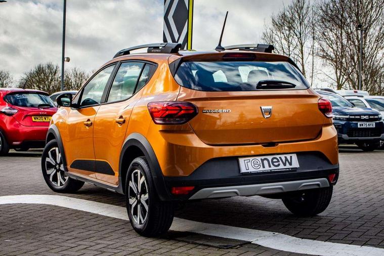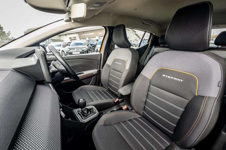 3.5" TFT instrument panel with on-board computer, Blind spot warning, Cruise control with speed limiter, eCall emergency call system, Eco mode, Electric power assisted steering, Front parking sensors, Rear parking sensors, Rev counter, Reversing camera, Stop/start system, 8" MediaNav - DAB Radio, Wifi smartphone replication, Bluetooth, 6 speakres, Apple CarPlay and Android Auto, USB connection for data transfer and charging, USB socket, 3 speed windscreen wipers, Auto lighting, Automatic wipers, Body colour door handles, Body colour door mirrors, Body coloured bumpers, Chrome longitudinal roof bars, Chrome radiator grille, Electrically adjustable and heated door mirrors, Front fog lights, Heated rear window, High level third brake light, LED automatic daytime running lights, LED lighting signature, Modular roof bars, One touch electric front windows, Rear electric windows, Rear wash/wipe, Stepway inscription on radiator grille and roof bars, Tinted windows, 1/3 to 2/3 split folding rear seats, 12 volt front socket, 12 volt rear socket, 3 height adjustable rear headrests, Automatic air conditioning, Driver + passenger vanity mirrors, Fabric upholstery, Fixed smartphone holder on dashboard, Height adjustable driver seat, Height adjustable front headrests, Height/depth adjustable steering wheel, High central armrest with console storage, Isofix points for child seats in both outer rear seats, Satin chrome interior door handles, Satin Chrome/Copper orange air vents, Soft feel steering wheel, Steering wheel controls, 3x3 point rear seatbelts, ABS and Emergency brake assist, Automatic central locking, Automatic emergency braking system, Child locks on rear doors, Door open warning, Driver airbag, Electronic parking brake, ESC (Electronic Stability Control), ESP + Hill Start Assist, Front curtain airbags, Front seatbelt pretensioners, Front side airbags, Height adjustable front seatbelts, Passenger airbag, Seatbelt reminder for driver and front passenger, Tyre pressure monitor, Immobiliser, Keyless entry, Remote central locking, Decopart on instrument panel and door with textile, 16" Diamond-effect alloy wheels,