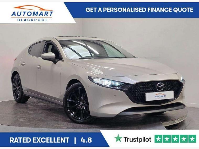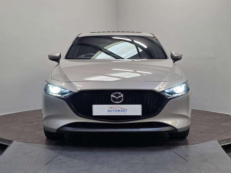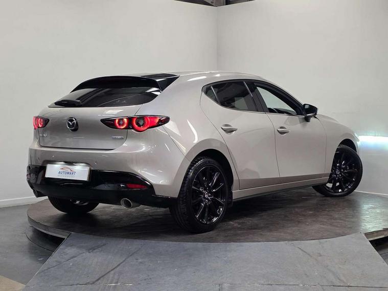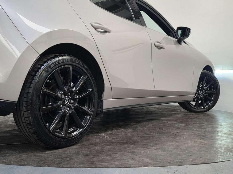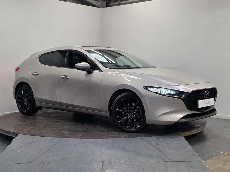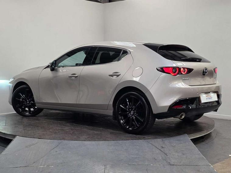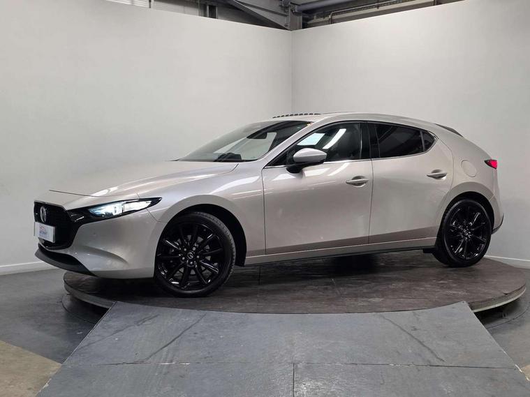 10.25" display with Mazda Connect infotainment, 360 View Monitor, 7" colour TFT display, Audio transfer from bluetooth devices, Blind spot monitoring with rear cross traffic alert, Colour active driving display inc Windscreen projected, Traffic Sign Recognition, turn-by- turn navigation and Mazda Radar Cruise Control information, Cruising Traffic Support, Digital instrument cluster, Driver attention alert system, Driver monitoring system, E-call with GPS, Emergency stop signalling system, Engine start/stop button, Front and rear parking sensor with audible and visual warning, Front Cross Traffic Alert, Integrated bluetooth with steering wheel mounted controls, Intelligent speed assist, Lane keep assist system (LAS) with Lane departure warning system (LDWS), Mazda connected services, Mazda Navigation System with european mapping, Mazda Radar Cruise Control, Mobile App interface, Multimedia Commander, PAS, Service indicator, Tailgate, Traffic sign recognition (TSR), Trip computer, Wireless Apple CarPlay/Android Auto, Wireless charging, i-stop, 2 USB-C ports in the front, Mazda Multimedia System with AM / FM / DAB radio with 12 Speaker Bose sound system, bose centerpoint, bassmatch+audiopilot technology, Adaptive LED Headlights, Auto dimming driver's door mirrors, B-pillar garnish in piano black, Body coloured door mirrors, Coming/leaving home lighting function, Dark metallic finish signature wing, Door mirrors with adjustable memory and tilt-down function when reversing, Dual chrome tailpipes tip, Dusk sensing headlights, Electric front/rear windows with one touch/auto up/down, Electrically adjustable, heated auto power folding door mirrors, Frameless auto dimming interior rear view mirror, Front body coloured bumper with black lower bezel, Front kodo turn signal, Front wiper de-icer, Gloss black finish front grille, Gloss black rear roof spoiler, LED auto headlight levelling, LED indicator lights, LED third brake light, Power tilt and slide sunroof, Privacy glass with dark tinting on rear side windows and rear window, Rain sensing front wipers with adjustable sensitivity and speed, Rear colour coded bumper with gloss black lower moulding, Rear fog lights, Rear side wing doors, Signature LED daytime running lights, Signature LED rear combination lights, Speed adjustable rear wash wiper with intermittent wipe, 12v electrical power outlet, 3 seat bench in 2nd row, 60/40 split fold down rear seats, Chrome interior trim accents with steering wheel centre bezel, surround of engine start / stop button and glove box handle, Dark roof headlining, ceiling and pillars, Dark vinyl leather door panel inserts, Driver's seat power slide, recline, height, seat tilt and lumbar adjustment with head up display and driver door mirror memory, Driver, front passenger and two rear door pockets, Driver, Front passenger and two rear grab handles with coathooks, Driver/passenger sunvisors + vanity mirrors (drivers side with ticket holder), Dual zone climate control air conditioning, Folding rear centre armrest with two cup holders, Front and rear courtesy lamps, Front armrest, Front centre storage with two cupholders, Front head restraints, Front passenger seatback pocket, Front passengers seat manual slide, recline and height adjustment, Gear shift indicator, Heated front seats with 3 stage setting, Heated steering wheel, Illuminated glovebox, ISOFIX child seat anchorage points attached on outer rear seats, Leather upholstery, Leather wrapped gear shift knob, Leather wrapped steering wheel, LED interior light, LED light in luggage compartment, Power outlet in luggage compartment, Roof mounted sunglasses holder, Single front passenger seat, Three height adjustable rear head restraints, Tilt/height adjustable steering wheel, 3 point ELR front seatbelts with pretensioners, 3 rear 3 point seatbelts with ELR, Anti-lock braking system (ABS), Drivers knee airbag, DSC - Dynamic Stability Control, Dual stage driver and single stage passenger airbags, EBD - Electronic brakeforce distribution, Electronic parking brake with auto disengage function and auto hold function, Front and rear curtain airbags, Front passenger airbag cut-off switch, Front side airbags, Front smart city brake support, G-Vectoring control plus, Hill launch assist, Intelligent Traction Control system, Manual child lock in rear doors, Mild Hybrid system with regenerative braking, Rear crossing smart brake support, Rear smart city brake support, Seatbelt reminder for driver/front passenger and rear seats, Tyre pressure monitoring system (TPMS), Auto door lock when driving, Remote central locking + deadlocks, Smart keyless entry, Thatcham accredited alarm and immobiliser, 18" Black alloy wheels, Emergency tyre repair kit,