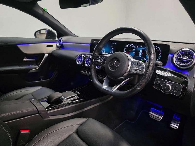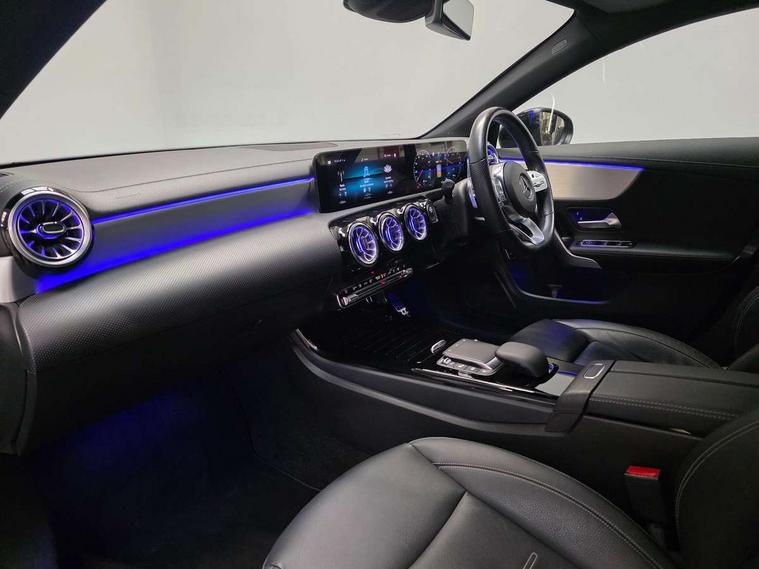 10.25 inch Instrument display with digital cockpit, 10.25 inch touchscreen central media display, Acoustic ambient protection, Active lane keeping assist, Attention assist - Monitors steering behaviour and long journey fatigue, Bluetooth connection, Car wash mode, Cruise control with limiter, Direct steer system with speed sensitive power steering, DYNAMIC SELECT with a choice of driving modes (ECO, Comfort, Sport and Individual), ECO start/stop function, Fluid level warning indicator for fuel, oil, coolant and washer fluid, Hard-disk navigation, Hey Mercedes Voice activation, Lamp failure indicator, Mercedes me connect including emergency call system, accident recovery, breakdown and maintenance management, Mercedes me remote services, Outside temperature gauge, Owners manual and service booklet in English, Pre-installation for remote and navigation services, Pre-installation of private car share, Preinstallation for Mercedes Benz link, Radio aerial integrated into front and rear windshields, Remote and charging services plus, Service indicator (ASSYST), Smartphone integration with Apple CarPlay and Android auto, Speed limit assist, Trip computer in multifunction display with current consumption indicator, 4m charging cable for wall box/charging stations, 7.4 kW onboard charger, Charging system - AC charging system rated at 7.4 kW, Comfort suspension, Rear axle multi-link, DAB digital radio tuner, MBUX multimedia system, Mid-range sound system, USB (type C) ports (2) in stowage compartment and 1 in front of centre console, Adaptive brake lights, AMG body styling with AMG front apron and rear apron and visible exhaust tailpipe in chrome trim elements, AMG bodystyling side skirts, Body colour bumpers, Body colour door handles, Chrome beltline strips, Diamond radiator grille pins in chrome, Electric windows, Electrically adjustable and heated door mirrors with integrated LED indicators, Exhaust system with 2 Visible tailpipe trim elements and rear apron with trim in chrome, Headlamp assist automatic headlamp activation, Heated glass rear windscreen + timer control, High level LED third brake light, Interior mirror with black reading lamps and frameless, LED high performance headlamps with integrated LED daytime running lights, LED tail lamp, Privacy glass with dark tinting on rear side windows and rear window, Rain sensing windscreen wipers with two sensitivity settings, Rear boot, Rear fog lamp, Rear side wing doors, Variable front intermittent wipers, Window line trim strip in chrome, 3 seat bench in 2nd row, 3 spoke flattened bottom nappa leather multifunction steering wheel with perforated leather in grip area, 40:20:40 split folding rear seat backrests, Air conditioning - Two zone thermotronic luxury automatic climate control with display, Air vents with surround in silver chrome, Artico man-made leather upholstery, Automatic child seat recognition sensor, Black roof lining, Brushed stainless steel sports pedals with rubber studs, Charging socket, Floor mats with stitched AMG lettering, Front centre armrest with stowage, Galvanished gear shift paddles on steering wheel, Heated front seats, Illuminated front door sills with changeable cover, Illuminated glove compartment stowage, Interior lighting - 64 colour Ambient lighting, Luggage net on driver/front passenger seat backrest, Manually adjustable front seats, Manually height and reach adjustable steering column, Pre-entry climate control, Rear armrest with two integral cup holders for drinks, Rear head restraints, Single front passenger seat, Sport seats with fixed head restraints, Stowage compartment in centre console with retractable cover, Sunvisors with illuminated vanity mirrors, Touchpad on center console, Twin front cupholders, Two outer rear seat isofix and top tether child seat fixing points, Keyless go comfort pack - CLA, Light and sight pack - CLA, Mirror pack - CLA, Night package - CLA, Parking package - CLA, Seat comfort pack - CLA, Active bonnet pedestrain safety measure which detects an impact and raises bonnet by 65mm, Active brake assist includes forward collision warning system with autonomous braking, Adaptive brake assist with hold function and hill start assist, Anti lock braking system (ABS) with brake assist, Black seat belts, Bonnet with power domes, Brake pad wear warning indicator, Childproof locks manually operated for rear doors and electrically operated for rear power windows, Crash responsive emergency lighting, Driver and front passenger head and sidebags, Driver and front passenger windowbags, Drivers knee airbag, Dual stage driver and front passenger airbags, Electric parking brake, Electronic stability programme with acceleration skid control, ESP curve dynamic assist, Front and rear seatbelt reminder, Front passenger seat occupancy sensor, Perforated front brake discs, Radar-based recuperation, Three point rear seat belts, Tyre pressure monitoring system, Warning triangle and first aid kit, Guard 360 degree guard vehicle protection system with immobiliser and interior protection, Remote central locking and crash sensor with emergency opening function, Light aluminium with longitudinal grain interior trim, 18" AMG 5 twin spoke light alloy wheels painted in black with high sheen finish, Summer tyres, Tirefit tyre sealant kit,