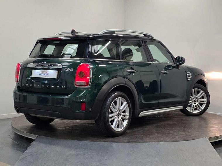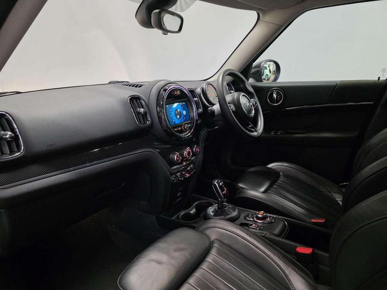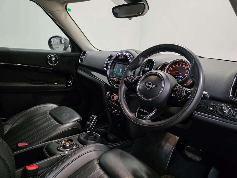 Active Guard incl speed limiting and lane departure functions with auto steering, and front collision warning with brake intervention, Automatic start/stop function with brake energy recuperation, Electro-mechanical speed dependant steering assistance, Instrument cluster, Mini E-call, MINI TeleServices, On board computer, Rear parking distance control, Double Vanos system, Fully variable valve control, High precision injection, Steptronic transmission with double clutch, FM tuner and DAB digital radio, Body colour fuel filler cap, Chrome line exterior, Day time driving lights, Door sill strips, Dynamic brake lights, Electric windows, Heated rear window, Heated windscreen washer jets, Left exhaust tailpipe with chrome finisher, Model logo, Model logo on Tailgate, Radiator grille, Rain sensor with auto headlights, Rear fog lights, Rear window wiper, Side scuttle panel with integrated indicator, Split rear doors, Sun/heat protection glass, White indicator lenses, 12V Accessory socket in centre console, 360L luggage compartment capacity, 4 lashing eyes in luggage compartment, 40:20:40 split folding rear seats, Chrome interior highlights, Cupholders, English handbook, Glove compartment, Height and length steering column adjustment, Isofix rear child seat preparation, Leather gearshift lever and handbrake gaiters, LED reading lights, vanity mirror lights, front foot well light and spotlight on front seats, Manual air conditioning, Mechanical seat adjustment, driver seat height adjust, forward/back and front seats backrest, MINI Yours fine walk nappa leather steering wheel with contrast stitching in silver and MINI Yours badge, Multifunction steering wheel, Passenger seat height adjuster, Storage compartments in doors, Sunvisors with vanity mirrors, Excitement pack - Countryman, Navigation pack - Countryman, 2 tone horn, 3 point seatbelts on all seats, 6 Airbags - front, side, head and seat belt tensioners, Anti-lock braking system (ABS), DSC - Dynamic Stability Control, Electronic handbrake, Front and rear disc brakes, Hill start assist, Tyre pressure monitoring system, Alarm system with tilt sensor, monitoring doors, bonnet interior and tailgate, Auto drive away locking, Deadlocking function, Electronic vehicle immobiliser, Locking wheel bolts, Start/stop toggle with keyless go, Chrome line interior, Tool kit,