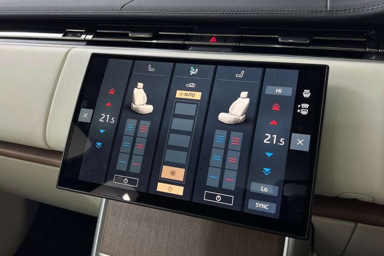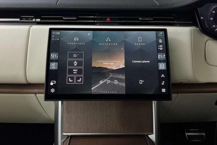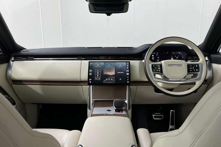 13.1" Touchscreen, 3D surround camera inc frwd traffic detection, vehicle clearance guidance, 3D view, clearsight ground view, manoevure light, 360 parking aid, wade sensing, All Terrain Info Centre, All wheel steering, Android Auto, Apple car play, Blind spot assist, Bluetooth connectivity streaming, Driver condition response, Eco mode, Electric power assisted steering (EPAS), Emergency call service, Front and rear parking aid, Head up Display, Interactive driver display, Lane keep assist, Rear collision monitor, Rear traffic monitor, Remote, Traffic sign recognition with adaptive speed limiter, Wi-Fi Enabled with data plan, Wireless device charging with phone signal booster, 8 speed automatic transmission, Active damper technology system, Adaptive dynamics, All terrain progress control, All Wheel Drive (AWD), Automatic access height, Terrain Response 2 Auto, Twin speed transfer box, Digital Audio Broadcast radio-DAB, Pivi pro including smart settings, Connected navigation pro, nuance speech, USB socket, Acoustic laminated windscreen, Animated directional indicators, Automatic headlights, Automatic levelling headlights, Centre high mounted stop light, ClearSight interior rear view mirror, Electric windows with one touch open/close and anti trap, Engine cover, Flush deployable exterior door handles, Front and rear recovery eyes, Front fog lights, Headlamp power wash, Heated rear window, Heated washer jets, LED tail lights, No badges, Power fold, auto-dimming, heated door mirrors with approach lights, Rain sensing windscreen wipers, Rear boot, Rear fog lights, Rear side wing doors, Side repeater indicators in mirror, Trailer stability assist, Winter wiper park position, 12V power sockets, 3 seat bench in 2nd row, Air quality sensor, Bright metal pedals, Cabin air purification pro, Cabin lighting, Customer configurable single point entry, Driver and passenger front seat armrests, Easy boot loading, Ebony Carpet, Front and rear cupholders, Front and rear grab handles, Front head restraints, Gearshift paddles, Heated steering wheel, Hook in load space, Loadspace light, Luggage tie down in loadspace, Multifunction steering wheel, Rear centre armrest, Rear head restraints, Rear ISOFIX, Single front passenger seat, Soft close doors, Twin blade sunvisors with Illuminated vanity mirrors, Upper and lower glovebox, Online pack with data plan - Range Rover, 3x3 point rear seat belts, Anti-lock braking system (ABS), Brake hold function, Cornering brake control (CBC), Customer configurable autolock, DSC - Dynamic Stability Control, Electronic brake force distribution, Electronic parking brake, Electronic traction control, Emergency brake assist, Emergency braking, Front airbags with passenger seat occupant detector, Front side airbags, Hill descent control, Hill launch assist, Illuminated seat belt buckles, Low traction launch, Occupant protection assist, Power operated child locks, Roll stability control, Tyre pressure monitoring system (TPMS), Immobiliser, Intrusion sensor and alarm, Keyless entry, Locking wheel nuts, Remote central locking, Noble chrome controls,