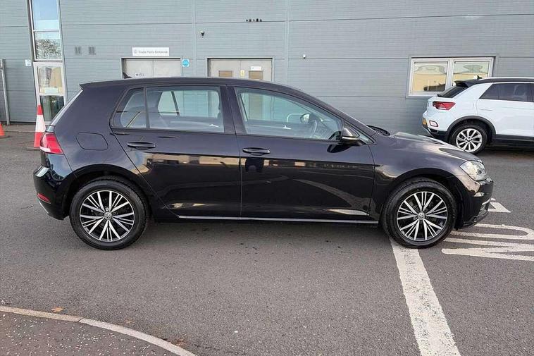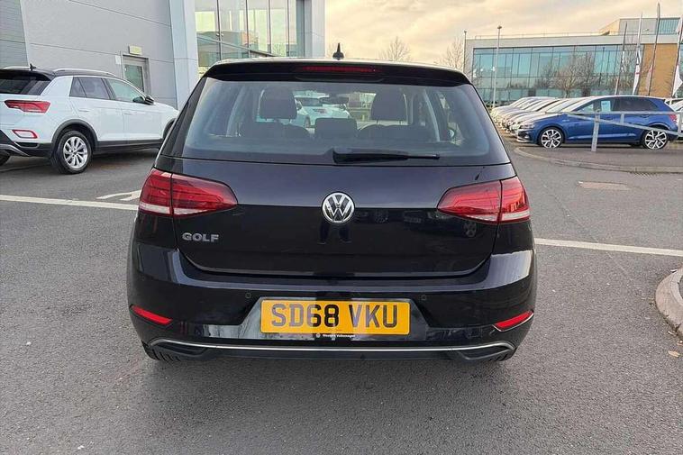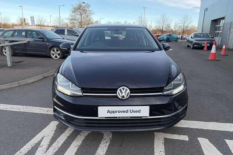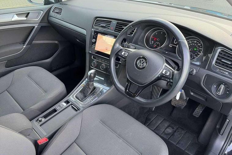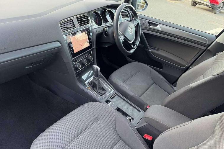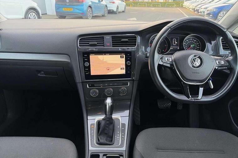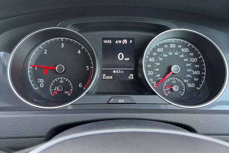 'Lights On' Reminder warning buzzer, 8" colour touch screen, ACC - Adaptive cruise control with front assist, forward collision warning, distance monitoring, city emergency brake and speed limiter, App-Connect, Bluetooth telephone and audio connection for compatible devices, Brake pad wear indicator warning light, Drive mode selector, Driver alert system, Driver profile selection, Front assist, radar sensor controlled distance monitor, city emergency braking + predictive pedestrian protection, Front assistant collision mitigation, Instrument cluster in white, Misfuelling protection device, Multifunction computer with visual gear change recommendation for fuel consumption, Power assisted speed sensitive electro-mechanical steering, Speedo, rev counter, electronic odometer, trip, service interval display, exterior temperature and fuel gauge, Stop/start system, Ultrasonic front and rear optical and audible parking sensors, Warning buzzer and light for front seatbelts unfastened, Battery regeneration during braking, Diesel particulate filter, XDS electronic differential lock, 8 Speakers, CD/MP3/WMA, USB and SD card reader, aux-in, Composition media system, DAB Digital radio receiver, SMS Functionality, Automatic coming/leaving home lighting function, Automatic dimming rear view mirror/rain sensor, Black front air intake and radiator grille with chrome insert, Black rear diffuser, Body colour bumpers, Body colour door handles, Body colour door mirrors with integrated indicators, Electric front windows, Electric rear windows, Electrically adjustable and heated door mirrors, Glavanised body, Heated rear windscreen, High level 3rd brake light incorporating LED Technology, Range adjustable headlights via infotainment system with LED daytime running lights, Rear number plate lights incorporating LED technology, Rear window aerial, Rear window wash/wipe with intermittent wipe, Reflectors in all doors, Remote electrically foldable door mirrors, door mirror puddle lights and reverse activated kerb-view adjustment on passengers door mirror, Tailgate with integrated rear roof spoiler, Windscreen wipers/ intermittent wipe + 4 position delay, 12V socket in luggage compartment, 3 rear headrests, 4 load lashing points in luggage compartment, 60/40 split folding rear seat backrest, Bag hook in luggage compartment x 2, Cooled glovebox, Dust/pollen filter, Front and rear reading lights incorporating LED technology, Front centre armrest with storage compartment and two rear air vents, Front seat back storage pockets, Grab handles front x 2, rear x 2 with integrated coat hooks, Height and reach adjustable steering wheel, Illuminated vanity mirrors, Instrument lighting white adjustable panel illumination, Interior light delay, Isofix preparation for 2 rear child seats, Load through provision with rear centre armrest and cupholders x2, Luggage compartment light, Multifunction leather steering wheel with leather trimmed gear knob, Overhead storage box, Pearl grey headlining, Storage box in luggage compartment, Storage compartment in roof console with cover, Storage compartments in front doors, Storage compartments in rear doors, Stowable luggage compartment cover, Sun visors, Three spoke multi-function leather trimmed steering wheel and gearknob, Variable boot floor, height adjustable and removable, Mirror pack - Golf, 3 rear three point seatbelts, Airbags - Driver's and front passenger's, curtain airbag, Driver's knee, front side impact and passenger's airbag deactivation switch, Anti-lock Braking System (ABS) with Hydraulic Brake Assist (HBA), Automatic post collision braking system, Child locks on rear doors, Driver/Passenger optimised head restraints, Electronic parking brake with auto hold, Electronic stability control (ESC) including Electronic differential lock (EDL) and ASR (Traction control) with deactivation via infotainment system, Pre crash preventive occupant protection, Three point height adjustable front seatbelts with tensioners, Tyre pressure loss indicator, Alarm with interior protection, Electronic engine immobiliser, Remote central locking with 2 remote folding keys, Brushed dark silver decorative inserts in dash and door panels, Chrome plated air vent surround, Chrome-plated light switch surround, Polar night black centre console, Steel space saver spare wheel,