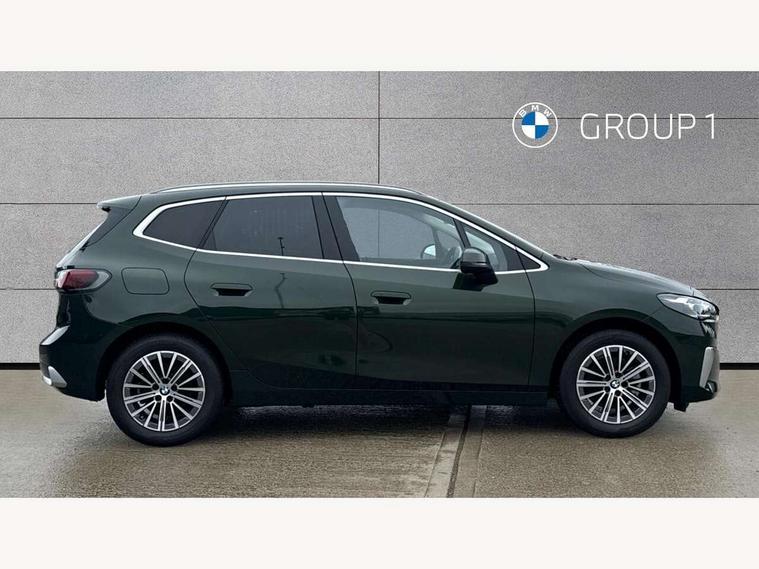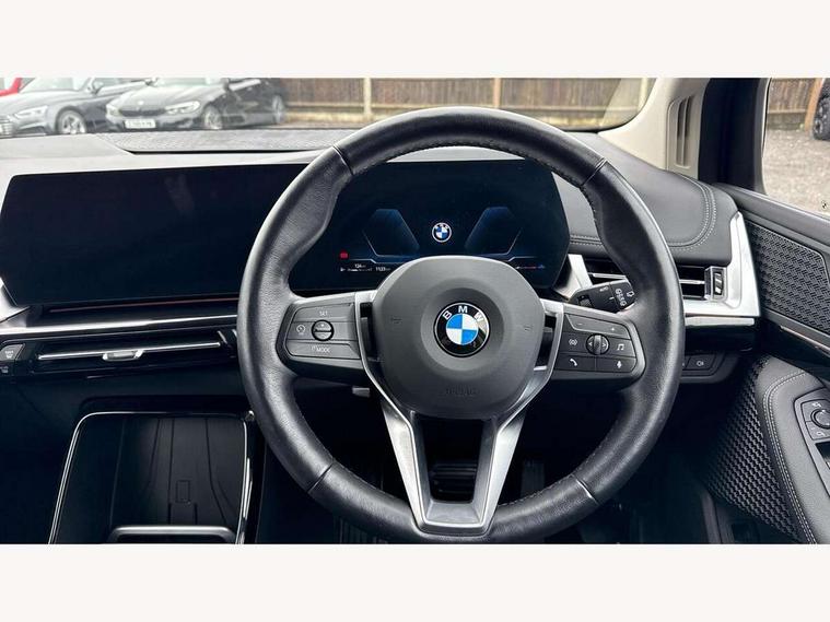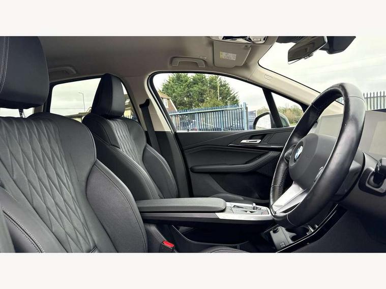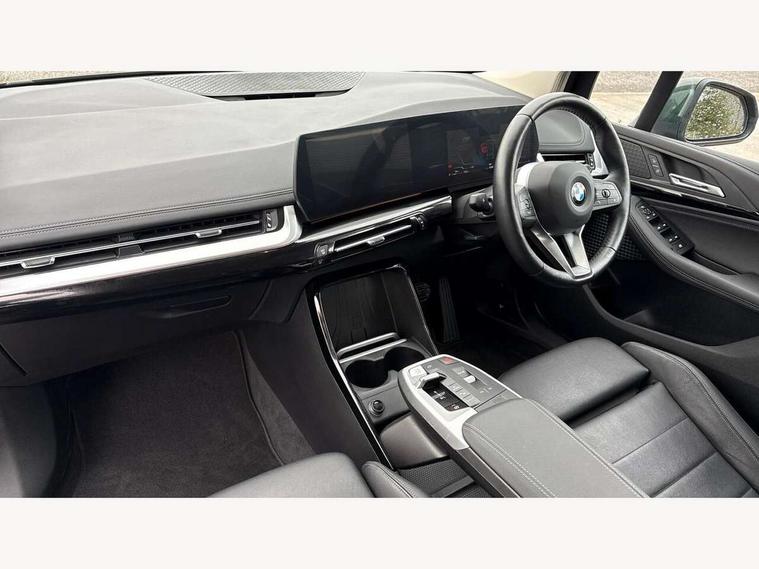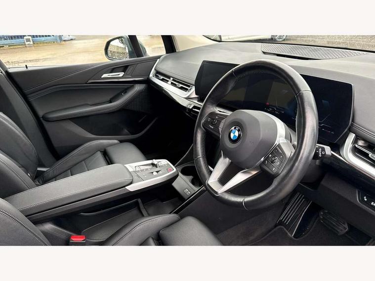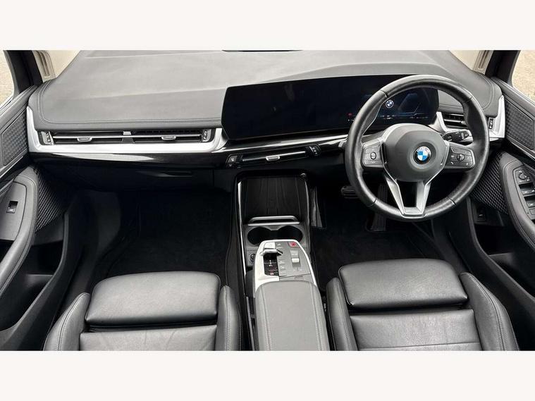 Active Guard incl speed limiting and lane departure functions with auto steering, and front collision warning with brake intervention, Automatic powered tailgate, Automatic start/stop function, BMW Online services, BMW Teleservices, Brake pad wear indicator in front and rear, Condition based service, Drive off assistant, Flat air vents on instrument panel in high gloss black, adjustable slats with elements in pearl chrome, iDrive controller, Language version English, On board computer - average speed+fuel consumption, service interval, clock/date, odometer/trip meter, outside temperature display and ice warning, Parking assistant with active park distance control, reversing assistant, lateral parking aid and rear view camera, Servotronic variable electric power steering (EPS), Smartphone integration, Widescreen display, Drive performance control with ECO PRO comfort + sport mode, Gear selector switch with toggle operation, Petrol Particulate Filter, Standard suspension, Steptronic transmission with double clutch, 2x USB Type C ports in front centre console for charging and data transfer, 2x USB Type C ports in rear centre console for charging, DAB Digital radio, Welcome sound upon opening of the front driver or passenger door, Air inlet middle part on front apron in lines specific design with trim strip in satinised aluminium, Aluminium satinated roof rails, Automatic headlights, BMW emblem, engine compartment lid and tailgate, BMW Individual aluminium satinated exterior line, BMW radiator grille with grille struts, end face black high-gloss, radiator grille frame chrome high-gloss, Body colour roof mouldings, Body colour sill covers, Body coloured door mirror caps, Contoured rear roof spoiler in vehicle colour with side aeroblades in black high-gloss, Driver side exterior mirror lighting with BMW logo projection, Dynamic brake lights, Electric adjustable heated door mirrors, Electric windows - front and rear, with open/close fingertip control, anti-trap facility and comfort closing, Folding door handles integrated flush with surface, Front and rear windscreen wipers with heated front washer nozzles, Front bumper cover with air inlet trims for air curtains in matt black, Front bumper design elements in satinised aluminium, Front door exit lights, Front entry sills with aluminium inserts + BMW inscription, Front oramental grille with radiator grille bars in satinised aluminium, Heated rear window, Hidden exhaust pipe, LED Daytime running lights and parking lights with turn indicators, LED number plate light, LED third brake light in rear spoiler, Manual headlight range control, Model inscription on right tailgate, Rain sensor, Rear bumper cover with two L-shaped trims in Pearl chrome, Rear bumper trim strip in satinised aluminium, Rear side wing doors, Shark fin antenna, Trailer stabilisation logic, Visible VIN plate, Welcome lighting, Windscreen washer nozzle for rear view camera, 12V power socket in luggage compartment and front centre console, 12V socket in right side trim panel, 2 bag hooks in luggage compartment, 2 front reading lights, 2 open cup holders in front centre console, 3 seat bench in 2nd row, 40:20:40 split folding rear seat backrests, Ambient lighting front and rear, Automatic two zone climate control air conditioning, Bottle trays in all doors, Child seat ISOFIX attachment for two outer rear seats and front passenger seat with anchorage points, Driver and front passenger sports seats, Footrest and pedals in black plastic, Four grab handles integrated in roof lining, Front and rear door pockets, Front and rear footwell lighting, Front and rear side armrest integrated into door trim, Front and rear velour floor mats in anthracite, Front centre console storage compartment, Front head restraints, Glovebox with light, Heated front seats, Height adjustable 3 rear head restraints, Interior door handle recess light on all doors, Luggage compartment lighting, Map pockets, Mechanical rear seats with fore/aft adjustment, Multi-function controls for steering wheel, One piece parcel shelf opens together with tailgate and removable, Rear cloth hooks, Single front passenger seat, Sliding rear seat bench, Steering wheel column manual adjustment, Storage compartment lighting in centre console and storage tray in centre stack, Storage compartment net in left side trim panel, Storage compartment with folding cover under centre console armrest cushion, Sunvisors with illuminated vanity mirrors, Three spoke sport leather steering wheel, Vernasca leather upholstery, Connected pack professional - 2 Series Active Tourer, 3 point seatbelts on all seats, front pyrotechnic belt tensioners, stopper and belt force limiters, rear coded belt buckles, Airbag - Front driver and passenger, front and rear head, front side, curtain head protection, manual deactivation of front passenger airbag possible, Anti lock braking system (ABS) with brake assist, Automatic hold function, BMW emergency call, Brake drying, Braking readiness, Child proof locking system in rear door, Cornering brake control, Crash Sensor - activates hazard/interior lighting + unlocks doors, DSC - Dynamic Stability Control, Dynamic brake control, Dynamic Traction Control - DTC, Electromechanical parking brake, Energy recovery system, Front disc brakes, Integrated braking system, PC iBrake PostCrash approach control warning with light braking function, Rear disc brakes, Tyre pressure monitoring system, Warning triangle and first aid kit, Anti theft alarm system, Closing system with central locking, Engine immobiliser, Locking wheel bolts, Front centre console trim in high gloss black with my mode expressive, BMW mobility tyre sealing system, Reduced rolling resistance tyres,
