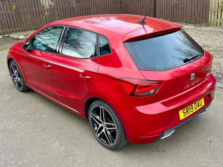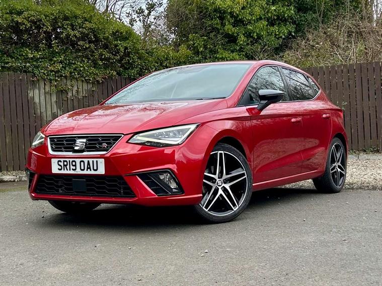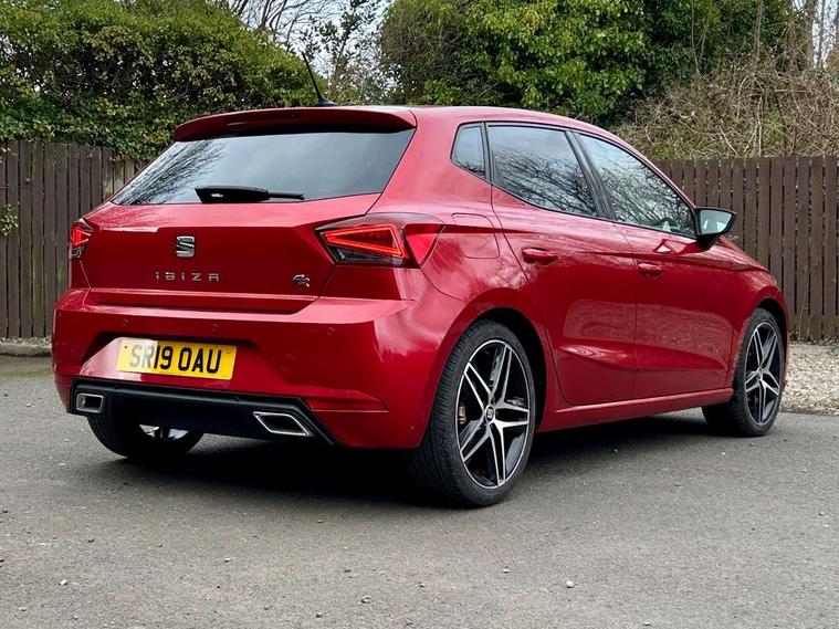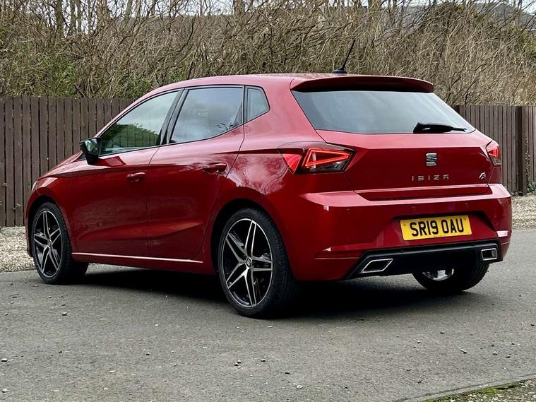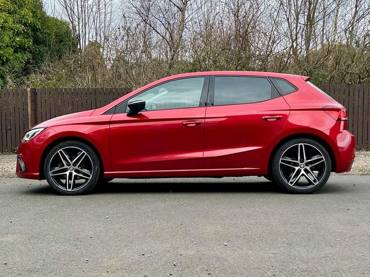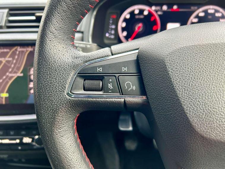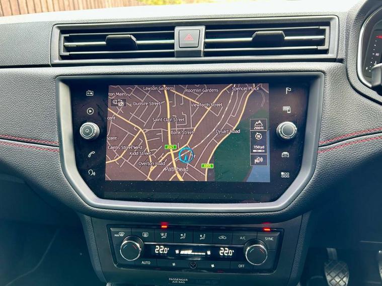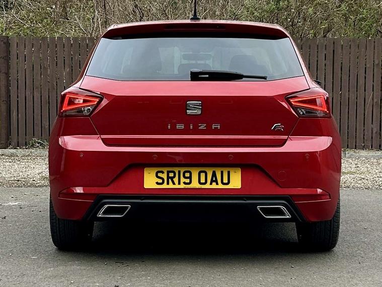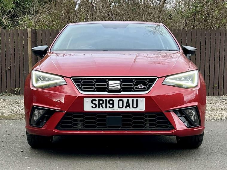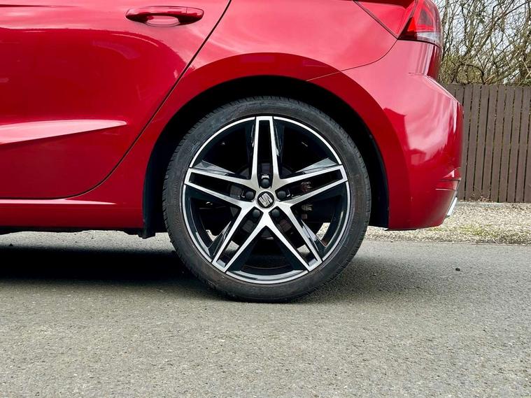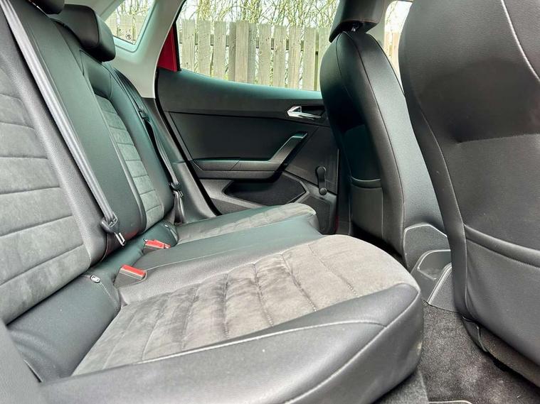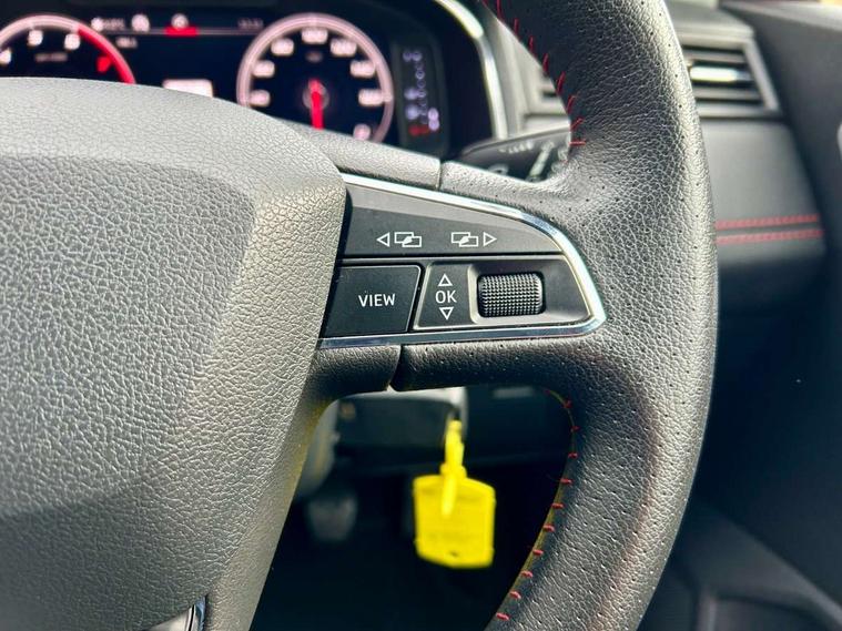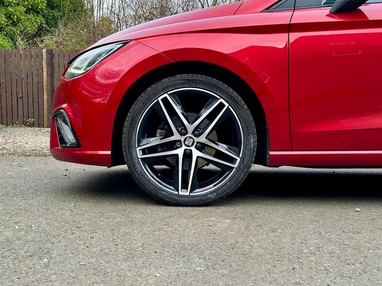'Lights On' Reminder warning buzzer, Bluetooth Handsfree Phone Connection, Cruise control, Digital clock, Digital cockpit, Full Link Smartphone Integration with Mirror Link, Apple Car Play, Google Android Auto, Low fuel warning light, Outside temperature gauge, Satellite navigation system with 3D mapping, 8" touch screen, voice control and additional USB port, SEAT Drive profile, SEAT logo boot release, Speed sensitive power steering, Trip computer, Sports suspension, 6 speakers, Auxiliary input socket, CD player, Digital Audio Broadcast (DAB) Tuner, Radio/MP3 player, SD card slot, SEAT USB media cable, Steering wheel mounted controls, USB port, Anti theft roof antenna, Auto dimming rear view mirror, Automatic headlights, Automatic rain sensing wipers, Body colour bumpers, Body colour door handles, Brilliant black door mirrors, Chrome front grille frame, Chrome grille, Coming/leaving home lighting function, Cornering front fog lights, Dark tinted rear windows, Electric folding door mirrors, Electric front windows, Electric headlight adjustment, Electrically adjustable and heated door mirrors, Exclusive FR rear bumper, Full LED headlights, Ice metal door side panels, LED daytime running lights, LED tail lights, Rear fog lights, Twin exhaust pipes, 3 rear headrests, 60/40 split folding rear seat, Door and steering wheel ice metal decorative inserts, Driver's sunvisor with ticket holder/vanity mirror, Dual zone climate control, Dust/pollen filter, Flat bottomed perforated leather steering wheel with red stitching and FR logo, Front courtesy lights, Front cupholders x 2, Front reading lights, Gear shift indicator, Glovebox, Height adjustable driver's seat, Height adjustable front/rear head restraints, Height adjustable passenger seat, Height/reach adjust steering wheel, Illuminated boot, Instrument lighting with brightness control, Leather handbrake, Leather steering wheel and gear knob, Leather trim on side panels, Microsuede cloth upholstery, Multi-colour ambient interior lighting, Passenger sunvisor, Rear top tether child seat ISOFIX attachment, Sports seats, Full LED headlight pack - Ibiza, 3 point seatbelts on all 3 rear seats, ABS, Active front headrests, Child locks on rear doors, Curtain airbags, Driver/Front Passenger airbags, ESP+EBA, Front assist (AEB), Front passenger airbag deactivation, Front side airbags, Hill hold control, Multi-Collision braking, Rear disc brakes, Seatbelt warning, Tiredness recognition system, Tyre pressure monitoring system, 2 folding remote keys with window open/close function, Electronic engine immobiliser, Locking wheel bolts, Remote central locking + deadlocks, Volumetric alarm with back up horn, Leather dashboard, 18" Performance machined bi-colour alloy wheels,