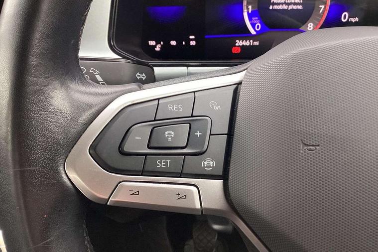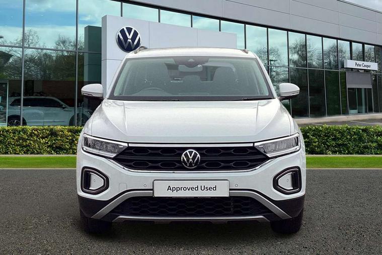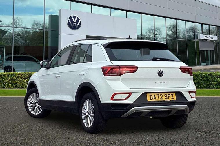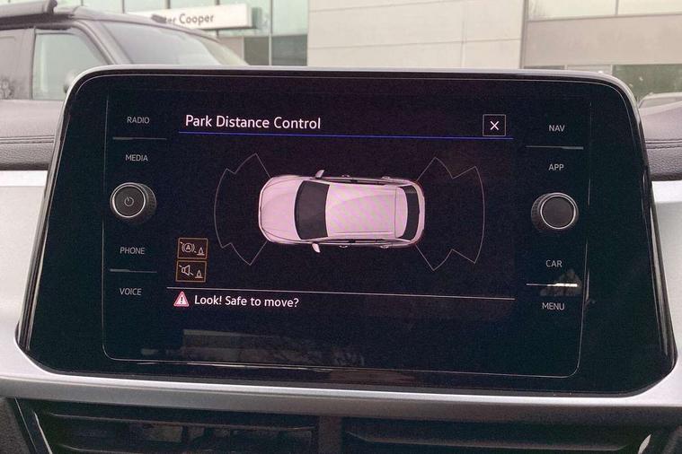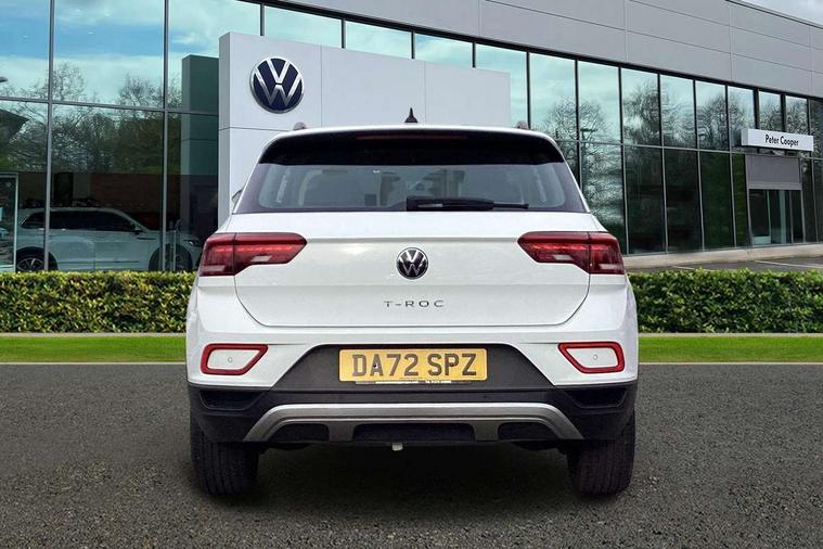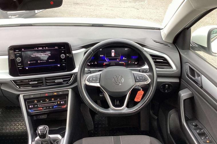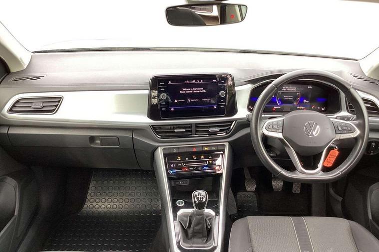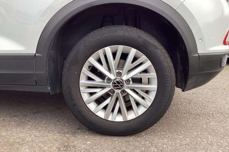 Bluetooth mobile phone interface, Driver alert system with fatigue detection, Driver tips and journey analysis, Emergency call service, Lane keeping system Lane Assist, Modified key software - reduce switch off time for key status change to Long no motion, Online services, Park assist including front and rear parking sensors, Power assisted speed sensitive steering, Service interval indicator, Tailgate/trunk lid release from outside, Think blue trainer driver tips and journey analysis, Warning sound and light for front seatbelts unfastened, Wireless app connect, Battery regeneration during braking, Front shock absorption, Rear shock absorption chassis with increased ride height, Start/stop function with battery regeneration, DAB Digital radio, Diversity antenna for FM reception, Front and rear 6 speakers, Music playback - MP3, WMA and AAC files, Premium USB cable in choice of either Apple or Android smartphone compatibility, SD card slot, Simultaneous pairing of 2 compatible mobile devices, Title and cover art display, We Connect and We Connect Plus functionality, 3rd brake light, Auto dimming interior rear view mirror, Automatic hazard lights activation under emergency braking, Automatic headlight control with LED separate daytime running lights with coming/leaving home function, Black roof rails, Body coloured bumpers and radiator grille with chrome trim and front fog lamps with chrome bezel, Body coloured exterior mirror housings and door handles, Extended roof spoiler, Exterior mirrors aspherical on driver side, convex on front passenger side, External USB type C socket and charging sockets, Front windscreen wiper with intermittent wipe and 4 position delay, Heated rear window, LED Headlights, LED rear combination lamps, LED rear number plate lights, LED tail lamp rear comination lamps, Power windows with comfort operation and circuit breaker, Rain sensor, Rear exhaust tailpipe, Rear fog light on one side and reversing lights on both sides, Rear side wing doors, Rear wash/wipe with intermittent wipe setting, Remote electrically foldable door mirrors, puddle lights and reverse activated passenger's door mirror, 12V power socket in centre console, 3 rear head restraints, 3 seat bench in 2nd row, 4 load lashing points in luggage compartment, Air care climatronic air conditoning system with active combination filter and 2-zone temperature control, Ambient lighting with mirror logo projection, Cloth upholstery, Door and side trim panel in cloth, Drawer under drivers seat, Driver/front passenger seat height adjustment, Front centre armrest, Front comfort sports seats, Front cupholders x 2, Front reading light, Instrument lighting, white adjustable panel illumination, Interior light delay, Isofix child seat preparation, Leather gearshift handle, Load-through provision with cup holder when folded down ('Unsplit rear seat bench, split folding backrest, with centre armrest), Luggage compartment lighting, Lumbar support for driver's and front passengers seat, Non-folding front passenger seat backrest, Single front passenger seat, Storage compartment in left and right luggage area, Storage compartment in rear doors, Storage compartments in driver and front passenger doors, Sunvisors with illuminated vanity mirrors, Variable boot floor, height adjustable and removable, Driver assistance pack without proactive passenger protection - T-Roc, 3 point height adj front seatbelts + pretensioners, 3 point seatbelts in outer rear with ECE label, ABS, Child locks on rear doors, Driver and front passenger airbag with front passenger airbag deactivation, Driver and front passenger safety-optimised head restraints, Drivers seatbelt reminder, Electronic parking brake, Electronic Stability Control (ESC) inc EDL (Electronic Differential Lock) and ASR (Traction Control), Front and rear passengers curtain airbag system including front side airbags, Front assist with city emergency braking and pedestrian monitoring, Front disc brakes, Front seat side impact airbags, Hill start assist, Predictive pedestrian protection, Rear disc brakes, Single tone horn, Tyre pressure loss indicator, Volkswagen roadside assistance, Alarm with interior protection, Anti-theft alarm system with interior monitoring, backup horn, and towing protection, Remote central locking with SAFELOCK, radio remote control with 2 remote control folding keys, Pewter matt decorative inserts for intrument panel, centre console and door panels at the front, Trims for alloy wheels,