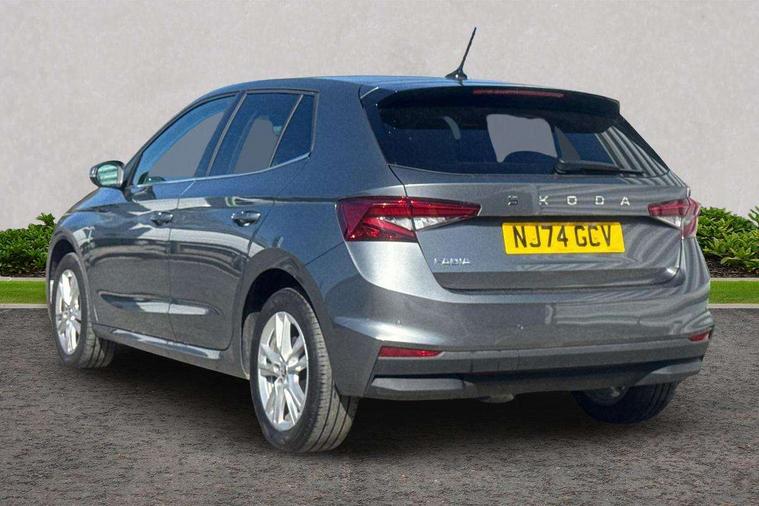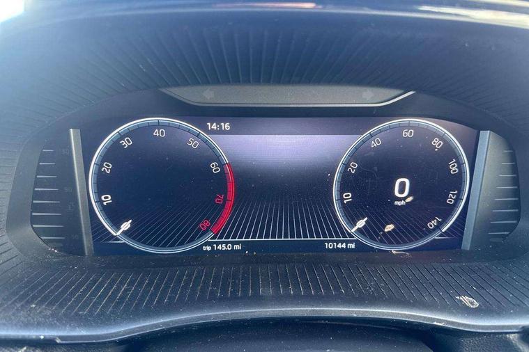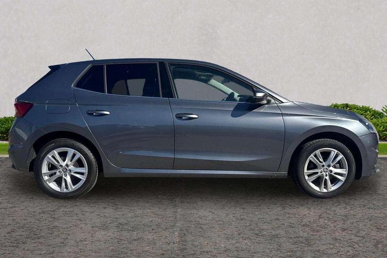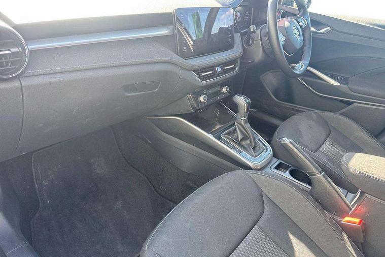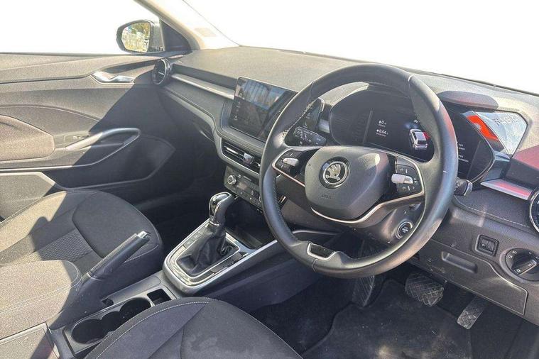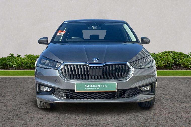 Advanced driver attention and drowsiness monitor, Bluetooth connection, Electromechanical power steering, Exterior temperature gauge, Service interval indicator, Traffic sign recognition, Virtual cockpit with 10.25" colour display, Wireless SmartLink for Apple CarPlay and Android Auto, 6 Speakers (4 in front and 2 in rear), 9.2" colour display skoda navigation system with voice control and web radio, Auxiliary socket for external MP3 player, DAB digital radio reception, Auto dimming rear view mirror, Body colour door mirrors, Body coloured bumpers, Chrome window surround, Door mirror integrated indicators, Front and rear electric windows, Front window wiper intermittent control, Headlight range control - Automatic, Ice scraper in fuel cap, LED daytime running lights with coming and leaving home feature, LED rear lights, Privacy glass, Rear LED fog light, Rear side wing doors, Rear window wiper with washing nozzles, Roof mounted spoiler, SKODA tailgate lettering in chrome, Third brake light, 2 reading lights in front and 2 reading lights in rear, 3 rear headrests, Backrest split and folding, Central console with removable cup holder and storage box, Chrome handbrake release button, Comfort seats, Door sills with fabia badging, Dual zone air conditioning with climatronic electronic control, Fabric upholstery, Front centre armrest, Gearshift knob/handle in leather, Hand brake lever handle in leather, Height adjustable front headrests, Height adjustable front seats, Height adjustable steering wheel, ISOFIX and TopTether anchorage points to the outer rear seats, ISOFIX and TopTether on the front passenger seat, Luggage compartment lighting, Manually adjustable lumbar support in front seats, Metallic grey interior door handles, Pollen filter, Rear seat bench unsplit, Single front passenger seat, Storm grey headlining, Sun visors with mirror and airbag label on passenger side, Textile floor mats, Ticket holder, Umbrella in drivers door, 3-point height adjustable front seats belts with pretensioner and force limiter, Automatic warning lights in case of crash, Driver and passengers airbag with switch off function, e-Call+, ESC including ABS, MSR, ASR, EDS, HBA and XDS, Front and rear seat belt warning, FRONT ASSIST (AEB City and AEB Inter Urban), Front side airbags, Head airbags, Hill hold control, One tone horn, Pedestrian protection, Three rear 3-points safety seat belts with pretensioner and force limiter including stop function for outer rear seat belts, Tyre pressure monitoring system, Anti-theft alarm system including immobiliser, interior monitoring, backup horn, and towing protection, Central locking with radio remote control, interior controls, SAFE function and 2 foldable keys, Chrome edged air vents, Metallic grey central console cover, Metallic grey upper decorative trim, Satin black door and side trim panel in front, Textile microsuede grey lower decorative trim with art grey stitching, Anti-theft wheel bolts protection, Super-low rolling resistance tyres,