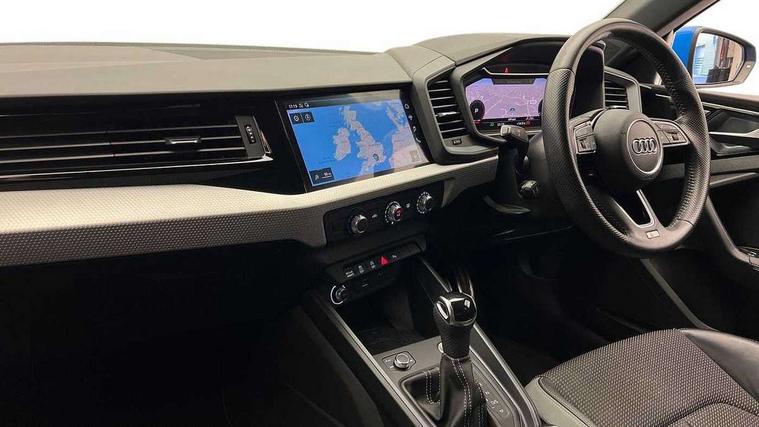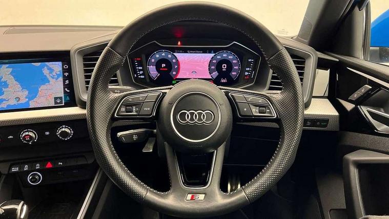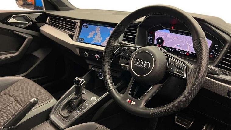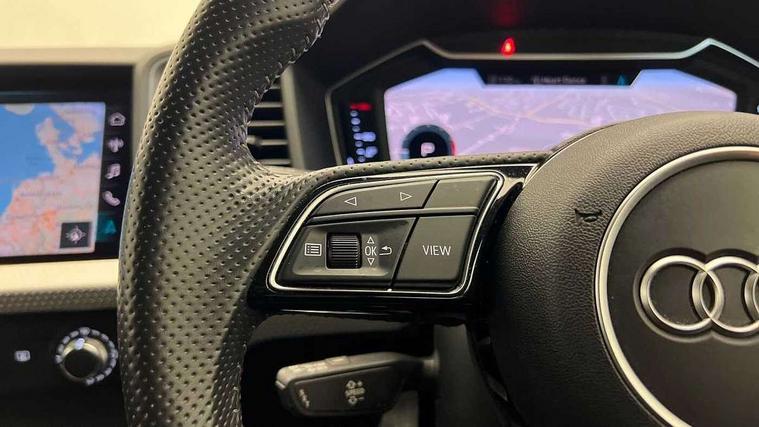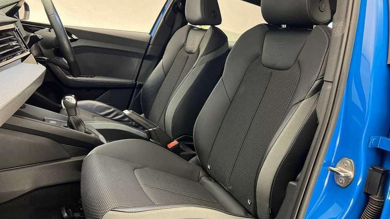 10.25" Digital instrument cluster display screen, Audi connect safety emergency and service including E-call, Audi drive select, Audi smartphone interface, Automatic start/stop system, Bluetooth interface, Driver's information system, Electromechanical power steering, Lane departure warning system, Service interval indicator, Speed limiter, Voice control system, Washer fluid level indicator, Sports suspension, 1 x SDXC card reader, 1 x USB type C and 1 USB type A charging points, Audi music interface, Bluetooth audio streaming, DAB Digital radio, MMI radio plus with 8.8" colour MMI display screen and MMI touch, Auto dimming rear view mirror, Body colour side sill mouldings, Body coloured bumpers, Body coloured door mirrors, Door sills with aluminium inlays and S Line logo, Electric front and rear windows, Front side air inlets in grained matt black and C frame in titanium black, Heat insulating glass windscreen and side windows, Heated rear windscreen, LED headlights with LED rear lights + dynamic rear indicators, Matt aluminium silver tailpipe trim, Matt black radiator grille frame, Matt platinum grey in front spoiler clip and rear diffuser clip, Rain and light sensors, Rear fog lights, Rear wiper, S line badges on front wings, S line exterior bumpers, S line roof spoiler, Side air inlet frames titanium black, Side front spoiler lips in grained matt black, 12V socket in centre console with two cup holders, 3 rear seats, Black cloth headlining, Driver and passenger seat with manual height adjust with forward and backwards adjustment, Front and rear black floor mats with contrast stitching in fine silver, Front head restraints, Height and reach adjustable steering wheel, ISOFIX child seat mounting in front passenger and rear outer seats, Leather gear knob with aluminium trim, Leatherette handbrake grip, Luggage compartment light with front and rear reading lights, Lumbar adjustment for front seats, Rear head restraints, Split folding rear seats, Stainless steel pedals, 3x3 point rear seatbelts, Audi pre-sense front with pedestrain and cyclist recognition, Brake assist function, Driver and front passenger airbag with front side and head airbags, Electronic Stability Control including ABS, EBD, ASR and EDL, Front and rear seatbelt reminder, Front passenger airbag deactivation switch, Hill hold assist, Seatbelt height adjustment for front seats, Seatbelt monitoring, Tyre pressure warning light, Warning triangle and first aid kit, Anti theft alarm, Anti theft wheel bolts and loose wheel warning, Immobiliser, Remote central locking with 2 remote folding keys, Aluminium trim for control switches, air vents and digital instrument cluster, Silver grey inlays polygon structure in diamond paint finish, Structured grey accent areas including air vents, door handle recesses and centre console in quartz paint finish,