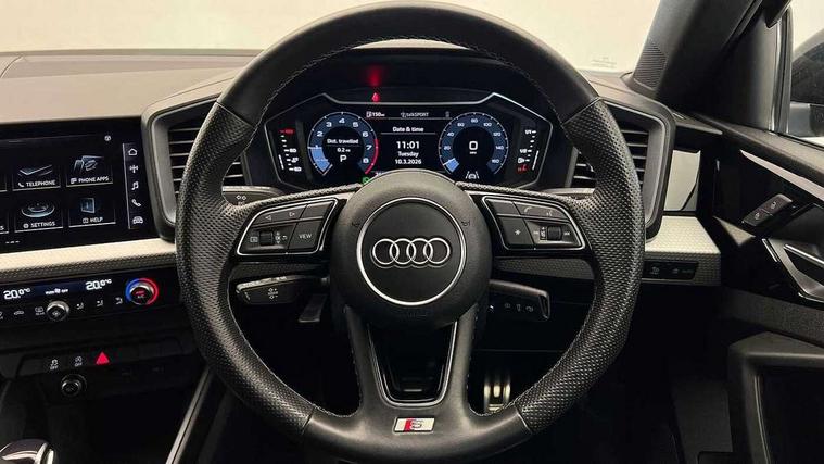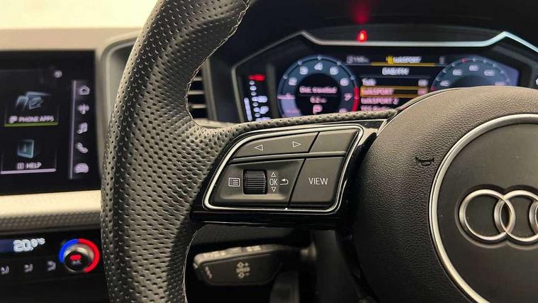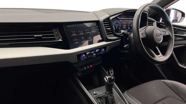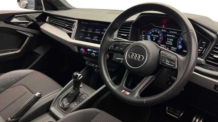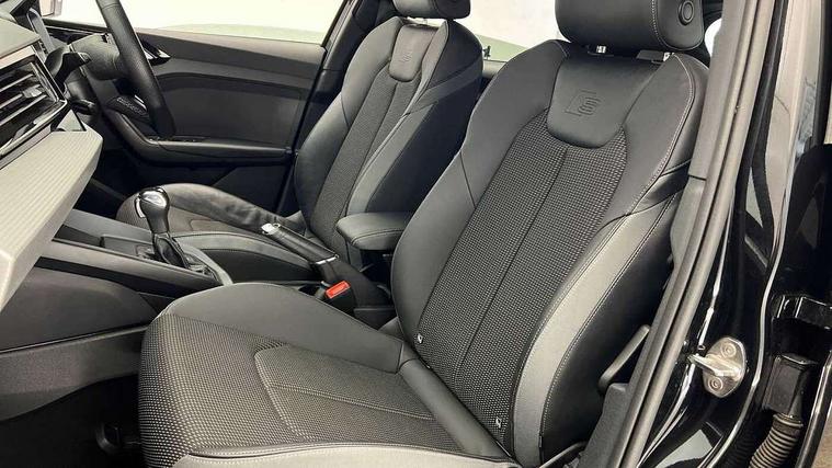 10.25" Digital instrument cluster display classis style instrument dials + speed, odometer, time, outside temperature, telephone menu + fuel level warning, Audi smartphone interface with connect compatible smartphone via USB directly MMI display + Nav, music, third party apps controlled via MMI controller, Automatic start/stop system, Bluetooth interface, Cruise control, Driver's information system, Electromechanical power steering, Emergency e-call, Emergency services call system, Lane departure warning system, Service interval indicator, Speed limiter, Voice control system, Washer fluid level indicator, Sports suspension, 1 x SDXC card reader, 2 x USB type C connection points, DAB Digital radio, MMI radio plus with 8.8" colour MMI display screen and MMI touch, Auto dimming rear view mirror, Body coloured door mirrors, Door sills with aluminium inlays and S Line logo, Electric front and rear windows, Electrically adjustable, heated, folding door mirrors with integrated LED side indicator, Front side air inlets in grained matt black and C frame in titanium black, Heat insulating glass windscreen and side windows, Heated rear windscreen, High level LED brake light, LED headlights with LED rear lights + dynamic rear indicators + headlight adjustment and high beam, turning light + LED daytime running lights, Radiator grille and rear diffuser in matt titanium black, Radiator protective grille frame in matt aluminium silver, Rain and light sensors, Rear fog lights, Rear side wing doors, Rear wing door, Rear wiper, S line badges on front wings, Side front spoiler lips in grained matt black, 12V socket in centre console with two cup holders, 3 rear seats with headrests, 3 seat bench in 2nd row, 40:60 Split folding rear seat or folded fully, Black cloth headlining, Driver and passenger seat with manual height adjust with forward and backwards adjustment, Front and rear black floor mats with contrast stitching in fine silver, Front head restraints, Front passenger seat, Height and reach adjustable steering wheel, ISOFIX child seat mounting for front passenger and outer rear seats including top tether attachment point of outer rear seats, Leather gear knob with aluminium trim, Luggage compartment light with front and rear reading lights, Manually adjustable lumbar support in front seats, Stainless steel pedals, LED interior lighting pack - A1, Luggage compartment pack - A1, S line exterior styling pack - A1 Sportback, 3x3 point rear seatbelts, Brake assist function, Driver and front passenger airbag with front side and head airbags, Electronic Stability Control including ABS, EBD, ASR and EDL, Front passenger airbag deactivation switch, Hill hold assist, Manual rear child locks, Seatbelt height adjustment for front seats, Seatbelt monitoring, Tyre pressure warning light, Warning triangle and first aid kit, Anti theft alarm, Anti theft wheel bolts and loose wheel warning, Audi pre-sense front with pedestrain and cyclist recognition, Immobiliser, Remote central locking with 2 foldaway keys, Aluminium trim for control switches, air vents and digital instrument cluster, Silver grey inlays polygon structure in diamond paint finish, Structured grey accent areas including air vents, door handle recesses and centre console in quartz paint finish,