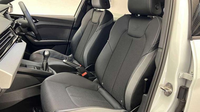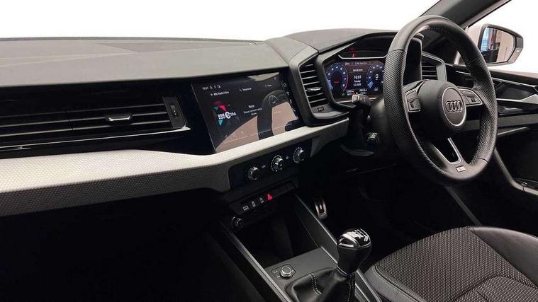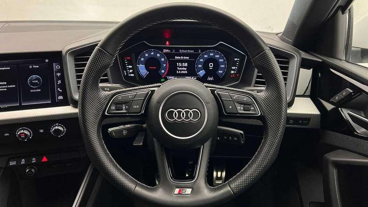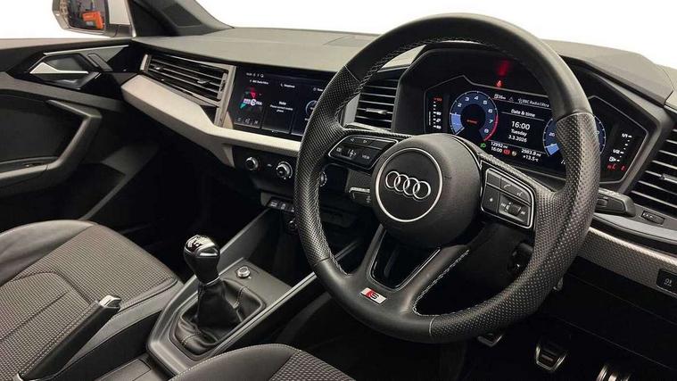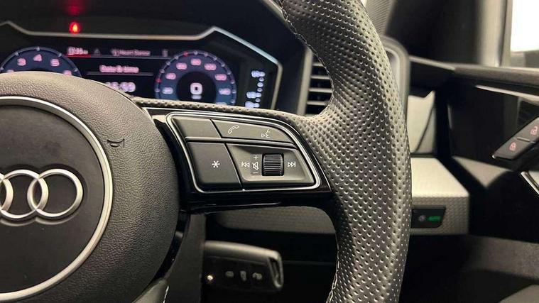10.25" Digital instrument cluster display classis style instrument dials + speed, odometer, time, outside temperature, telephone menu + fuel level warning, Audi drive select - power steering assistance + engine, Audi smartphone interface with connect compatible smartphone via USB directly MMI display + Nav, music, third party apps controlled via MMI controller, Automatic start/stop system, Bluetooth interface, Cruise control, Driver's information system, Electromechanical power steering, Emergency e-call, Emergency services call system, Lane departure warning system, Service interval indicator, Speed limiter, Voice control system, Washer fluid level indicator, Sports suspension, 1 x SDXC card reader, 2 x USB type C connection points, DAB Digital radio, MMI radio plus with 8.8" colour MMI display screen and MMI touch, Auto dimming rear view mirror, Body coloured door mirrors, Door sills with aluminium inlays and S Line logo, Electric front and rear windows, Electrically adjustable, heated, folding door mirrors with integrated LED side indicator, Front side air inlets in grained matt black and C frame in anthracite black, Heat insulating glass windscreen and side windows, Heated rear windscreen, High level LED brake light, LED headlights with LED rear lights + dynamic rear indicators + headlight adjustment and high beam, turning light + LED daytime running lights, Radiator grille and rear diffuser in matt anthracite black, Radiator protective grille frame in matt aluminium silver, Rain and light sensors, Rear fog lights, Rear side wing doors, Rear wing door, Rear wiper, S line badges on front wings, Side front spoiler lips in grained matt black, 12V socket in centre console with two cup holders, 3 rear seats with headrests, 3 seat bench in 2nd row, 3 spoke leather multi-function plus steering wheel features S badging and grips in perforated leather with contrast stitching, 40:60 Split folding rear seat or folded fully, Black cloth headlining, Driver and passenger seat with manual height adjust with forward and backwards adjustment, Front and rear black floor mats with contrast stitching in fine silver, Front head restraints, Front passenger seat, Height and reach adjustable steering wheel, ISOFIX child seat mounting for front passenger and outer rear seats including top tether attachment point of outer rear seats, Leather gear knob with aluminium trim, Luggage compartment light with front and rear reading lights, Manually adjustable lumbar support in front seats, Stainless steel pedals, LED interior lighting pack - A1, Luggage compartment pack - A1, S line exterior styling pack - A1 Sportback, 3x3 point rear seatbelts, Audi pre-sense front with pedestrain and cyclist recognition, Brake assist function, Driver and front passenger airbag with front side and head airbags, Electronic Stability Control including ABS, EBD, ASR and EDL, Front passenger airbag deactivation switch, Hill hold assist, Manual rear child locks, Seatbelt height adjustment for front seats, Seatbelt monitoring, Tyre pressure warning light, Warning triangle and first aid kit, Anti theft alarm, Anti theft wheel bolts and loose wheel warning, Immobiliser, Remote central locking with 2 foldaway keys, Aluminium trim for control switches, air vents and digital instrument cluster, Silver grey inlays polygon structure in diamond paint finish, Structured grey accent areas including air vents, door handle recesses and centre console in quartz paint finish,