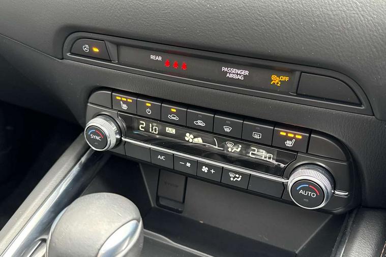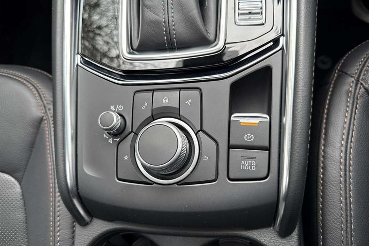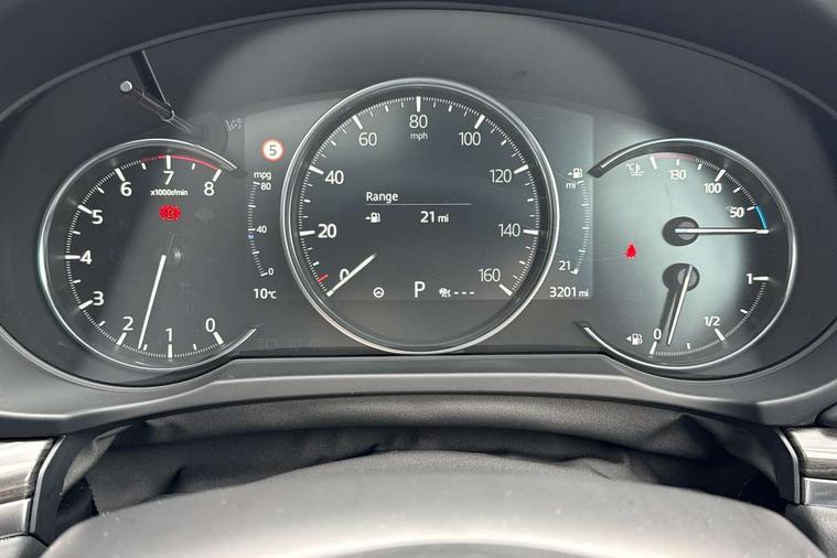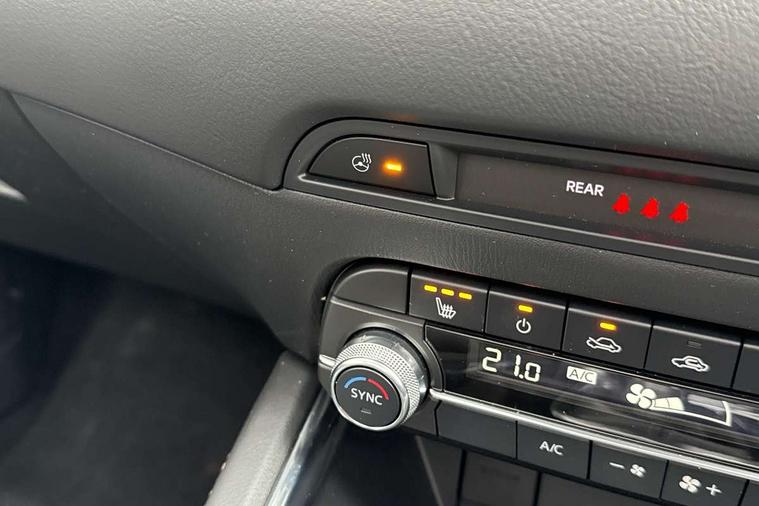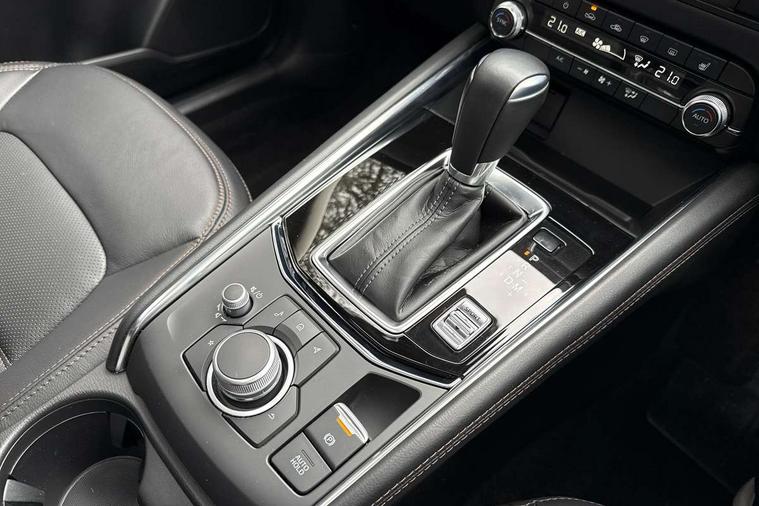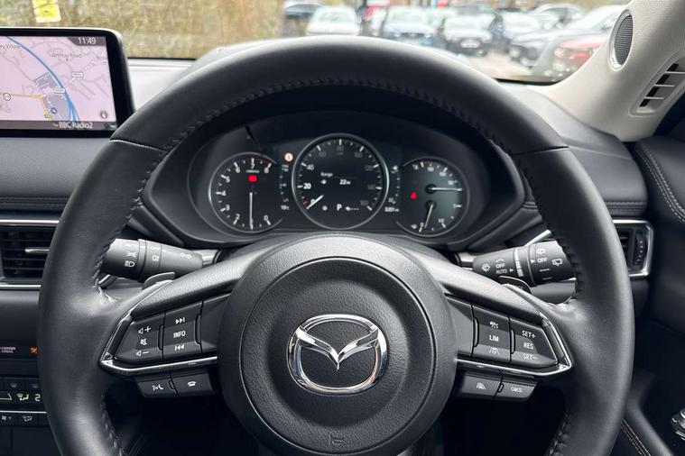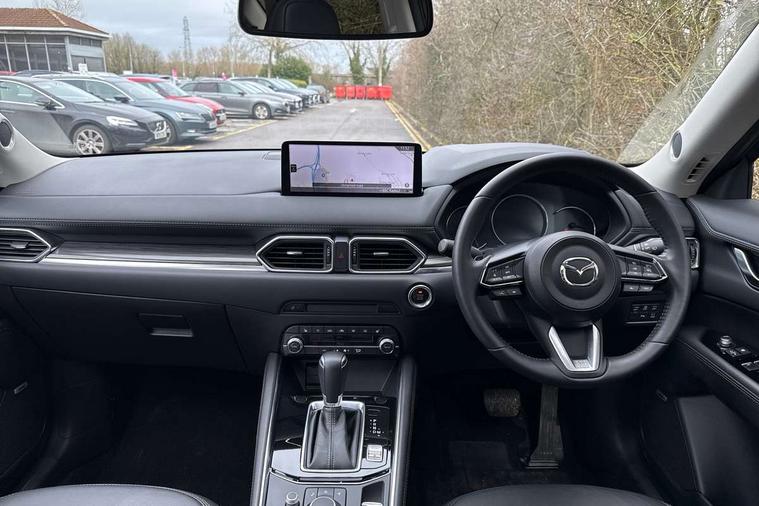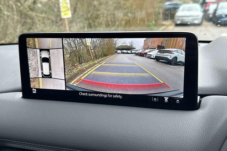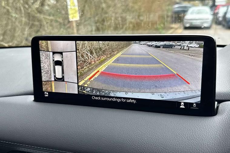 10.25" display with Mazda Connect infotainment, 7" colour TFT display, Advanced blind spot monitoring, Bluetooth connectivity with voice control, Collision prevention assist, Connected services, Cruising Traffic Support, Drive mode selector, Electric power steering, Emergency stop signalling system, Engine start/stop button, Forward collision warning, Front and rear parking sensors, Integrated navigation system, Intelligent speed assist, Lane departure warning system, Lane keep assist, Power liftgate, Qi wireless phone charging, Radar cruise control with Stop and Go, Rear cross traffic alert, Reversing camera, Service indicator, Traffic sign recognition (TSR), Trip computer, Windscreen projected colour active driving display (HUD) with memory, Wireless apple car play/android Auto, Cylinder Deactivation, i-stop, AM/FM radio, Bluetooth audio streaming, Bose premium sound system with 10 speakers, DAB Digital radio, Multimedia Commander including separate volume dial, Steering wheel mounted audio controls, Adaptive front lighting system, Auto dimming rear view mirror, Automatic headlights, Black inlay dashboard panel, Body colour door mirrors, Body colour roof spoiler, Body coloured front and rear black lower bumper mouldings, Coming/leaving home lighting function, Door mirror integrated indicators, Dual chrome tailpipes, Dusk sensitive headlamps, Electric front/rear windows with one touch auto up/down, Front grille in gloss black finish, Front grille in gloss black finish with chrome signature wing, Gloss black B and C pillars garnish, High beam assist, Intermittent rear wash/wipe, LED auto levelling, LED daytime running lights, LED front fog lights, LED Headlights, LED third brake light, Power folding and heated door mirrors, Power tilt/slide sunroof, Privacy glass (rear side windows only), Rain sensing front wipers, Rear side wing doors, Satin black side mouldings, Scuff plates, Shark fin antenna, Signature LED rear combination lights, Variable intermittent front wash/wipe, Vinyl with wood grain metal inlay door trim panel, Windscreen wiper de-icer, 12v electrical power outlet, 3 seat bench in 2nd row, 3 stage heated front seats, 40:20:40 Karakuri fold-flat seat system, 6 way electric adjustable passenger seat, 8 way electric driver seat with lumbar support + memory, Cargo room flat floor board with waterproof undertray, Driver seat power slide, recline and height adjustment, Driver, Front passenger and two rear grab handles with coat hooks, Driver/passenger front seatback pockets, Driver/passenger sunvisors + illuminated vanity mirrors (drivers with ticket holder), Dual zone climate control, Folding centre armrest with 2 cup holders, Front and rear door pockets, Front centre storage with two cupholders, Front passenger seat power slide, recline and height adjustment, Heated steering wheel, Humidity sensor, Illuminated glovebox, Interior dome light with integral spotlight, ISOFIX child seat anchorage points attached on outer rear seats, Karakuri tonneau cover, Leather upholstery, Leather wrapped steering wheel and gear knob, Light roof lining, Luggage compartment LED lighting, Luggage compartment power outlet, Paddle shifts, Rear air vents, Rear headrests, Rear seat recline, Roof mounted sunglasses holder, Single front passenger seat, Three height adjustable head restraints, Tilt/height adjustable steering wheel, USB Connectivity (2x front Type-C, 2x rear Type-B), White interior LED illumination lighting, 3 point front seatbelts with pre-tensioners, 3 rear 3 point seatbelts, ABS, Advanced Smart City Brake Support - SCBS, Child locks on rear doors, Driver and front passenger side airbags, DSTC-Dynamic Stability and Traction Control, Dual front airbags, Electronic brake force distribution, Electronic parking brake with auto hold, ESP, Front and rear curtain airbags, Front passenger airbag deactivation, G-Vectoring control, Hill hold assist, Seatbelt reminder front and rear, Single stage passenger airbags, Smart brake support with forward obstruction warning, Tyre pressure monitoring system, Automatic door locking when moving off, Deadlock, Immobiliser, Power door locks, Remote central locking, Smart keyless entry, Thatcham Cat.1 alarm, 19" diamond cut black alloy wheels, Tyre repair kit,