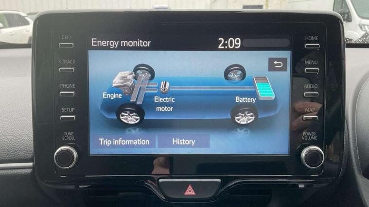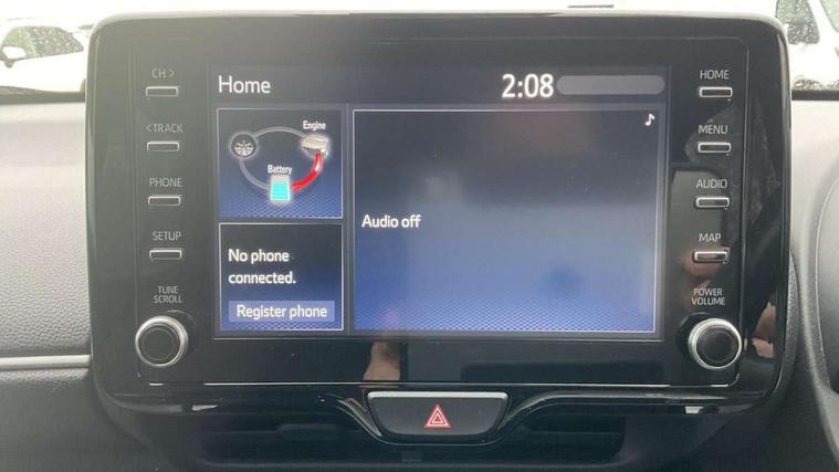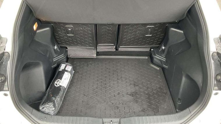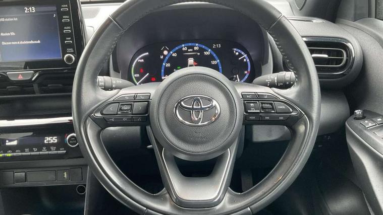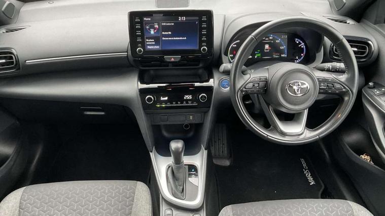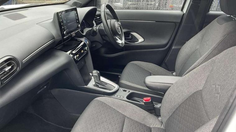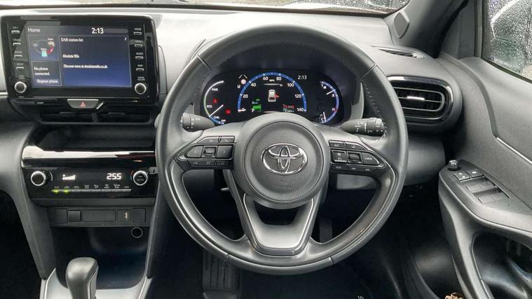 7" Multi information display screen, 8" Toyota touch 2 multimedia system with Smartphone integration with Apple CarPlay and Android auto, Adjustable speed limiter, Bluetooth connectivity, Driver attention alert system, eCall emergency system, Electric power steering, Full range intelligent adaptive cruise control, Hybrid system indicator, Key reminder warning, Lane trace assist, Multimedia, audio, telephone and voice recognition switches on steering wheel, My T Connected services, Pre-collision system enhanced with emergency steering assist, Reversing camera, Road sign assist - RSA, Steering assisted vehicle stability control, 6 speakers, DAB Digital radio, USB connection, 3rd brake light, Acoustic windscreen glass, Aluminium roof rails, Anti-jam protection on power windows, Auto high beam [AHB] with on/off switch, Automatic headlights, Black lower front grille, Black Shark-fin antenna, Black upper front grille, Black wheel arch mouldings, Body colour door handles, Body colour front bumper, Body colour rear bumper, Electric adjustable heated door mirrors, Follow me home headlights, Front and rear electric windows with auto up/down function, Front intermittent wipers, Headlight cut off reminder, Indicators integrated on door mirrors, Intermittent rear wiper, LED daytime running lights guide, LED front fog lights, LED front light guide, LED Indicators, LED projector headlights, LED rear light guide, Manual headlight levelling, Manually retractable door mirrors, Noise reduction layer on windscreen, Privacy glass, Rain sensor, Rear LED lights with sequential indicators, Rear side wing doors, Rear spoiler, Rear window defogger, 12v power outlet - front, 2x Rear coat hooks, 3 seat bench in 2nd row, 3 spoke leather steering wheel, 40:20:40 split folding rear bench seat, Adjustable speed limiter switch on steering wheel, Auto air conditioning, Black roof lining, Boot light, Central armrest, Centre console in light blue ambent lighting, Driver and front passenger personal lights, Fabric door trim, Fabric upholstery, Footwell in light blue ambient lighting, Front console box, Front cup holders, Front head restraints, Glovebox, Height adjustable driver's seat, Height adjustable front passenger seat, Hooks for luggage holding belts, ISOFIX child restraint system, Lane departure alert switch on steering control, Leather gearshift, Light blue ambient lighting on front doors, Manual telescopic and tilting steering wheel, Mirror on driver and passenger sun visor, Pollen air filter, Rear cup holders, Rear head restraints, Single front passenger seat, Soft tonneau cover, 3x3 point rear seat belts, ABS+EBD+Brake assist, Driver and passenger central airbags, Driver and passenger front airbags, Driver and passenger side airbags, Electronic parking brake, Emergency brake light system (EBS), Front seat belt reminder, Hill start assist control (HAC), Passenger airbag on/off switch, Pre-collision system with pedestrian and cyclist detection, Rear door child safety locks, Rear passenger side airbags, Rear seat belt reminder, Traction control, Tyre pressure warning system, Immobiliser, Intrusion alarm, Keyless smart entry with push button start, Power door locks, Power passenger window lock, Remote door lock, Tyre repair kit,