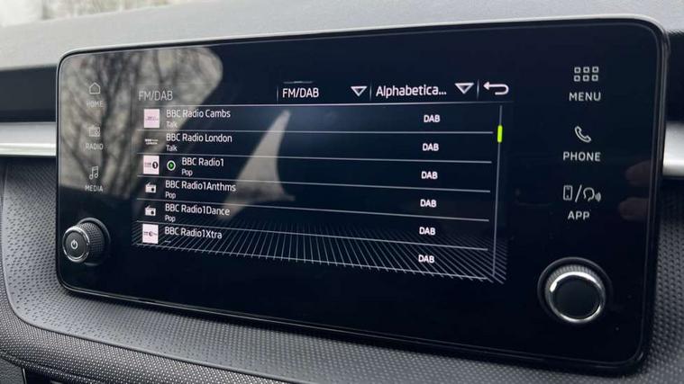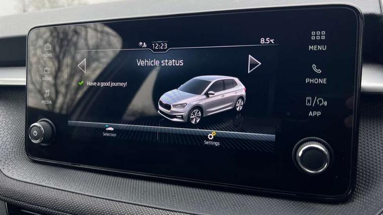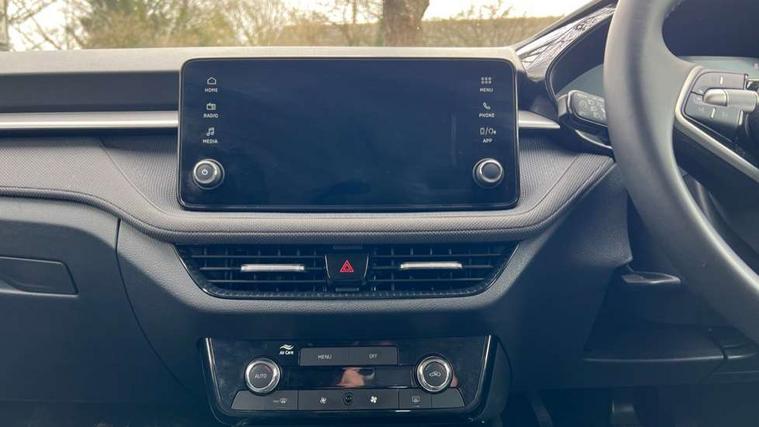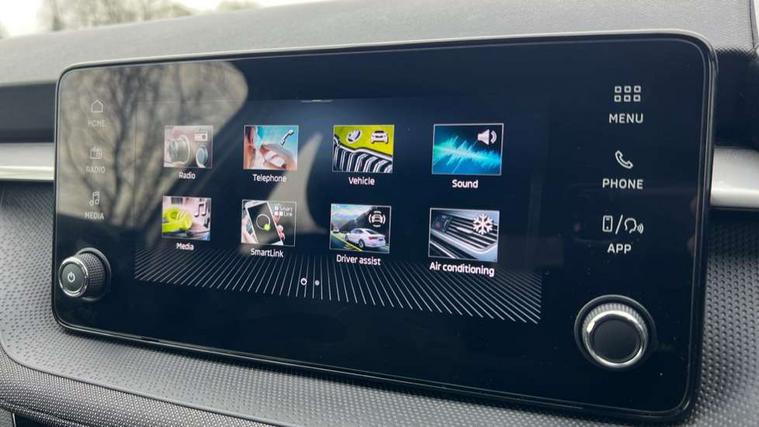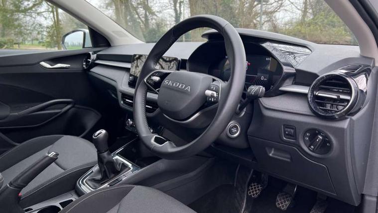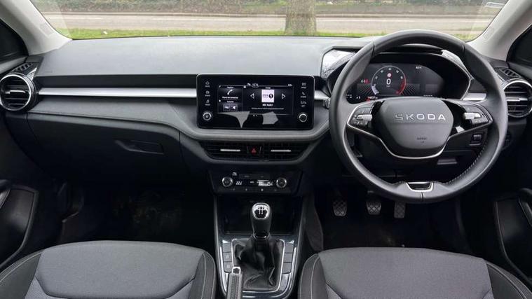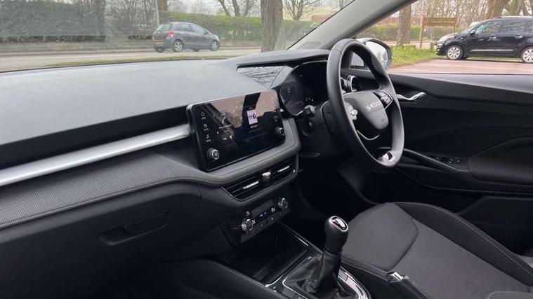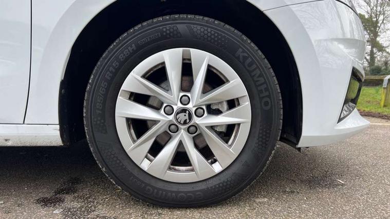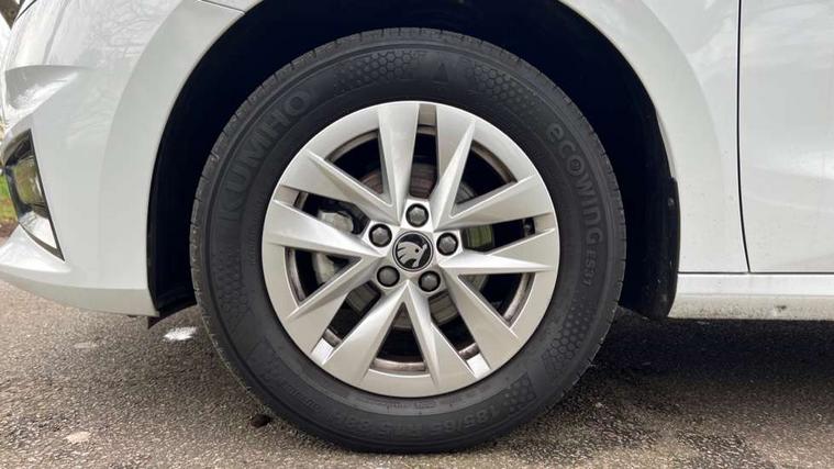 8" Digital instrument display, Advanced driver attention and drowsiness monitor, Bluetooth connection, Electromechanical power steering, Exterior temperature gauge, Service interval indicator, Traffic sign recognition, Wireless SmartLink for Apple CarPlay and Android Auto, 6 Speakers (4 in front and 2 in rear), 8.25" Skoda infotainment touchscreen display, Auxiliary socket for external MP3 player, DAB digital radio reception, Auto dimming rear view mirror, Body colour door mirrors, Body coloured bumpers, Door mirror integrated indicators, Front and rear electric windows, Front window wiper intermittent control, Headlight range control - Automatic, Ice scraper in fuel cap, LED 3rd brake light, LED daytime running lights with coming and leaving home feature, LED rear lights, Rear LED fog light, Rear side wing doors, Rear window wiper with washing nozzles, Roof mounted spoiler, SKODA tailgate lettering in chrome, Unique dark chrome design logo on alloy wheels, 2 reading lights in front and 2 reading lights in rear, 3 rear headrests, Backrest split and folding, Central console with removable cup holder and storage box, Chrome handbrake release button, Dual zone air conditioning with climatronic electronic control, Fabric upholstery, Front centre armrest, Gearshift knob/handle in leather, Grain satin black interior door handles, Hand brake lever handle in leather, Height adjustable front headrests, Height adjustable front seats, Height adjustable steering wheel, ISOFIX and TopTether anchorage points to the outer rear seats, ISOFIX and TopTether on the front passenger seat, Luggage compartment lighting, Manually adjustable lumbar support in front seats, Pollen filter, Rear seat bench unsplit, Single front passenger seat, Skoda lettering on steering wheel, Storm grey headlining, Sun visors with mirror and airbag label on passenger side, Textile floor mats, Ticket holder, Umbrella in drivers door, 3-point height adjustable front seats belts with pretensioner and force limiter, Automatic warning lights in case of crash, Driver and passengers airbag with switch off function, e-Call+, ESC including ABS, MSR, ASR, EDS, HBA and XDS, Front and rear seat belt warning, FRONT ASSIST (AEB City and AEB Inter Urban), Front side airbags, Head airbags, One tone horn, Pedestrian protection, Three rear 3-points safety seat belts with pretensioner and force limiter including stop function for outer rear seat belts, Tyre pressure monitoring system, Anti-theft alarm system including immobiliser, interior monitoring, backup horn, and towing protection, Central locking with radio remote control, interior controls, SAFE function and 2 foldable keys, Black painted air vents, Grain satin black central console cover, Metallic grey upper decorative trim, Satin black door and side trim panel in front, Textile Kota grey lower decorative inserts, Anti-theft wheel bolts protection, Super-low rolling resistance tyres,