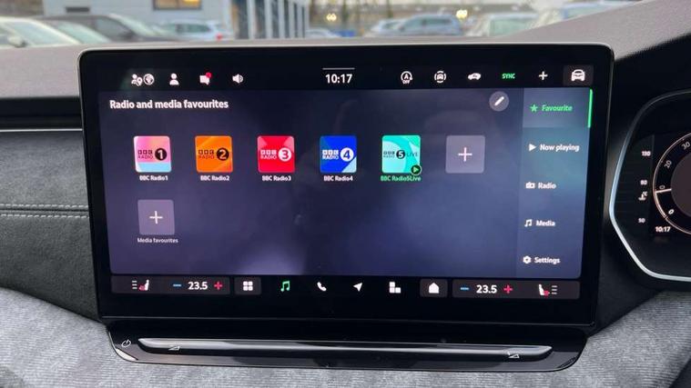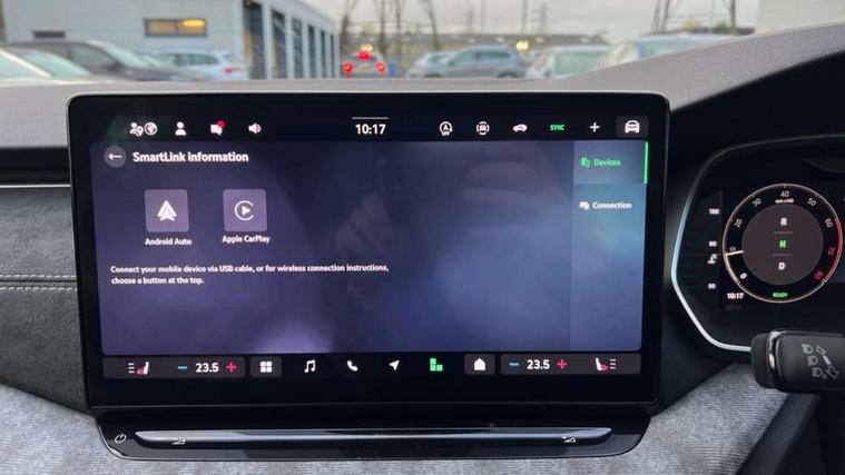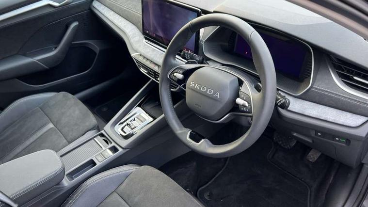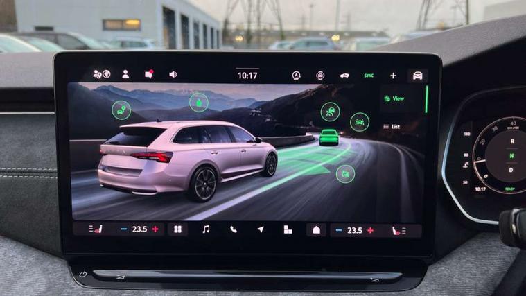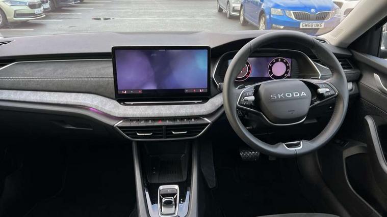 1x USB Typc C port in rear view mirror, 4x USB Type C ports - 2x in front centre console and 2x in rear (45W), Drive mode selection, Driver fatigue sensor, eCall emergency system, Electro-mechanical power steering, Front assist system, Traffic jam assist, Traffic sign recognition, Turn Assist, Virtual Cockpit - 10.25" digital display, Voice control system, Wireless charging (15W) with cooling function, Wireless SmartLink for Apple CarPlay and Android Auto, 13" touchscreen display with navigation, DAB Digital radio, Aero front windscreen wipers with intermittent function, Auto dimming rear view mirror, Body colour bumpers, Body colour door mirrors and handles, Chrome grille surround, Chrome roof rails, Chrome strip in lower front bumper, Chrome window surrounds, Electric front and rear windows, Heated rear windscreen, High level third brake light, Ice scraper in fuel cap, LED daytime running lights, LED Headlights, Logo projection in front doors, Rain and light sensors, Rear fog light on one side, Rear privacy glass, Rear side wing doors, Rear spoiler, Rear window wiper, 12 volt socket in boot, 3 rear headrests, 3 seat bench in 2nd row, 4 foldable roof handles, Front head restraints, Heated front seats, Illuminated glovebox, Interior door handles in dark chrome, Jumbo Box storage, Luggage compartment lighting x2 lights, Mechanical rear seat release from boot, Single front passenger seat, Steering wheel in black leather with black stitching, Storage compartments in left and right of boot, Sun visors with mirrors, Sunglasses storage, Ticket holder, Umbrella in door panel, Unsplit rear bench seat, split folding backrest with centre armrest with cupholder, Comfort package - Octavia Estate, Simply clever package premium - Octavia, 3x3 point rear seat belts, Alarm with interior monitoring, tilt sensor and back up horn, Curtain airbags and front side airbags, Driver and front passenger airbags, Drivers knee airbag, Electronic parking brake, ESC including ABS, EBV, MSR, ASR, EDS, HBA, DSR, Front central airbag, Hill hold assist, ISOFIX on front passenger seat and outer rear seats, Passenger airbag deactivate switch, Three point seat belts in front and rear, Two tone horn, Tyre pressure monitor, Visual and acoustic seat belt reminder, Warning reflectors in front door, Anti-theft wheel bolts, Keyless start/stop, Remote central locking, Chrome air vent surrounds,