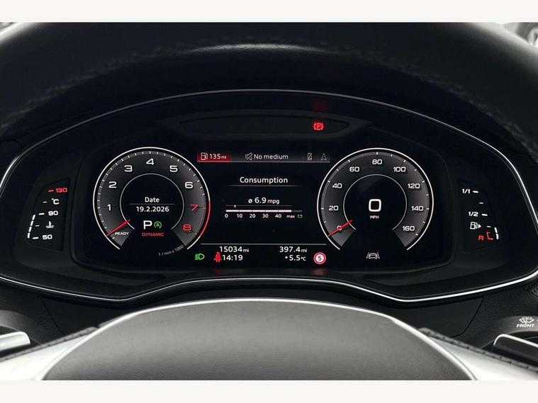 Audi connect safety and service (e-call), Audi connect with Amazon Alexa Integration, Audi drive select, Audi parking system plus - acoustic and visual park assist system for front and rear, Audi virtual cockpit, Automatic start/stop system with coasting functionality, Bluetooth interface, Camera based traffic sign recognition, Electric boot lid release, Lane departure warning system, MMI navigation plus with 10.1" and 8.6" touch screens, Progressive steering, Rear view camera, Service interval indicator, Smartphone interface includes wireless Apple carplay/Android Auto, Voice control system, Sports suspension, Audi front music interface, Audi sound system, Auxiliary input socket, DAB Digital radio, USB connection, Audi beam, Electric front/rear windows, Electrically adjustable heated and folding + automatically dimming exterior mirrors with memory function, Frameless auto dimming interior rear view mirror, Front intermittent wipers, Heat insulating darkened glass in side and rear windows, Heat insulating glass in windshield, LED rear lights with dynamic indicators, LED signature front daytime running light, LED third brake light, Matrix LED headlights, Matt black rear diffuser with diffuser strip and tailpipes in chrome, Matt black side air intake grille with inlay in matt aluminium, Omission of output/technology badging, Privacy glass, Radiator grille in anthracite black matt, single frame in chrome and horizontal struts in matt aluminium silver, Rain and light sensors, Rear boot, Rear side wing doors, 2 zone deluxe electronic climate control, 40/20/40 split folding 3 rear seat bench in 3 parts with rear centre armrest, Audi phone box light, Black cloth headlining, Electrically adjustable front seats including seat height, fore/aft position, backrest angle and 4-way lumbar with memory for driver's seat, Front and rear floor mats, Front centre armrest, Front head restraints, Heated front seats, Height/reach adjust steering wheel, Illuminated door sill trims with S logo, Illuminated sun visors with vanity mirrors, Leather gear knob, Rear headrests, Single front passenger seat, Stainless steel pedals and foot rest, Tool kit and car jack, Black styling package plus - A6 Black edition, LED Interior Ambient Lighting Pack - A6, Non smoking pack - A6, S line exterior style pack - A6, 3 point seatbelts on all seats, Airbags - Front side, front and rear including head, Audi pre-sense front, EBD - Electronic brakeforce distribution, Electromechanical parking brake, Electronic Stability Control (ESC) including ABS, ASR and EDL, Extended pedestrian protection measures, ISOFIX child seat mounting for front passenger seat and ISOFIX child seat mounting with Top Tether for outer rear seats, Manual child proof rear door locks, Seatbelt monitoring, Tyre pressure warning light, Warning triangle and first aid kit, Anti theft alarm with tow away protection, Anti-theft wheel bolts and wheel loosening detection, Immobiliser, Keyless Go, Remote central locking, Carbon twill inlays,
