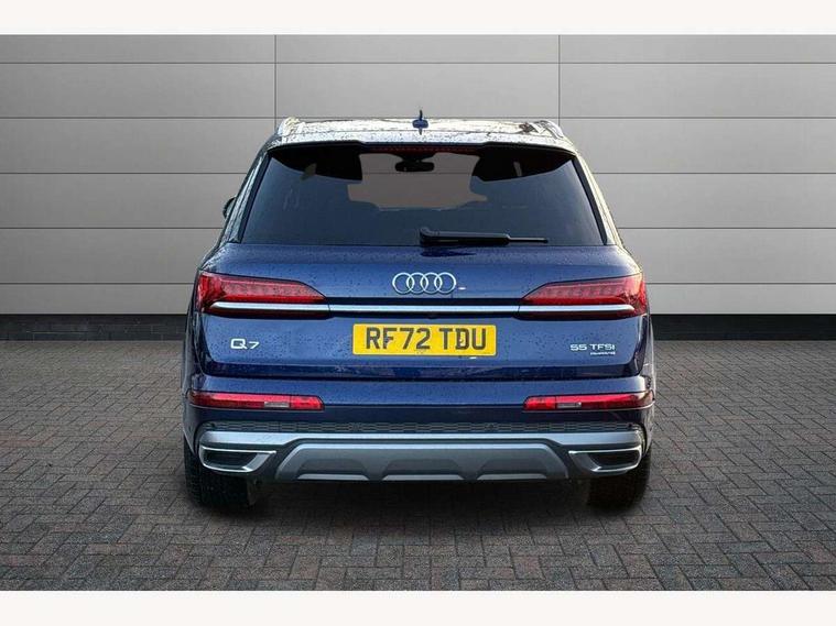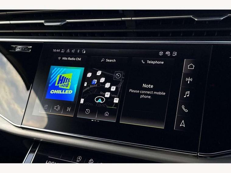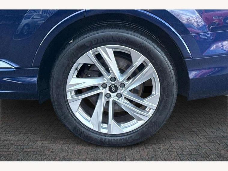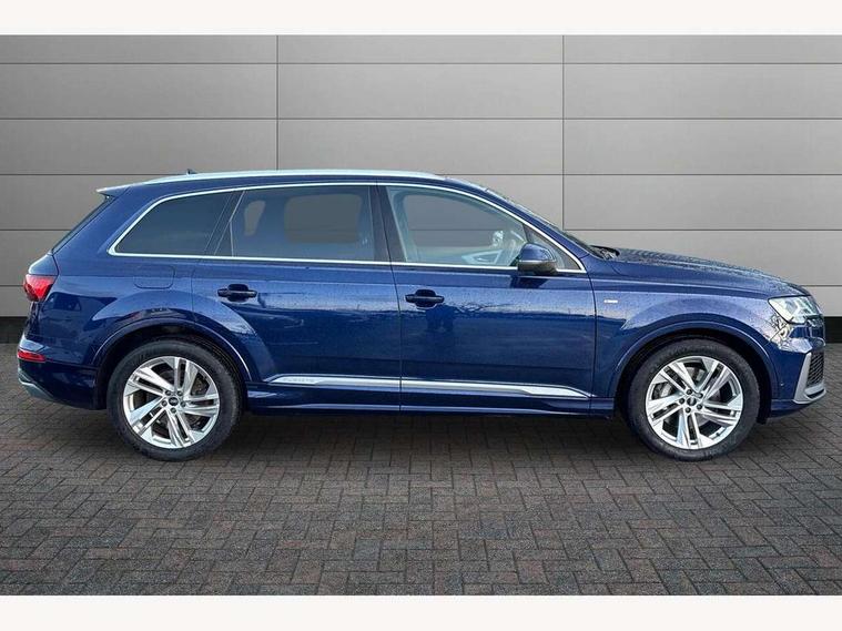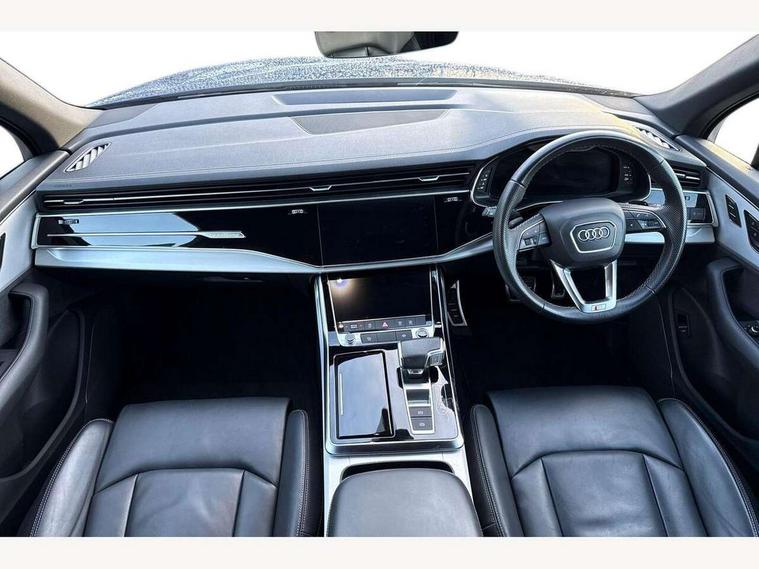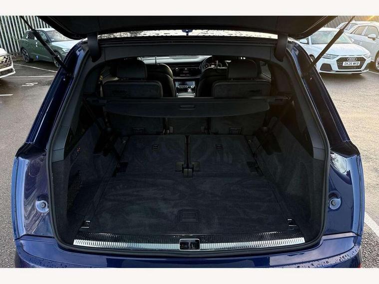 Audi connect safety and service (e-call), Audi connect with Amazon Alexa Integration, Audi drive select (Auto, Comfort, Dynamic, Efficiency, Individual, Off-road and All road), Bluetooth interface, Camera based traffic sign recognition, Electromechanical steering, MMI navigation plus with MMI touch screens includes 10.1" and 8.6" screens with haptic feedback, Natural voice recognition, Parking system plus with 360 degree display (front, rear and side sensors) - acoustic and visual park assist system, Power operated tailgate, Rear view camera, Smartphone interface includes wireless Apple carplay/Android Auto, Start/stop system, 48V Mild hybrid technology, 85 litre fuel tank, Adaptive air suspension, Quattro all wheel drive with self locking centre differential, Audi music interface - front 2 USB-C ports with charger and data functions, Audi sound system with 6 channel amplifier, 180 watt amplifying capacity and 10 loudspeakers including subwoofer, DAB digital radio module, 3rd brake light, Aluminium roof rails, Aluminium window trim, Auto dimming frameless rear view mirror, Body coloured door mirrors, Dark tinted Matrix LED headlights with dynamic front and rear indicators, Electrically adj heated/folding + automatically dimming exterior mirrors with memory + automatic kerb side function for passenger side exterior mirror, Heat insulating glass in windshield, Integrated LED indications in door mirrors, LED daytime running lights, LED rear tail lights, Privacy glass - dark tinted rear and rear side windows from B-pillar backwards, Rear side wing doors, Rear wiper, S Line badge on wings, S line bumpers in full body colour paint finish, S line roof spoiler, S line styling side ventilation grilles and side skirts, 2 seat bench in 3rd row, 2 zone automatic climate control, 3 seat bench in 2nd row, 7 seat layout with ISOFIX points for the front passenger seat and rear passenger seat, Black cloth headlining, Comfort front centre armrest, Electric adjustable front seat with 4 way lumbar support, driver memory functionality, Folding rear seats, Front head restraints, Front/rear floor mats, Heated front seats, Illuminated door sill trims with S logo, LED interior ambient lighting, Luggage compartment cover, Luggage compartment sill protection in stainless steel, Rear head restraints, Single front passenger seat, Stainless steel pedals, Sunvisors with illuminated vanity mirrors, 3 point seatbelts on all rear seats, Audi pre sense front, Child locks on rear doors, Driver and front passenger, front side and curtain airbags, Electromechanical parking brake, Electronic Stabilisation Control (ESC) including ABS, ASR and EDL, Extended pedestrian protection measures, Hill hold assist, Seatbelt monitoring, Tyre pressure loss indicator, Warning triangle and first aid kit, Anti theft alarm, Anti-theft wheel bolts and wheel loosening detection, Keyless Go, Remote central locking, Darkened matt brushed aluminium inlays, Tool kit, Tyre repair kit,
