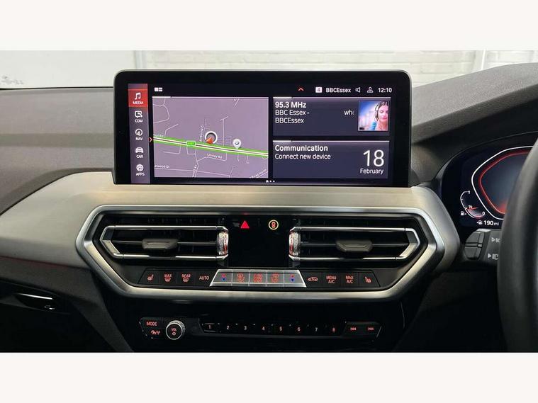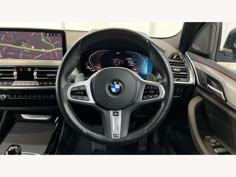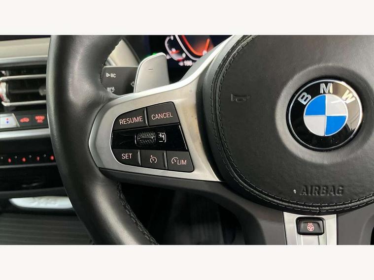 Active Guard, Attentiveness assist, BMW Live Cockpit Professional nav system including 12.3" instrument display + 12.3 high resolution control display, BMW Online services, BMW Teleservices, Brake pad wear indicator in front and rear, Check Control warning system for monitoring of lights and door/luggage compartment open warning, Condition based service - BMW service history, electronic service booklet, integrated owner's handbook, Connected drive services, Cruise control with brake function + speed limiter, Electric boot lid, Front/rear Parking distance control, iDrive touch controller with 8 favourite buttons, Instrument cluster with speedometer with mph readout, tachometer, fuel gauge and oil temperature gauge, Lights on warning by audio warning signal when ignition is switched off, Oil sensor for level and grade, warning by check control system, On board computer - average speed+fuel consumption, service interval, clock/date, odometer/trip meter, outside temperature display and ice warning, Optimum shift indicator, Personal Profile - automatic lock when driving away selectable, Run flat indicator, Stop/start system, Variable sports power steering with drive performance control Sport+ mode, Automatic transmission with gearshift paddles, Incorrect fuelling protection, M sport suspension, Multi-link rear suspension, BMW professional radio/CD/MP3, DAB tuner, Acoustic glazing, Automatic windscreen wipers and automatic headlight, Black finish on B pillars, Body colour door handles, Body colour electric adjust heated aspherical door mirrors, Body colour roof mouldings, Body coloured bumpers, Direction indicator, side repeaters, integrated in exterior mirrors, Dynamic brake lights, Exhaust tailpipes - dual, round, split left and right with chrome finisher, Fingertip control / anti-trap function on electric window, Folding wing mirrors with auto dimming, Follow me home headlights, Front and rear bumper system with replaceable deformation elements, Front and rear electric windows, Gloss chrome tailpipes finishers, Green tinted heat insulating glass, Heated windscreen washer jets, High beam assistant, High gloss black shadow line roof rails, High gloss shadowline exterior trim in decorative moulding side frame/recess cover/guide rail/B, C pillars/mirror frame and triangle with mirror base, High level 3rd brake light incorporating LED Technology, Interior rear view electrochromatic mirror with automatic anti dazzle function, LED tail lights, Lightweight engineering, M aerodynamic bodystyling, M Sport entry door sill strips, Model designation, Rain sensor, Rear side wing doors, Rear wing door, Rear wiper, Shark fin antenna, Side exterior M designation badges, Visible VIN plate, Welcome lighting, Windscreen wipers with adjustable interval, 12V power point in luggage area, 12V power socket in front centre console, 2 x USB Type C ports for charging and data transmission (front centre console) and 2 x USB Type C ports for charging (rear centre console), 3 rear headrests, 3 seat bench in 2nd row, 3 zone automatic air conditioning, 4 lashing points to secure luggage, 40:20:40 split folding rear seat with loading system, Ambient lighting, Anthracite headlining, Automatic interior light when door is opened/ignition switched off or via remote key, Floor mats in velour, Foldable storage floor with compartment, Four grab handles integrated in roof lining, Front and rear bottle holders integrated into door trim storage compartments, Front and rear side armrests integrated into door trim, Front centre armrest with storage compartment, Front footwell lights, Front head restraints, Front passenger seat, Front sports seats, Front/rear courtesy lights with soft on/off dimming, Front/rear reading lights, Heated front seats, Isofix rear child seat preparation, Leather gear knob, Lockable glove compartment, Luggage area underfloor compartment, Luggage compartment lighting, M sport leather steering wheel, Multifunction steering wheel, Parcel shelf removeable and storable under boot floor, Reach and rake adjustable steering column, Rear centre armrest with 2 cupholders, Removable / retractable luggage cover, Slope adjustable rear seats, Storage compartment in rear centre console and front/rear door trims, Sun visors with vanity mirrors and ticket pocket, Toolkit located in luggage compartment, Two front cupholders with removable oddments tray/lid, Connected pro pack - X3, Driving assistant pack - X3, ADB - Automatic Differential Brake, Anti-lock braking system (ABS) with brake assist, Automatic Stability Control (ASC), Battery safety cut-off, BMW emergency call, Brake drying, Brake energy regeneration, Braking pre-tensioning, Child locks on rear doors, Cornering brake control (CBC), Crash Sensor - activation of central locking release, hazard warning light and interior lighting, Deactivation of fuel pump in the event of a crash, Driver and front passenger front and side airbags with passenger deactivation and ITS front and rear head airbags, Driver and front passenger knee airbag, DSC+, Dynamic brake control, Dynamic Traction Control - DTC, Electromechanical parking brake, Hill descent control, Hill start assist, Seatbelt security check for front seats, Side impact protection, Three point seatbelts to all seats with front and outer rear pyrotechnic belt tensioners and seat belt force limiters, Two tone horn, Tyre pressure sensor, Ventilated front and rear disc brakes, Warning triangle and first aid kit, Central locking switch for all doors, fuel filler cap and luggage compartment, Electronic engine immobiliser, Locking wheel nuts, Remote control including two integrated key - one button for open/close all lockable content, windows and separate button for open luggage compartment, Remote control Thatcham category 1 alarm, Start/stop button with Comfort Go keyless engine start and auto Start/stop deactivation button, Low rolling resistance tyres,