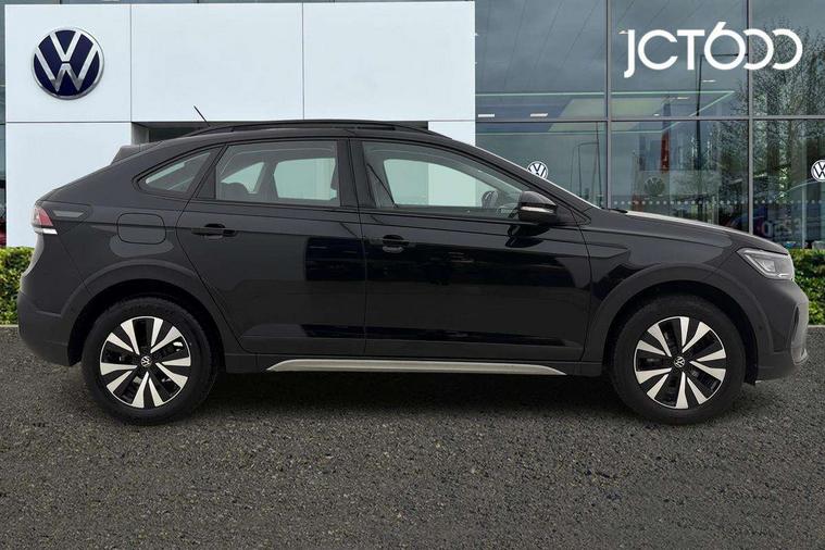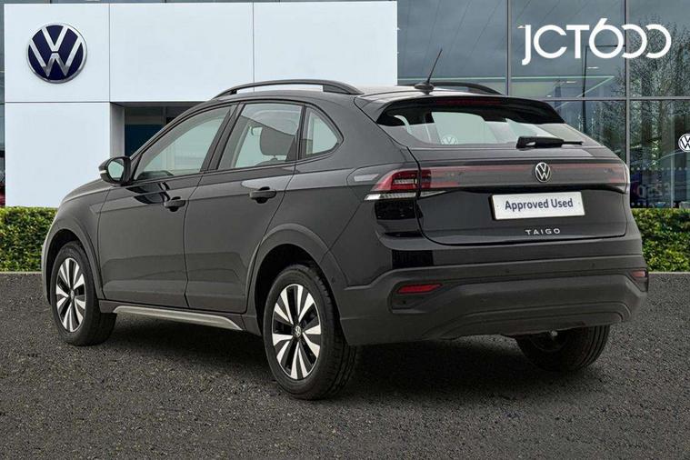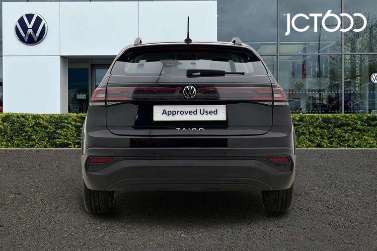 App-Connect including App-Connect Wireless, Driver alert system, e-Call (emergency call), Power Steering, Travel assist including emergency assist, Washer fluid level indicator, Wireless Charging including Bluetooth, Start-stop system with battery regeneration (recuperation - energy recovery during braking), Digital radio reception (DAB+), Diversity antenna for FM reception, WeConnect plus, Ambient lighting with logo projection, Aspherical driver's exterior mirror, Auto headlights, Body coloured bumpers, Body coloured exterior mirror housings and door handles, Electric windows, External USB type C socket and charging sockets, Front fog lamps with cornering function, Headlight range control, Heat insulating glass windscreen, LED headlamps, LED rear combination lamp, LED third brake light, Left convex exterior mirror, Power folding adjustable/heated exterior mirrors and front passenger exterior mirror lowering function, Rear fog light on one side, reversing light on both sides, Rear side wing doors, Rear wash/wipe with intermittent wipe setting, 'Slash/ Austin' Cloth upholstery, 12V socket in centre console, 2 front reading lights, 3 rear head restraints, 3 seat bench in 2nd row, Black carpets, Child seat anchor for child seat system i-Size, 2x top tether and child seat anchor in front on front passenger side, Door and side trim panels in titan black, Driver and front passenger seat height adjustment, Front centre armrest, Handbrake lever handle in leather, Height and reach adjustable steering wheel, Leather trimmed gear knob, Leather wrapped multifunction steering wheel, Luggage compartment floor, Luggage compartment light, Lumbar support for driver's and front passengers seat, Seat covers in titanium black, Single front passenger seat, Split folding backrest with centre armrest and unsplit rear seat bench, Storage compartment under front seats, Sun visors with illuminated vanity mirrors, Chrome Package - Taigo, Drivers assistance pack - Taigo, Light and Sight pack including High beam assist - Taigo, 2 x 3-point seatbelts/outer rear seats with ECE label, 3-point seat belts in front with pretensioner and height adjustment, 3-point seatbelt for centre rear seat, Driver and front passenger airbags with front passenger airbag de-activation, front side and curtain airbags, Driver and front passenger safety-optimised head restraints, Electronic stability control, Extended and predictive pedestrian/ cyclist protection, Front and rear disc brakes, Front curtain and side airbags with center airbag, Hill start assist, Manual rear child locks, Single tone horn, Tyre pressure loss indicator, Anti-theft alarm system with interior monitoring, backup horn, and towing protection, Anti-theft wheel bolts, Lava stone black gloss/matt decorative inserts in dash and front door panels, Low rolling resistance tyres,