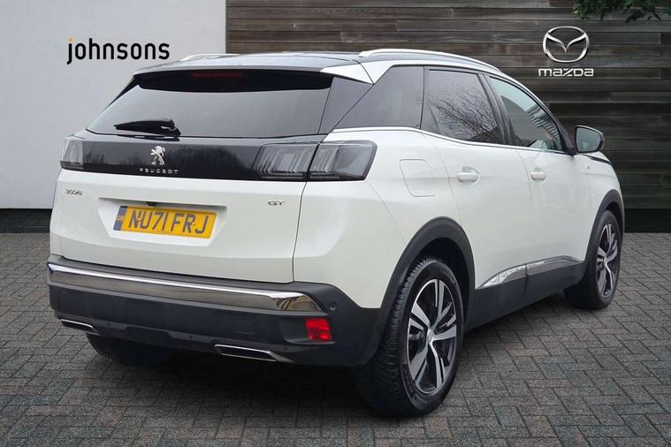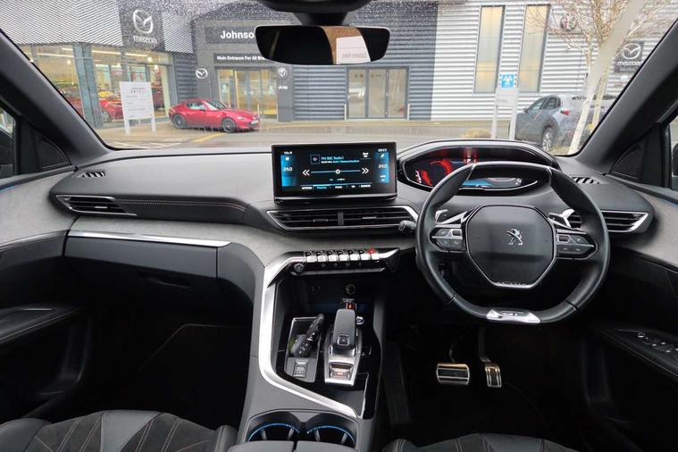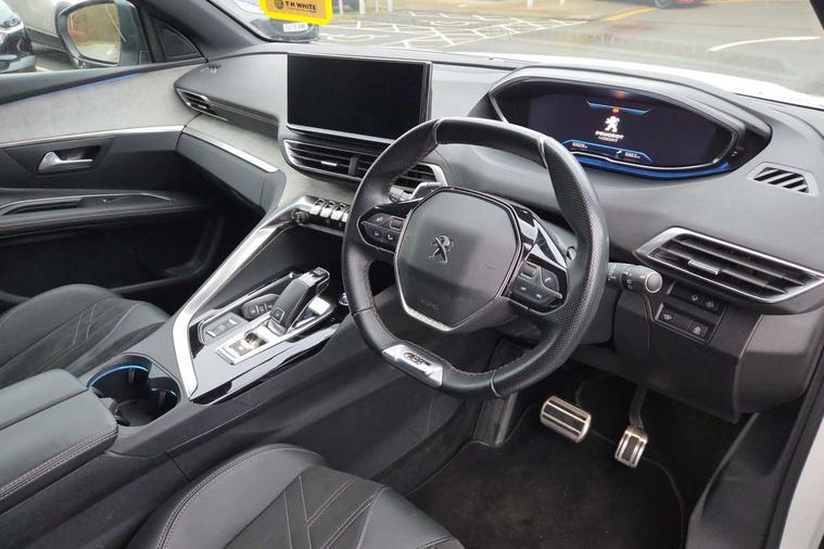 3D connected navigation with 10" HD touchscreen + voice recognition system, Bluetooth telephone facility, Driver attention alert system, Extended traffic sign recognition, Exterior temperature indicator with ice warning, Front parking sensors, Lane departure warning system, Mirror screen with mirror link, apple carplay and android auto, Multi function trip computer, Passive blind spot monitoring without Steering correction, PEUGEOT i-Cockpit with 8.0" capacitive touchscreen in centre console, Peugeot i-cockpit with compact multi-function sports steering wheel, PEUGEOT i-Cockpit with configurable 12.3" Head-up digital instrument panel, PEUGEOT SOS and assistance, Rear parking aid, Rear passenger USB charging sockets (x2) (type A), Speed limit recognition and recommendation, Dynamic stability control and electronic anti-skid system, Stop/start function, DAB Digital radio, USB socket, Automatic hazard light activation upon heavy brake application, Automatic triggered rear windscreen wiper in reverse gear, Body colour door handles, Body colour rear roof spoiler with stainless steel edging trim, Body protectors (bottom of front and rear bumpers + wheel arches + protection at bottom of doors) in black, Chrome front wing trim, Dark tinted rear side windows + tailgate window, Electric folding door mirrors, Electric operated/heated door mirrors, Fog Mode, Frameless electrochrome rear view mirror, Front windscreen wiper with magic wash cleaning system, Full LED headlights with LED fog lights with static cornering function, Gloss black B and C pillar and aerodynamic deflector trim, Gloss black front bumper air scoops, Gloss black rear cluster connecting strip, GT emblem in satin copper (front wings and tailgate), Headlights left on audible warning, Heated rear windscreen with integrated antenna, LED daytime running lights, LED rear number plate lighting, LED side indicator lights integrated into door mirrors, LED third brake light, Nera black door mirrors, One touch electric front/rear windows with pinch protection, Rear LED Peugeot signature 'Claw Effect' lights, Rear side wing doors, Stainless steel roof arches, Twin exhaust tailpipe, 1/3 to 2/3 split folding rear seats, 12V Sockets in dashboard, rear cabin and load area, 2 cupholders in front centre console, 2x Rear coat hooks, 3x Isofix child seat fittings in the front passenger and outer rear seats, 4 Grab handles retractable and damped, Aikinite stitching in armrest, gear lever and dashboard facia, Aluminium pedals, Blue ambient lighting for connecting zone, Blue ambient lighting to front door panels, central storage and cupholders, Centre front armrest with butterfly wing opening and illuminated storage compartment, Dual zone automatic climate control, Electric power steering with reach and rake adjustable steering column, Flocked front door pocket interior with blue ambient lighting, Flocked glovebox interior, Foldable front passenger seat, Footwell illumination, Front interior light with 2 reading spotlights and rear interior light with timer, Front seat back map pockets, Gear shift indicator, Height adjustable front seats, Illuminated glovebox, Individual left and right controls in boot for seat folding, LED interior lighting in storage spaces and load area, Mistral floor mats with Aikinite contrast stitching, Mistral full grain perforated leather steering wheel with aikinite stitch detail and satin chrome 'GT' emblem, Rear bench seat with central armrest and ski hatch, Rear centre console ventilation system, Roof lining - Mistral black, Satin chrome dashboard trim, Satin chrome digital instrument panel and touchscreen trim, Satin chrome front door panel recess trim, Satin chrome interior door handles, Satin chrome scorpion's tail and toggle switch trim, Seatbelt not fastened audible and visual alert for front seats, Seatbelt unfastened on the move audible and visual alert for front and rear seats, Sunvisors with illuminated vanity mirrors, Two position boot floor, Drive assist plus pack - 3008, Driver sport pack - 3008 Auto, Visibility pack - 3008, 3x Rear three-point retractable seatbelts with force limiters in the outer rear seats, ABS (Anti-lock Braking System) with EBD (Electronic Brakeforce Distribution) and EBA (Emergency Braking Assistance), Adaptive driver and front passenger airbags with passenger airbag deactivation function, Driver and front passenger side airbags, Electric child locking functionality on rear windows and doors, Electric parking brake, Front and rear curtain airbags, Front optimised safety headrests and 3 x rear retractable headrests with height adjustable, Front three point retractable seatbelts with pre tensioners and force limiters, Front ventilated disc brakes and rear disc brakes, Hill start assist, Two tone horn, Automatic door locking when moving off, Electronic immobiliser, key operated exterior door lock from the left hand door, Perimetric and volumetric alarm with lift and tilt sensor, Peugeot Open and Go System, Remote control central locking with two plip keys, Grey greval alcantara dashboard and door panel inserts, Puncture repair kit including compressor, sealant cartridge and towing eye,