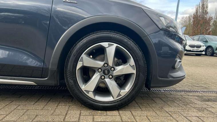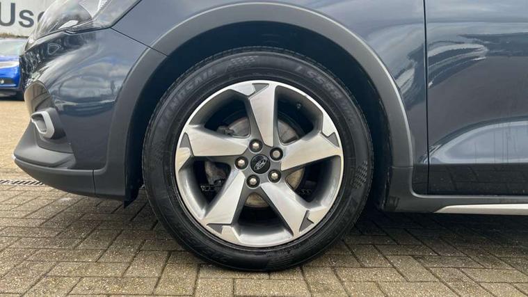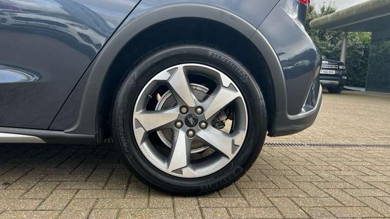 Bluetooth system, Cruise control + speed limiter, Digital clock, Easy fuel capless refuelling system, Eco mode, Ford pass connect, Ford SYNC 3 nav system with DAB radio, 8" colour touch screen, voice control, app link, Apple car play/Android auto and 4.2" TFT coloured cluster, Intelligent speed assist, Lane keeping aid with lane departure warning, PAS, Rotary gear shift dial, Selectable drive modes with slippery and trail mode, Trip computer, Raised ride height (30mm higher than standard), Aux input, 'Quickclear' heated windscreen/heated washer jets, Active branded scuff plates, Active front and rear bumper with unique upper and lower grille, Auto headlamps (on/off), Black painted roof and mirror caps, Black roof rails, Body coloured bumpers, Body coloured door handles, Electrically operated and heated door mirrors with side indicators, Electrically operated front and rear windows with one touch opening and closing, Front variable intermittent wipers with electric wash, Halogen reflector headlamps, Heated rear window, LED daytime running lamp, LED front fog lamps with cornering function, Rear privacy glass, Tailgate wash/wipe, Twin exhaust tailpipes, Unique skid plates and side rocker mouldings, 3 spoke leather trimmed steering wheel with integrated audio controls, 60/40 split back and cushion rear seats with 2 height adjustable headrests, Centre console with armrest, Cloth upholstery with blue stitching, Driver's lumbar support, Front floor mats, Gear lever gaiter ring with blue stitching, Height adjustable front headrests, Isofix child seat preparation, Manual air conditioning, Paddle shift controls, Reach + rake adjustable steering column, Rear centre headrest, ABS+Electronic Brake force Distribution, Auto hold function, Driver airbag, Electronic parking brake, Electronic stability control, Front and rear seatbelt reminder, Front inertia reel height adjustable seatbelts with pre-tensioners, Front passenger airbag, Front side airbags, Hill start assist, Passenger airbag deactivate switch, Post collision braking, Pre collision assist with autonomous emergency braking and pedestrian/cyclist detection, Side curtain airbags, Three rear inertia reel lap/diagonal seatbelts, Tyre pressure monitoring system, Keyless start with 'Ford Power' starter button, MyKey system, Remote central locking & engine immobiliser, Thatcham category 1 alarm, 17" 5 spoke foundry black machined painted finish alloy wheels, Mini steel spare wheel,