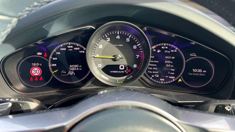 Android Auto, Apple car play, Auto start/stop function and coasting, Brake pad wear indicator, Central analogue rev counter with black dial face, power meter and pointers in acid green, Driver personalisation for climate, audio and communication, assistance systems and other customisable car systems, E-call, Energy recuperating braking system, Head up Display, High resolution 12.3-inch touchscreen display in full HD resolution, Individual mode for individual selection of vehicle drive settings, Instrument cluster with two high-resolution displays, Mobile phone preparation with Bluetooth interface for telephone and music, Porsche Communication Management (PCM) including online navigation module, mobile phone preparation, audio interfaces and voice control system, Power steering plus, Power tailgate, Vehicle electrical system recuperation, Warn and brake assist including pedestrian protection, 75 litre fuel tank, 8 Speed Tiptronic S hybrid transmission, Aluminium cylinder heads and engine block, Charge port, Direct fuel injection (DFI) with central injector position, Front and rear aluminium multi link axles, Gasoline particulate filter, Lightweight battery, Panoramic roof with fixed glass panel, Power electronics, battery manager and electrically powered auxiliary units, Sport mode, Supply cable for blue industrial electrical socket (240V, 32A, 1ph), Supply cable for domestic electrical socket (13A, 3 pin), Turbocharger, VarioCam Plus, Water cooled with thermal management, AM radio, Digital radio, Two USB charge ports in rear compartment, Two USB charging and connectivity ports in the front centre console storage compartment, Active air intake flaps, Air intake slats with inlays in satin platinum, Automatic dimming interior rear view mirror, Automatic headlight activation including welcome home functionality, Bumper system with high strength cross members and two deformation elements + Two receptacles with screw threads towing lug + onboard tool kit, E-Hybrid logo on front wings with acid green border, Electric windows + anti trap protection + one touch open/close drivers side, Electrically adjustable, folding , heated and automatically dimming exterior mirrors, aspherical on drivers side including courtesy lights, Extensive aerodynamic underbody protection, Four point signature LED daytime running lights, Front end with integrated air intakes and airblades for the side air intakes, Front light modules including position lights and direction indicators in LED light guide technology, Front windscreen wipers with two speeds, intermittent wipe and rain sensor, Fully galvanised steel / aluminium hybrid lightweight bodyshell and Aluminium bonnet, tailgate, doors, side panels, roof and front wings, Heated rear window with automatic switch off, Heated windscreen, LED High level third brake light integrated into roof spoiler, Porsche active aerodynamics (PAA) with adaptive roof spoiler, Porsche lettering integrated into rear taillight strip in satin platinum, Preparation for the roof transport system, Rear side wing doors, Rear window wiper with intermittent function and washer jet, Satin platinum model designation on tailgate with acid green surround, 2 seat bench in 2nd row, Ambient lighting, App-controlled remote parking pre-climatisation, B-pillar clothes hooks on driver and passenger's side, Charge air cooling, Double sun visors for driver and front passenger, Driver/passenger sunvisors and vanity mirrors, Elevated centre console with handles, Front and rear bottle holders in door panels, Front head restraints, Height adjustable rear headrests, Isofix fastening system for child seats on outer rear seats, LED interior light with switchoff delay function, footwell + glove compartment light, ashtray + ignition lock illumination, front + rear reading light, Manual height adjust for driver and front passenger seat belt, Particle/pollen filter with active carbon filter, Rear seat split folding design 40:20:40, Fold out centre armrest with integrated cup holder, manual fore/after adjust and backrest angle adjust, Rigid integrated and removable parcel shelf, Sideskirts in black plastic, Single front passenger seat, Storage compartments - Cooled glove compartment, front centre console, door and map pockets on front seat backrests + side luggage compartment, Three 12V power sockets - front below the glove compartment, centre console and at side of luggage compartment, Two integrated cup holders in front and rear with variable diameter, 3 point automatic seatbelts with front and outer rear seats pretensioners and front force limiter, 4 piston aluminium monobloc fixed caliper brakes at rear and internally vented brake discs, 6-piston aluminium monobloc fixed caliper brakes at front, internally vented brake discs, Active bonnet, Auto hold function, Brake discs with diameter 360 mm at front, 358 mm at rear, Curtain airbags along roof frame and side glazing from the A-pillar to the C-pillar, Distance warning, Electronic parking brake, Front passenger airbag deactivation function for front seat mounting of child seat, Front side airbags integrated into seat, Full size driver and front passenger airbags, Knee driver and passenger airbags, Manual child lock in rear doors, Mounting points on passenger seat for ISOFIX child seat mounting system, Multi-Collision braking, Porsche hill control (PHC), PTM Porsche Traction Management active all-wheel drive with an electronically variable, map-controlled multi-plate clutch, ABD and anti-slip regulation, Rollover detection for activation of curtain airbags and seat belt pretensioners, Seat belt warning system for driver and front passenger and rear seat system, Side impact protection in doors, Tyre pressure monitoring system, Vehicle stability system, Porsche stability management (PSM) including ABS, ASR, ABD, MSR and trailer stability management, Alarm system with ultrasonic interior sensor and two stage locking, Engine immobiliser with key transponder, Keyless entry