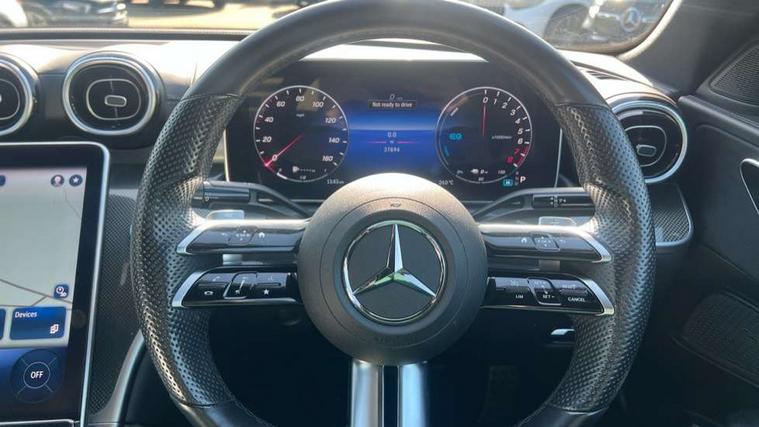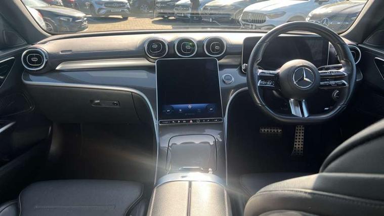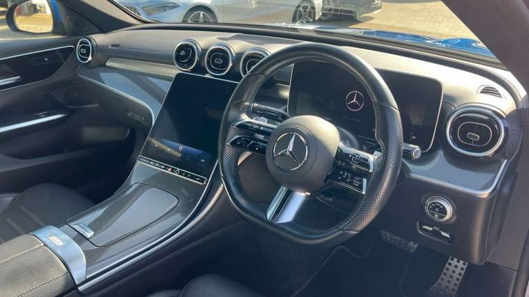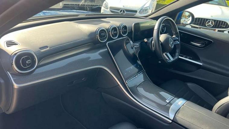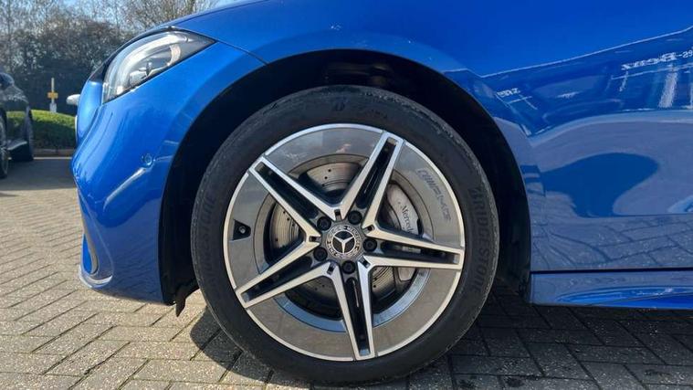 11.9" high resolution multimedia colour display, 12.3" digital instrument cluster display, Active blind spot assist, Active brake assist plus, Active lane keeping assist, AMG DYNAMIC SELECT with a choice of driving modes (Slippery, Comfort, Sport, Sport+, Individual), Attention assist, Cruise control with speedtronic variable speed limiter, E-call, Extended MBUX functions, Finger print sensor, Fluorescent jacket for driver, MBUX navigation premium, MBUX voice control activated by keywords "Hey Mercedes", Mercedes connect me, Mercedes me remote services, Outside temperature gauge, Pre-installation for digital key transfer, Remote boot release, Service indicator (ASSYST), Smartphone integration, Sports direct steer speed sensitive steering, Status display for rear seat belts in instrument cluster, 11 kW AC onboard charger, 5m charging cable for wall box/public charging stations(mode 3), 66l fuel tank with increased capacity, 9G TRONIC 9 speed automatic transmission, Agility control sports suspension and lowered by 15 mm, Petrol Particulate Filter, Sporty engine sound system, DAB Digital radio, MBUX multimedia system, Adaptive brake lights, Adaptive high beam assist, AMG body styling front apron, rear apron and side skirts, AMG front bumper with sporty air intakes and chrome elements, AMG rear bumper with high gloss chrome elements, AMG side skirts in vehicle colour, B-pillar trim in glossy black, Body coloured bumpers, Body coloured door mirrors, Chrome beltline trim, Daytime running lights, Electric windows with one touch opening/closing and obstruction sensors, Electrically adjustable and heated door mirrors, Green tinted glass, LED high performance headlamps, LED Indicators, LED tail lights, LED third brake light, Powerdomes on bonnet, Privacy glass, Radiator diamond grille with integrated Mercedes Benz star and louvre silver with chrome pins, Radio aerial integrated into rear window, Rain sensor with automatic windscreen wiper activation, Rear boot, Rear side wing doors, Side windows surround in polished aluminium, Two visible exhaust pipes integrated into rear bumper, 3 spoke flattened bottom AMG multifunction steering wheel in black nappa leather with chrome inserts and perforated leather in grip area, 40:20:40 split folding rear bench seat, AMG Leather upholstery, AMG sports seats, Audio and onboard settings control on multifunction steering wheel, Auto Mercedes-Benz child seat recognition sensor, Black air vents with silver chrome elements, Black floor mats with AMG lettering, Black roof liner, Door trim elements high gloss black with silver chrome surroundings and switches, Double cupholder in centre console, Folding rear seat backrest, Front and rear head restraints, Front centre armrest with storage compartment, Front door sills with Mercedes Benz lettering, Gearshift paddles on steering wheel, Heated front seats, Illuminated glove compartment stowage, Manually height and reach adjustable steering column, Overhead control unit in high gloss black, Rear top tether child seat ISOFIX attachment, Single front passenger seat, Sports pedals with stainless steel surfaces and rubber studs, Sunvisors with illuminated vanity mirrors, THERMATIC 2 zone automatic climate control, Interior lighting package - C Class, Mirror pack - C Class, Parking package with reversing camera - C Class, Seat comfort pack - C Class, Stowage space pack - C Class, USB package - C Class, 3 rear 3 point seatbelts, Active bonnet pedestrian safety measure which detects an impact and raises bonnet, Adaptive brake system with HOLD function and brake drying in the wet, Anti-lock braking system (ABS), Black seat belts, Brake calipers with Mercedes-Benz lettering + perforated front brake discs, Child proof door locks, Drivers knee airbag, Drivers pelvis airbag, Dual stage driver/passenger airbags, Electric parking brake, Electronic Stability Programme (ESP), Front centre airbag between driver and front passenger seats, Front side airbags, Larger brake discs on front axle, Rear passenger airbag, Rear seatbelt warning indicator, Sports braking system with perforated front disc brakes, Tyre pressure monitoring system, Warning triangle and first aid kit, Window airbags, Central locking with interior switch, automatic locking and crash sensor with emergency opening function, Chrome surround in electric key, URBAN GUARD vehicle protection (Thatcham Category 1) consisting of break-in, anti-theft alarm system (ATA), interior monitoring and tow-away protection, Artico man-made leather dashboard with contrast stitching, Centre console trim in metal weave, 18" AMG 5 spoke design aerodynamically optimised alloy wheels painted in tantalite grey with high sheen finish, Summer tyres, TIREFIT with tyre inflation compressor,