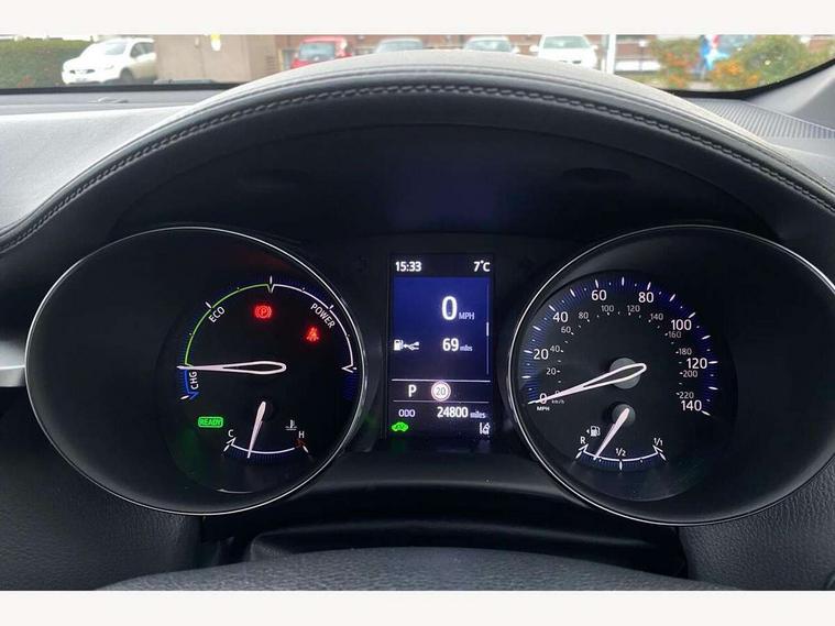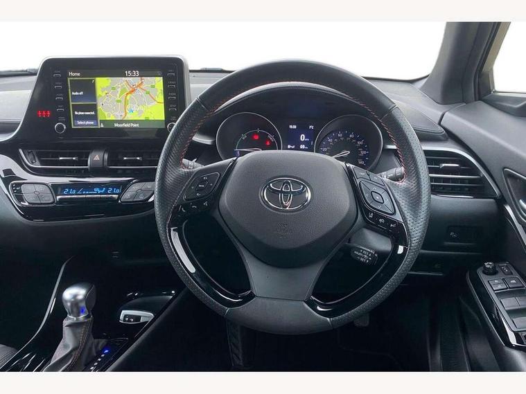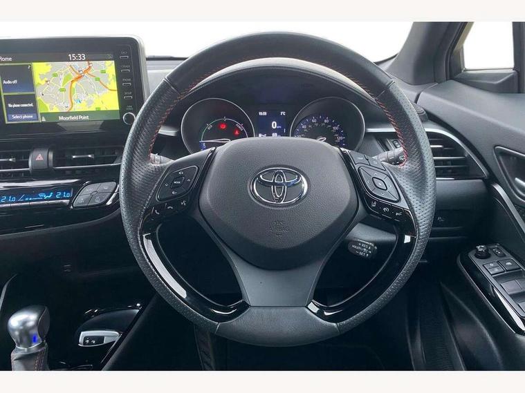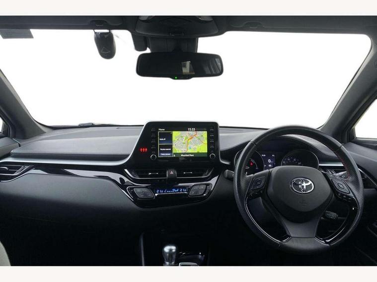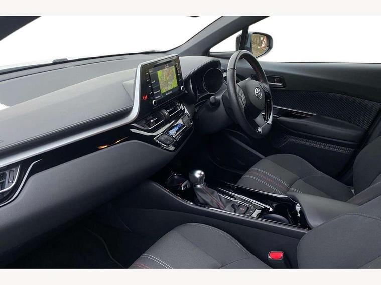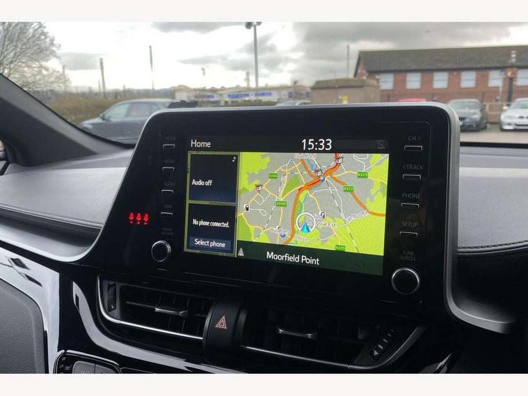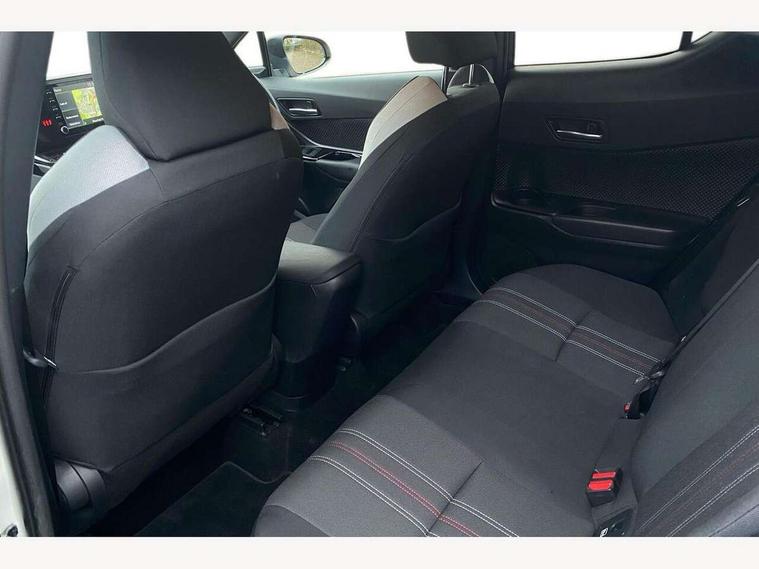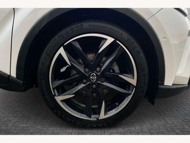 4.2" coloured TFT screen for multi-information display, Adaptive cruise control, Bluetooth connectivity, Electric power steering, Hybrid system indicator, Lane departure alert with steering control, Remote boot door release in cabin, Remote boot door release in key, Reversing camera, Road sign assist - RSA, Simple Intelligent parking assist, Touch 2 Go navigation system, Trip computer, Voice recognition, Vehicle Stability Control (VSC), 6 speakers, AM/FM radio, DAB Radio (Digital Audio Broadcasting), Toyota touch 2 multimedia system with 8" display, USB connector, Wi-fi connectivity, Adaptive front light system, Adaptive LED Headlights, Anti-jam protection on power windows, Auto high beam, Auto up and down function on all power windows, Automatic headlight levelling, Automatic headlights, Automatic headlights cut-off, Black and body coloured rear bumper, Black upper front grille, Body colour door handles, Body colour door mirrors, Body coloured front bumper, Boot door release with push button, Chrome front lower bumper, Electric heated door mirrors, Follow me home headlights, Front and rear power windows, Front spoiler lip in black, Honeycomb lower front grille, LED daytime running lights, LED fog lights, LED front light guide, LED High mounted stop light, LED rear brake lights, LED rear combination lights, Noise reduction layer on front windows and windscreen, Power adjustable door mirrors, Privacy glass, Rear sequential indicators, Rear spoiler, Rear tailgate, Rear window defogger, Rear window wiper, Shark fin antenna, UV-filter on driver and passenger windows, UV-filter on rear windows, 12v power outlet - front, 3 rear headrests, 3 spoke perforated leather steering wheel, 60/40 split folding rear seat, Adjustable rear headrests, Adjustable speed limiter switch on steering wheel, Assist grips front and centre pillar, Audio and telephone switches on steering wheel, Black front door assist grips, Blue ambient lighting on front cup holders, Blue ambient lighting on front doors, Boot light, Chrome interior door handles, Driver and front passenger personal light, Driver and front passenger Whiplash Injury Lessening seats, Driver and passenger seatback pockets, Dual zone automatic air conditioning, Fabric upholstery, Floor mats, Front cupholders, Front head restraints, Front sports seats, Glovebox with internal light, Hard tonneau cover, Heated driver and front passenger seats, Hooks for luggage holding net, Humidifying Nanoe air purifier, Illuminated entry system, Isofix attachments on outer rear seats, Leather gearshift, Light on driver sun visor, Light on passenger sun visor, Manual telescopic steering wheel, Manual tilt steering wheel, Manually height adjustable driver seat, Manually height adjustable front passenger seat, Manually reclining driver seat, Manually reclining front passenger seat, Manually sliding driver seat, Manually sliding front passenger seat, Microphone on front personal light, Mirror on driver sun visor, Mirror on passenger sun visor, Multimedia switches on steering wheel, Pollen filter, Power adjustable lumbar support on driver seat, Shopping bag hooks, Slow opening on lower glovebox, Voice recognition switch on steering wheel, Tech with parking sensor pack - C-HR, 16 Disk front wheel brake, 3x3 point rear seatbelts, ABS+EBD+Brake assist, Electronic parking brake, Front and rear seatbelt reminder, Front passenger airbag on/off switch, Hill start assist control (HAC), Pre collision system with pedestrian detection, Pre-tensioners and force limiters, Rear door child safety locks, SRS Airbags - Driver + Front passenger, front side, front and rear curtain and driver's knee airbags, Toyota safety sense, Tyre pressure monitoring system, Acoustic vehicle alert system (AVAS), Glass-breaking alarm sensors, Immobiliser, Intrusion alarm, Intrusion sensor, Motion sensor alarm, Power door locks, Power passenger window lock, Remote central locking, Black lower dashboard, Black upper dashboard, Piano black console, Silver deco line on upper dashboard, 19" Black machined alloy wheels, Tyre repair kit,