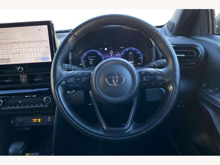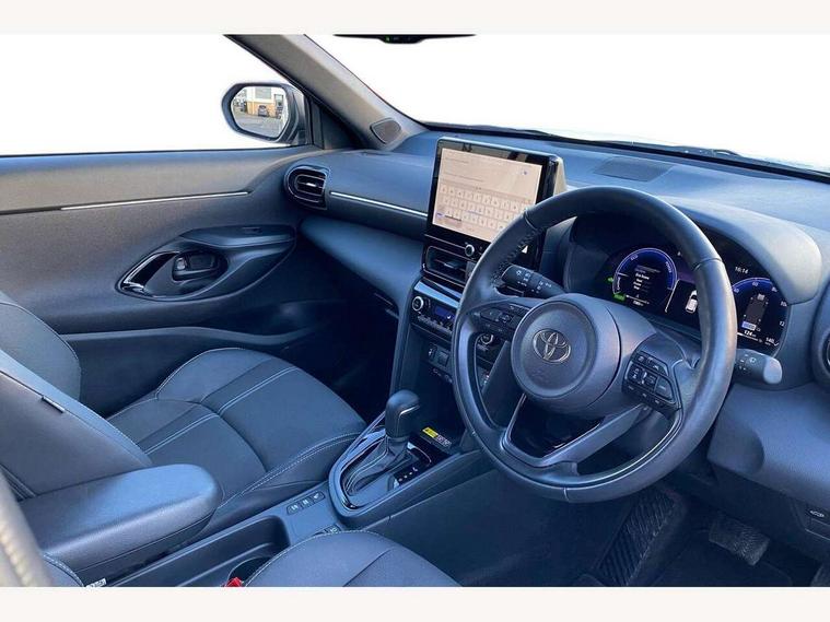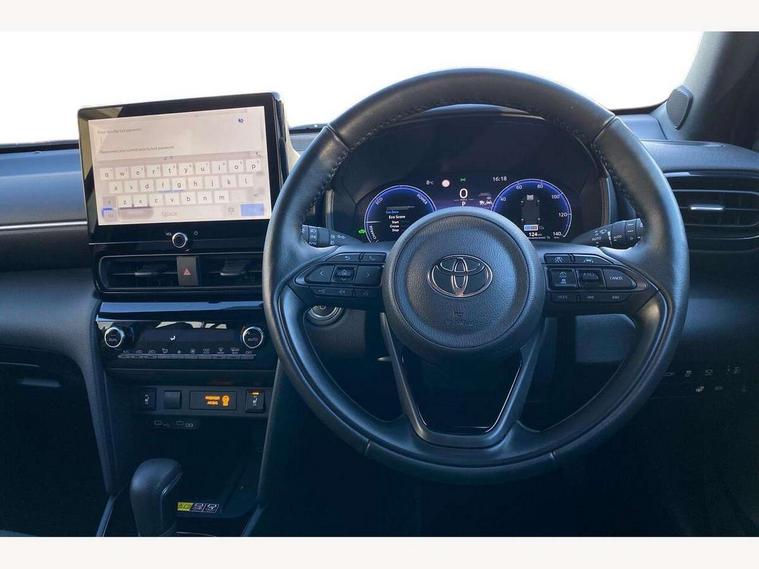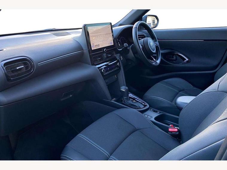 10.5" Multimedia display screen, 10.5" Toyota smart connect+ with navi multimedia system with wireless Smartphone integration incl Apple CarPlay, 360 degree panoramic view monitor, 7" Multi information display screen, Adaptive cruise control, multi info switches on steering wheel, Adjustable speed limiter, Advanced parking assist, Blind spot monitoring, Bluetooth connectivity, Color multi-information display, Digital speedometer, Digital tachometer, Drive mode selector, Driver attention alert system, Dynamic guide lines on reversing camera, eCall emergency system, Electric power steering, Emergency driving stop system, Full range intelligent adaptive cruise control, Hybrid system indicator, Intelligent front and rear parking sensors with clearance sonar and automatic braking, Intersection turn assist, Key reminder warning, Lane change assist, Lane trace assist, My T Connected services, Power tailgate, Pre-collision system enhanced with emergency steering assist, Rear cross traffic alert, Remote boot door release in cabin, Road sign assist - RSA, Safe exit assist, Tailgate, Telephone switch on steering wheel, Wireless Mobile Phone Charger, Steering assisted vehicle stability control, 6 speakers, DAB Digital radio, Front USB Type-C connector, Front USB-C device charger, Acoustic windscreen glass, Anti-jam protection on power windows, Auto dimming rear view mirror, Auto high beam [AHB] with on/off switch, Auto intermittent windscreen wipers, Automatic headlights, Automatic headlights cut-off, Automatically retractable door mirrors, Black door moulding, Black lower front grille, Black protection moulding on side doors, Black roof rails, Black wheel arch mouldings, Body colour door handles, Body colour front bumper, Body colour rear bumper, Electric adjustable heated door mirrors, Follow me home headlights, Front and rear electric windows with auto up/down function, Gloss black upper front grille, Headlight cut off reminder, Indicators integrated on door mirrors, Intermittent rear wiper, Kick activated power back door, LED 3rd brake light, LED daytime running lights guide, LED front fog lights, LED front light guide, LED Indicators, LED projector headlights, LED rear lights with sequential indicators, Manual headlight levelling, Meshed shape upper front grille, Noise reduction layer on windscreen, Pre wiring for towing hook, Privacy glass, Rain sensor, Rear roof spoiler, Rear side wing doors, Rear window defogger, Shark fin antenna, 12v power outlet - front, 12V power point in boot, 2x Rear coat hooks, 3 seat bench in 2nd row, 3 spoke leather steering wheel, 40/60 split deckboard, 40:20:40 split folding rear bench seat, Adjustable rear headrests, Adjustable speed limiter switch on steering wheel, Boot light, Central armrest, Driver and front passenger personal lights, Driver and front passenger Whiplash injury Lesseing seats, Driver and passenger seatback pockets, Dual zone automatic air conditioning, Fabric door trim, Front console box, Front cup holders, Front door pockets, Front head restraints, Front sport seats, Front/rear assist grips, Gear shift indicator, Grey roof lining, Heated driver and passenger seats, Heated steering wheel, Height adjustable driver's seat, Height adjustable front passenger seat, Hooks for luggage holding belts, ISOFIX child restraint system, Lane departure alert switch on steering control, Leather gearshift, LED centre room light, Light on driver and passenger sun visor, Manual telescopic and tilting steering wheel, Mirror on driver and passenger sun visor, Nanoe-X air purifier, Partial synthetic leather upholstery, Pollen air filter, Power adjustable lumbar support on driver seat, Rear cup holders, Rear door pockets, Rear head restraints, Remote air-conditioning system, Single compartment glovebox, Single front passenger seat, Soft tonneau cover, Storage box under boot floor, Voice recognition switch on steering wheel, White ambient lighting in centre console, White ambient lighting in footwell, White ambient lighting on front doors, Yaris cross floor mats, Tech pack - Yaris Cross, 3x3 point rear seat belts, ABS+EBD+Brake assist, Downhill Assist Control (DAC), Driver and passenger central airbags, Driver and passenger front airbags, Driver and passenger side airbags, Electronic parking brake, Emergency brake light system (EBS), Front seat belt reminder, Hill start assist control (HAC), Passenger airbag on/off switch, Pre-collision system with pedestrian and cyclist detection, Rear door child safety locks, Rear passenger side airbags, Rear seat belt reminder, Traction control, Tyre pressure warning system, Immobiliser, Intrusion alarm, Keyless smart entry with push button start, Power door locks, Power passenger window lock, Remote door lock, Gloss black side air vent surrounds, Tyre repair kit,