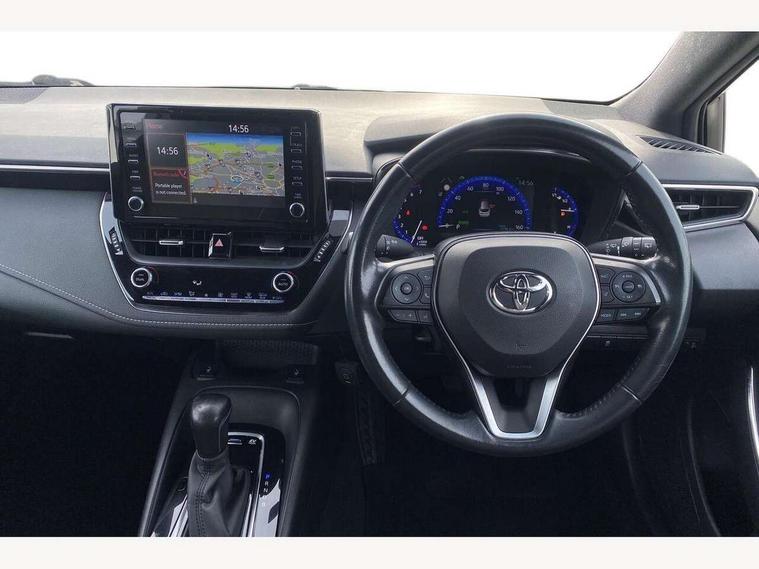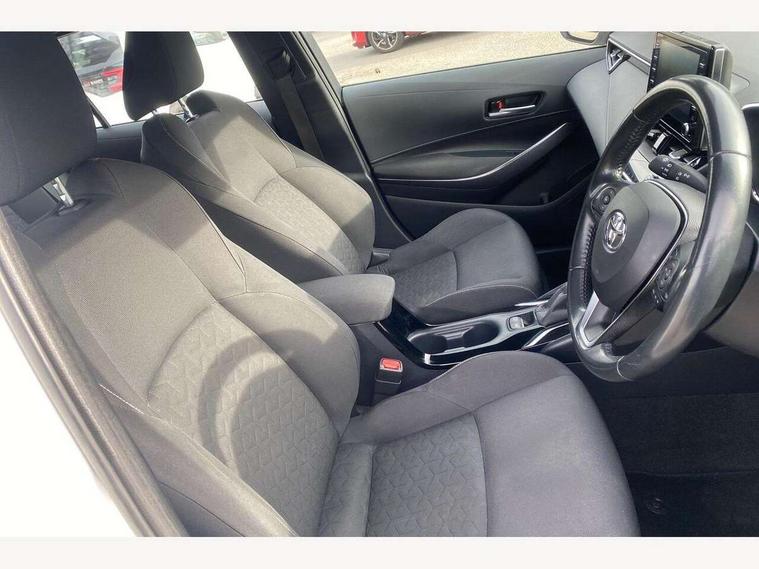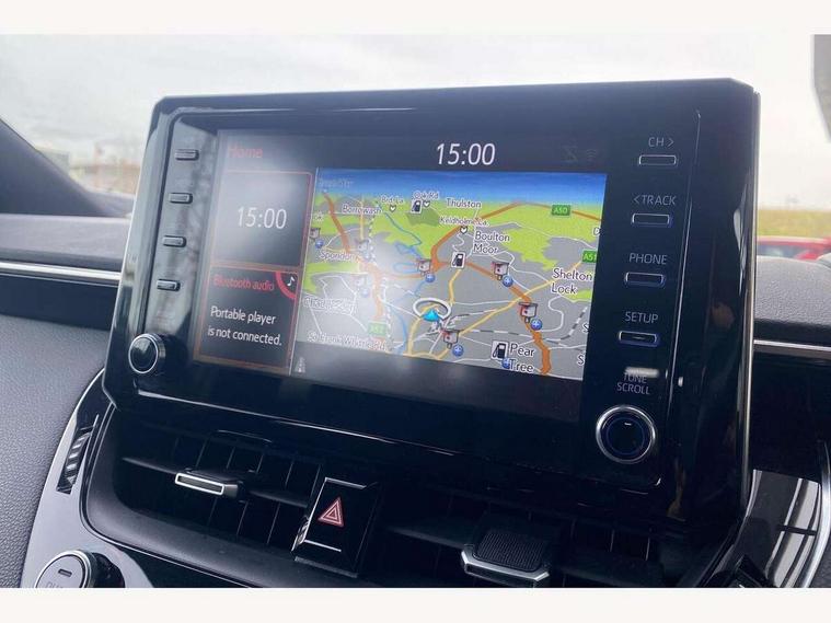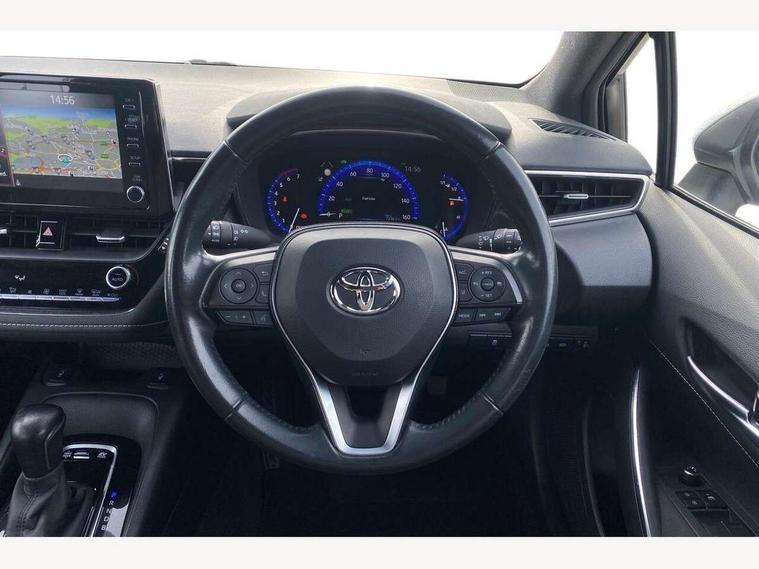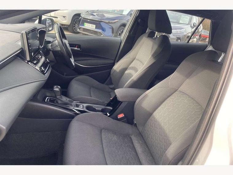 7" Multi information display screen, Bluetooth telephone connectivity, Connected car functionality upgrade, tracker, remote status and e-care, Dynamic radar cruise control (with RSA) including switch on steering wheel, E-call, Electrically assisted power steering, EV drive indicator, Intelligent park assist, Lane Departure Alert (LDA) switch on steering wheel, Memory on adjustable speed limiter, Push button start, Reversing camera, Smartphone integration with Apple CarPlay and Android auto, Gasoline particulate filter, Vehicle Stability Control (VSC), 6 speakers, 8" Touchscreen with MM19 Multimedia system and voice recognition, AM/FM radio, DAB Digital radio, Toyota touch 2 with go navigation system, USB and Aux in connectors + 12V front outlet, USB charging port in centre storage box, Aluminium roof rails, Anti-jam protection on power windows, Auto up and down function on all power windows, Automatic headlights with high beam assist, Black metallic surround on lower front grille, Black toyota logo in front, Body colour rear spoiler, Body coloured bumpers, Body coloured door mirrors, Body coloured outside door handles, Follow me home headlights, LED daytime running lights, LED front fog lights, LED Headlights, LED High mounted stop light, Manual day/night rear view mirror, Noise reduction layer on front windows, Power adjustable heated door mirrors, Power front windows, Power rear windows, Rear window defogger, Rear window wiper, Shark fin antenna, Time adjustment on intermittent wiper, Turning signal integrated indicators in door mirrors, Unique lower skirt, Unique side rocker with black insert, UV-filter on driver and passenger windows, 12v power outlet - luggage side, 3 rear headrests, 3 spoke leather steering wheel + gear knob, 60/40 split folding rear seat, Adjustable speed limiter switch on steering wheel, Audio, multimedia and telephone switches on steering wheel, Boot light, Boot underfloor storage, Clean air filter, Driver and front passenger personal light, Driver and passenger assist grip, Driver and passenger sun visor with mirror and light, Dual sided deck board in boot, Dual zone automatic air conditioning with ECO mode switch, Fabric armrests, Front and rear cup and bottle holders, Front and rear door pockets, Front head restraints, Heated driver and front passenger seats, Illuminated entry system in room lamp, ISOFIX seat fixing (2 fixings on rear outer seats), Leather gear shift with satin chrome on gear shift console, Manual height adjustable for driver and front passenger seat, Passenger seat back pocket, Pollen filter, Power adjustable lumbar support on driver seat, Power window switches with satin chrome inserts, Quilted fabric upholstery with grey stitches seats, Rear armrest with 2 cupholders, Rear passenger air vents, Rear passenger coat hooks (2), Rear passenger personal lights, Retractable tonneau cover with luggage partition net, Satin chrome inside door handles, Shopping bag hooks in luggage compartment, Side storage in boot, Sliding armrest on centre console box, Slow opening glovebox with lights, Tilt/telescopic steering column, Tonneau cover with under floor storage, Voice recognition switch on steering wheel, Whiplash Injury Lessening (WIL) feature (active headrest) for seats, Parking pack - Corolla, Toyota safety sense 2 pack - Corolla, 3x3 point rear seatbelts, Adjustable driver and front passenger seat belt extender to top anchor point, Anti lock braking system + Electronic brake force distribution, Brake assist function, Downhill Assist Control (DAC), Electronic parking brake, Emergency brake light signal (EBS), Front passenger airbag on/off switch, Front seatbelt reminder, HAC - Hill start assist control, Rear seat belt reminder, Seatbelt pretensioners and force limiters, Supplemental restraint system (SRS) 7 airbags - dual driver, dual side curtain, side impact and driver knee airbags, Traction control, Tyre pressure warning system, Acoustic vehicle alert system (AVAS), Alarm with motion sensor and immobilizer, Remote central locking + deadlocks, Smart entry, Satin chrome dash trim, Soft touch texture on upper dashboard, Stitching on lower dashboard, Space saver spare wheel, Unique wheel finish with red wheel cap,