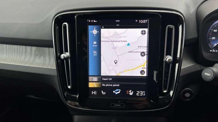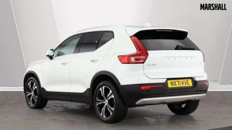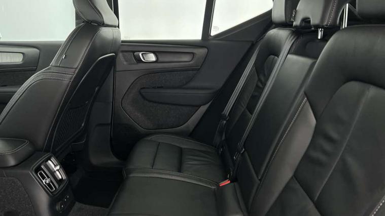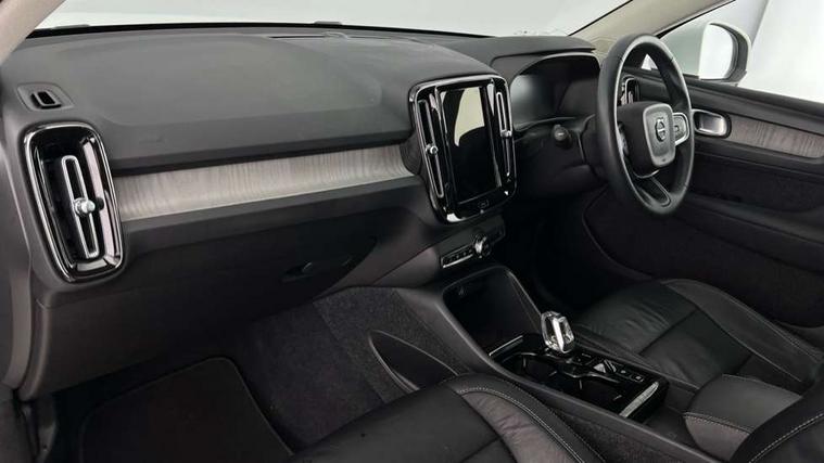 12.3" Active TFT crystal driver's instrument display, 9" centre console portrait touch screen, Adjustable steering wheel force, Bluetooth hands free telephone kit, Drive mode selector, E-call, Lane keep assist with driver alert control, Oncoming Lane Mitigation, Power operated tailgate, Sensus navigation with European mapping and traffic information, Speed limiter, Speed sensitive steering, Voice activated control for key functions, Volvo on call, 7m 10amp charge cable with 3 pin plug and 7m 1 phase 16amp type 2/mode 3 charge cable, Dynamic chassis, Electric front axle drive, Recharging port located in nearside front wing, DAB Digital radio, Low speed exterior sound speaker, Steering wheel mounted remote controls, Adaptive brake lights with high level LED brake lights, Auto dimming interior mirror, Automatic headlamp levelling, Chrome window surround, Colour coordinated auto folding and heated power door mirrors, Front aluminium tread plates, Front and rear electric windows, High gloss black front grille with chrome inserts, High gloss black sensus surround deco, High Gloss silver front and rear skid plate, Home safe and approach lighting, Integrated roof rails in silver, LED Headlights + Active high beam incorporating daytime running lights, Rain sensor with automatic windscreen wiper activation, Rear side wing doors, Rear wiper, Roof antenna, Roof spoiler, Visible VIN plate, 12V socket in front tunnel console and luggage compartment, 2 zone electronic climate control and rear air vent, 3 seat bench in 2nd row, 3 Spoke tailored steering wheel with chrome trim, 60/40 versatile split folding rear seat, A-pillar parking ticket holder, Bright metal luggage threshold, Centre console cupholders and storage, Floor mats, Front footwell illumination, Front headrests, Front reading light and theatre lighting, Glovebox bag hook, Height/reach adjustable steering column, Height/tilt adjustable driver's seat, High gloss centre tunnel deco, Illuminated glovebox, Illuminated luggage compartment, Illuminated vanity mirrors, Isofix attachments on outer rear seats, Leather faced upholstery, Load protection net, Multi directional lumbar support, Orrefors Crystal gear lever knob, Power driver seat with memory + exterior mirrors memory, Rear armrest / integral cup holders / storage tray, Rear coat hook, Single front passenger seat, Underfloor cargo storage, Vanity mirror with ticket holder, Park assist pack - XC40, 3x3 point rear seatbelts, City safety includes pedestrian, cyclist and large animal detection and front collision warning with full auto brake, Drivers knee airbag, Dual stage driver/passenger airbags, Electronic parking brake with auto hold, First aid kit, Front and outer rear seatbelt reminder and pretensioners, Front seats SIPS airbags, Hill descent control, Hill start assist, Inflatable curtain, Passenger airbag cut-off device, Road sign information display, Run off Road Mitigation, Run off Road Protection, SIPS (Side Impact Protection System), Slippery road and hazard light alert, Stability and Traction Control with Spin control, Engine Drag Control and Corner Traction Control, Tyre pressure monitoring system, Vehicle deceleration control with Anti-lock Brake System, Electronic Brake Distribution and Emergency Brake Assist, Warning triangle, WHIPS whiplash protection system - front, Anti-theft alarm including immobiliser/volume sensor + level sensor, Care key with user defined top speed, Key integrated remote control central locking + fuel flap with deadlocking system and auto open/close power windows, Locking wheel nuts, Private locking for tailgate, Driftwood inlays,