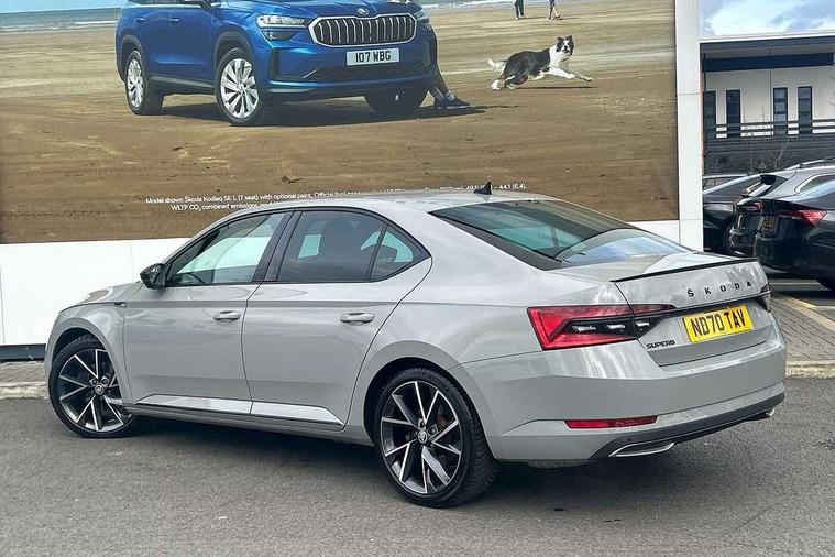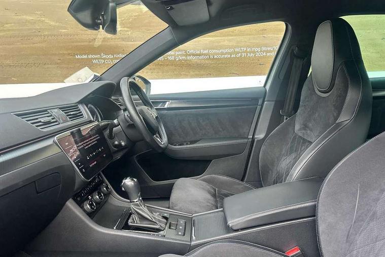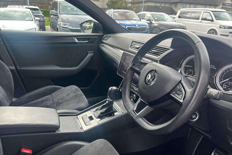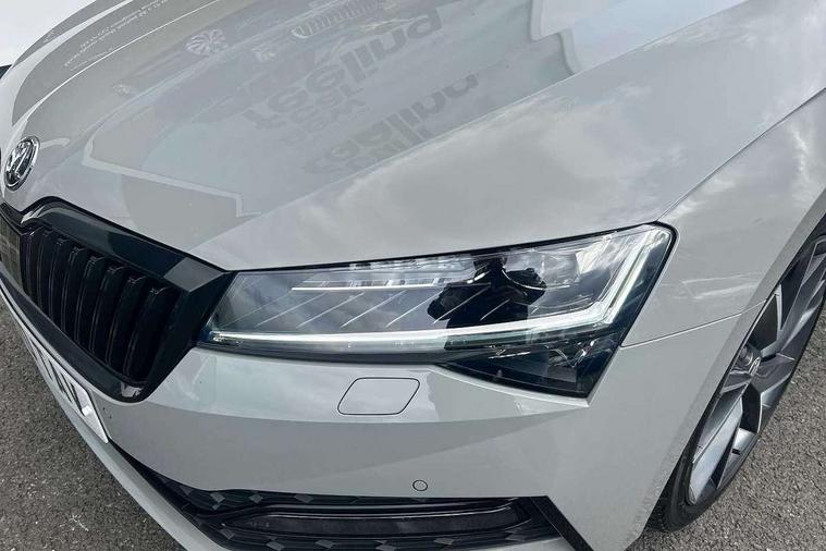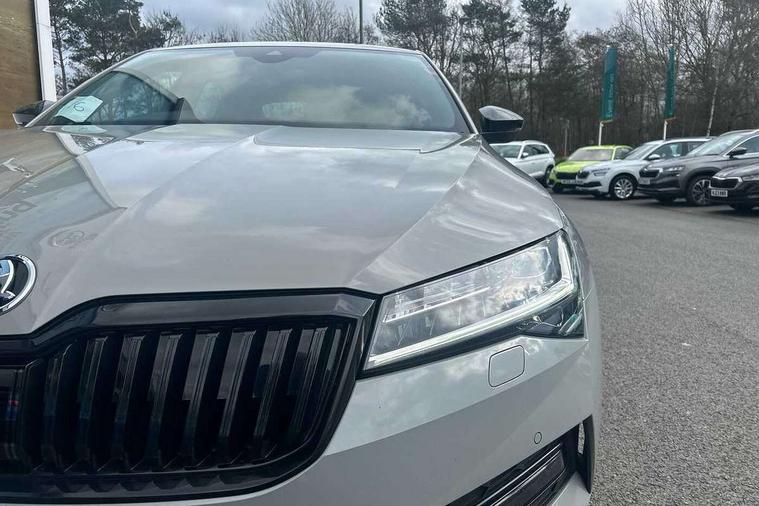 Bluetooth system, CareConnect and Emergency Call, Columbus HDD satellite 3D map navigation with 9.2" colour touch screen, web radio, integrated Wi-Fi, SmartLink+ with Apple CarPlay and Android Auto, Driver fatigue sensor, Front assist with pedestrian protection, Progressive dynamic steering, Stop/start engine system and energy recovery, Voice control system, XDS+, 2 USB ports, Bolero radio with 8" touchscreen display, DAB Digital radio, Aero front windscreen wipers with intermittent function, Auto dimming rear view mirror, Black rear badge, Body colour door handles, Cornering front fog lights, Electrically adjustable heated and folding door mirrors with memory function, Front and rear electric windows, Full matrix LED headlights with AFS LED DRL integrated with headlight washer LED rear lights(High function), dynamic indicators and lighting animation, Gloss black exterior door mirrors with sports styling including front grill, side strip and window surrounds, Gloss black grille surround with gloss black rib elements, Gloss black rear spoiler, Gloss black strip between rear lights, Light assistant (coming/leaving home/tunnel light), Privacy glass, Rain sensor, Rear exhaust diffuser styling elements, Sportline badging, 12v power point in centre console, Alcantara/leather upholstery with silver diamond stitching sports seats, Black roof headlining, Carbon optic interior elements, Electric auxiliary air heater, Front armrest with storage box, Height adjustable front and rear head restraints, Ice scraper, Illuminated and cooled glovebox, Interior lights with control switches, Isofix child seat fittings on outer rear seats, One umbrella compartments in driver door with one umbrella in drivers door, Overhead glasses storage compartment, Rear centre armrest with cupholders, Removable parcel shelf, Split folding rear seats, Textile floor mat set, Ticket holder on A Pillar, LED package plus - Superb, 3 rear seatbelts, 7 airbags - Front, front side, curtain, driver's knee airbag with front passenger deactivation switch, Driver and passenger seatbelts with warning light, Electronic parking brake, ESC including ABS, EBV, MSR, ASR, EDS, HBA, DSR, RBS, CBC, multi-collision brake (MKB) and Auto hold, Hill start assist, Tyre pressure monitor, Alarm with interior monitoring tilt sensor and back up horn, Electronic engine immobiliser, Keyless entry and start/stop, Remote central locking with SAFE system, Third remote key,