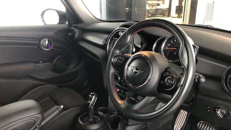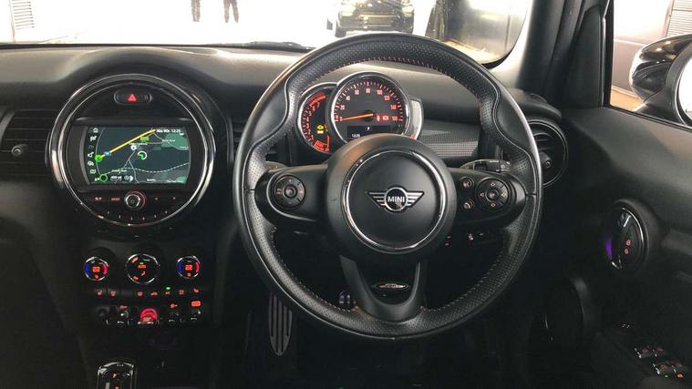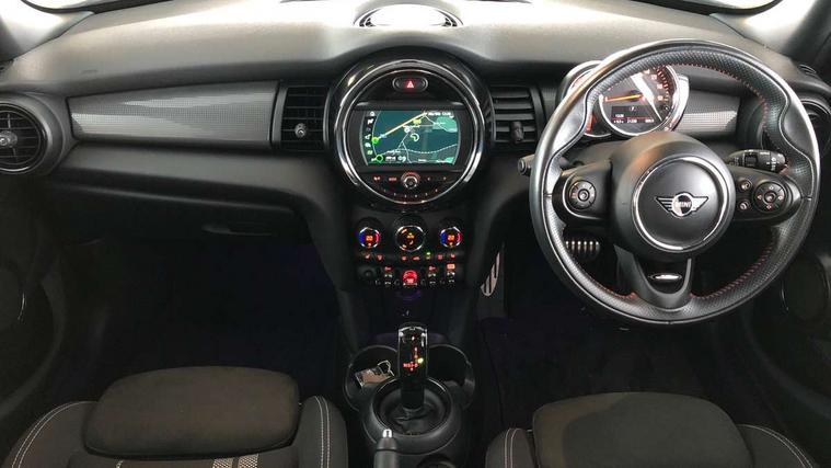 Automatic start/stop function with brake energy recuperation, Compatible mobile phone bluetooth with audio streaming, Electro-mechanical speed dependant steering assistance, Instrument cluster, MINI Driving Modes - centre toggle switch to control driving setting (sport, mid and green), Mini E-call, MINI TeleServices, On board computer, Service interval indicator, Double Vanos system, Fully variable valve control, Gear change indicator display, High precision injection, Performance Control, Steptronic transmission with double clutch, 6.5" touchscreen with LED ring, FM tuner and DAB digital radio, Automatic headlight activation switch, Body colour fuel filler cap, Chrome border high gloss black slats radiator grille, Dynamic brake lights, Electric front+rear windows, Heated rear window, Heated windscreen washer jets, John Cooper Works - aerodynamic kit (front and rear apron, spoiler), front and rear sport bumpers and part-painted side sills with door sill finishers, John Cooper Works rear spoiler, LED headlight with closed ring and daytime driving lights, Left exhaust tailpipe with chrome finisher, Metal door sill strips with MINI imprint, Model logo Cooper on right of tailgate, Rain sensor window wipers, Rear fog lights, Rear LED lights with union jack design, Rear window wiper, Side scuttle panel with integrated indicator, Sun/heat protection glass, White indicator lenses, 12V Accessory socket in centre console, 4 lashing eyes in luggage compartment, 60/40 split folding rear seat, Carbon Black colour line, knee roll and door armrests, Chrome interior highlights, Cupholders, Front and rear head restraints, Front and rear isofix with front passenger airbag deactivation, Glove compartment, Height and length steering column adjustment, Interior lighting with 12 basic colours selectable via toggle switch in roof, John Cooper Works leather steering wheel with contrasting stitching in Chilli Red with John Cooper Works logo, John Cooper Works Logo in seat, Leather gearshift lever and handbrake gaiters, LED reading lights, vanity mirror lights, front foot well light and spotlight on front seats, Manual air conditioning, Mechanical seat adjustment, driver seat height adjust, forward/back and front seats backrest, Mini logo projection on floor from drivers exterior mirror, Multifunction steering wheel, Storage compartments in doors, Sunvisors with vanity mirrors, 3 point seatbelts on all five seats, 6 Airbags - front, side, head and seat belt tensioners, Anti-lock braking system (ABS), DSC - Dynamic Stability Control, Front and rear disc brakes, Hill start assist, Single tone fanfare horn, Tyre pressure monitoring system, Alarm system with tilt sensor, monitoring doors, bonnet interior and tailgate, Electronic vehicle immobiliser, Start/stop toggle with keyless go, Tool kit,