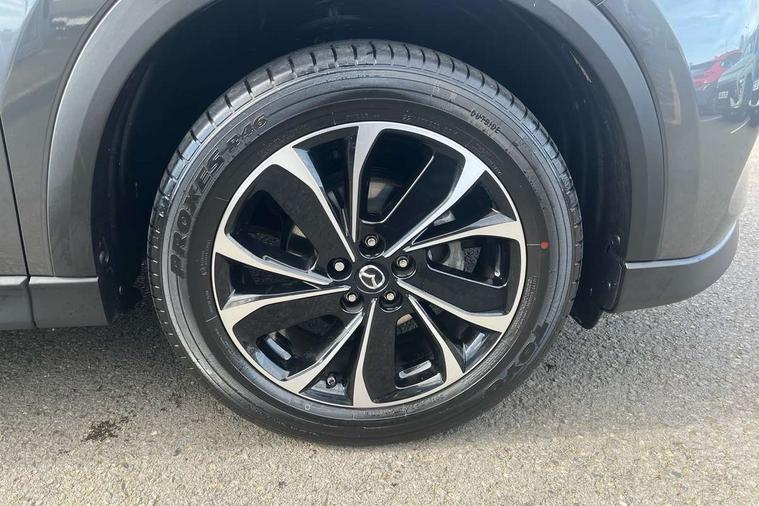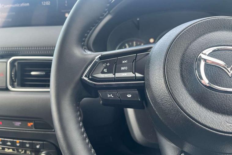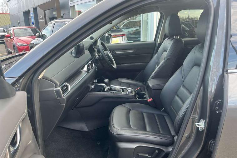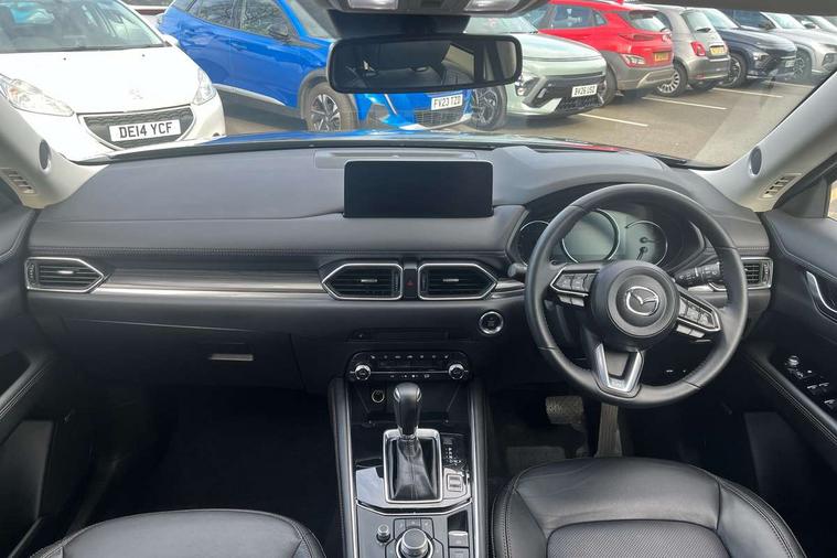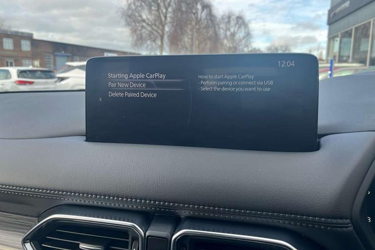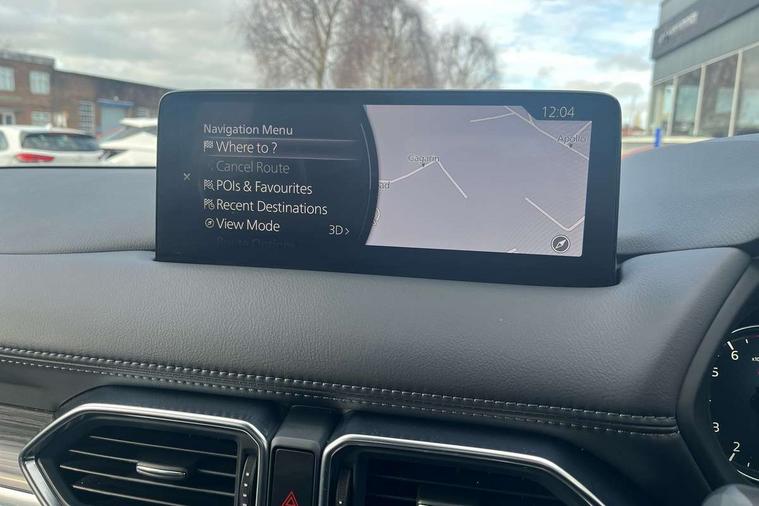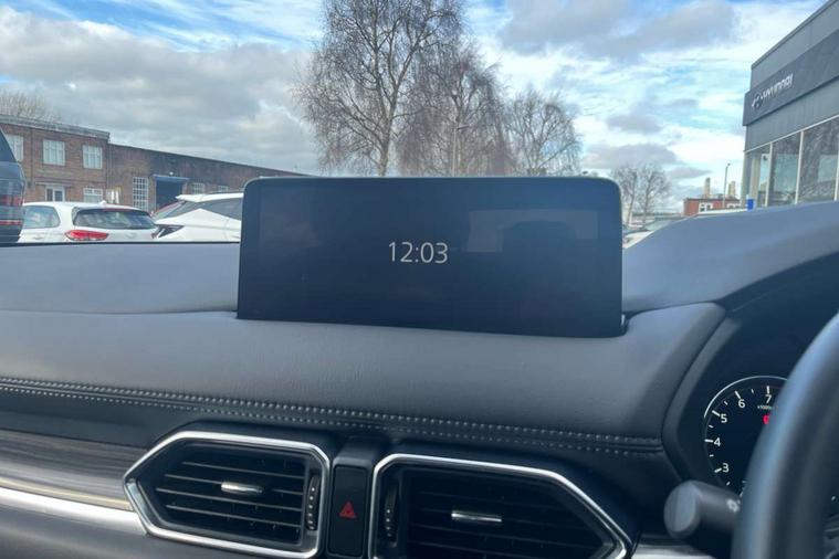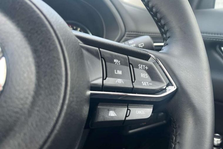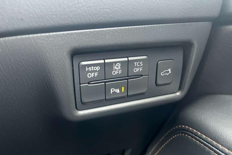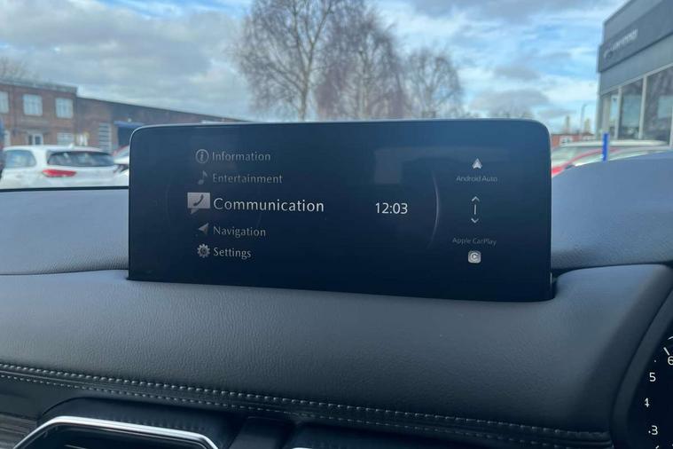 10.25" display with Mazda Connect infotainment, 7" colour TFT display, Advanced blind spot monitoring, Bluetooth connectivity with voice control, Collision prevention assist, Connected services, Cruising Traffic Support, Drive mode selector, Electric power steering, Emergency stop signalling system, Engine start/stop button, Forward collision warning, Front and rear parking sensors, Integrated navigation system, Intelligent speed assist, Lane departure warning system, Lane keep assist, Power liftgate, Qi wireless phone charging, Radar cruise control with Stop and Go, Rear cross traffic alert, Reversing camera, Service indicator, Traffic sign recognition (TSR), Trip computer, Windscreen projected colour active driving display (HUD) with memory, Wireless apple car play/android Auto, Cylinder Deactivation, i-stop, AM/FM radio, Bluetooth audio streaming, Bose premium sound system with 10 speakers, DAB Digital radio, Multimedia Commander including separate volume dial, Steering wheel mounted audio controls, Adaptive front lighting system, Auto dimming rear view mirror, Automatic headlights, Black inlay dashboard panel, Body colour door mirrors, Body colour roof spoiler, Body coloured front and rear black lower bumper mouldings, Coming/leaving home lighting function, Door mirror integrated indicators, Dual chrome tailpipes, Dusk sensitive headlamps, Electric front/rear windows with one touch auto up/down, Front grille in gloss black finish, Front grille in gloss black finish with chrome signature wing, Gloss black B and C pillars garnish, High beam assist, Intermittent rear wash/wipe, LED auto levelling, LED daytime running lights, LED front fog lights, LED Headlights, LED third brake light, Power folding and heated door mirrors, Power tilt/slide sunroof, Privacy glass (rear side windows only), Rain sensing front wipers, Rear side wing doors, Satin black side mouldings, Scuff plates, Shark fin antenna, Signature LED rear combination lights, Variable intermittent front wash/wipe, Vinyl with wood grain metal inlay door trim panel, Windscreen wiper de-icer, 12v electrical power outlet, 3 seat bench in 2nd row, 3 stage heated front seats, 40:20:40 Karakuri fold-flat seat system, 6 way electric adjustable passenger seat, 8 way electric driver seat with lumbar support + memory, Cargo room flat floor board with waterproof undertray, Driver seat power slide, recline and height adjustment, Driver, Front passenger and two rear grab handles with coat hooks, Driver/passenger front seatback pockets, Driver/passenger sunvisors + illuminated vanity mirrors (drivers with ticket holder), Dual zone climate control, Folding centre armrest with 2 cup holders, Front and rear door pockets, Front centre storage with two cupholders, Front passenger seat power slide, recline and height adjustment, Heated steering wheel, Humidity sensor, Illuminated glovebox, Interior dome light with integral spotlight, ISOFIX child seat anchorage points attached on outer rear seats, Karakuri tonneau cover, Leather upholstery, Leather wrapped steering wheel and gear knob, Light roof lining, Luggage compartment LED lighting, Luggage compartment power outlet, Paddle shifts, Rear air vents, Rear headrests, Rear seat recline, Roof mounted sunglasses holder, Single front passenger seat, Three height adjustable head restraints, Tilt/height adjustable steering wheel, USB Connectivity (2x front Type-C, 2x rear Type-B), White interior LED illumination lighting, 3 point front seatbelts with pre-tensioners, 3 rear 3 point seatbelts, ABS, Advanced Smart City Brake Support - SCBS, Child locks on rear doors, Driver and front passenger side airbags, DSTC-Dynamic Stability and Traction Control, Dual front airbags, Electronic brake force distribution, Electronic parking brake with auto hold, ESP, Front and rear curtain airbags, Front passenger airbag deactivation, G-Vectoring control, Hill hold assist, Seatbelt reminder front and rear, Single stage passenger airbags, Smart brake support with forward obstruction warning, Tyre pressure monitoring system, Automatic door locking when moving off, Deadlock, Immobiliser, Power door locks, Remote central locking, Smart keyless entry, Thatcham Cat.1 alarm, 19" diamond cut black alloy wheels, Tyre repair kit,