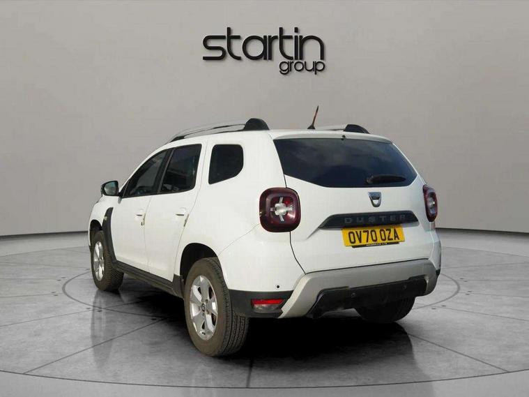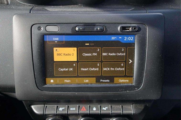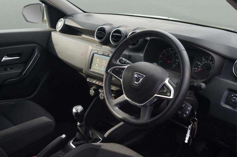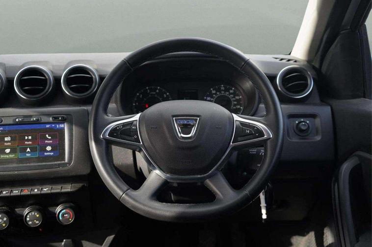 Bluetooth connectivity, Cruise control, Eco mode, Electric power assisted steering, MediaNav Evolution 7" touchscreen multimedia system with satellite navigation, Apple car play and Android auto, RDS with TMC, siri voice recognition, On board computer, odometer, trip computer, average fuel consumption, average speed, service indicator, outside temperature gauge, Rear parking camera, Rear parking sensors, Rev counter, Speed limiter, Stop/start system, Aux-in socket, USB connection for MP3 players, 3 speed windscreen wipers, Black number plate surround, Black side sills, Black/satin chrome tailgate trim with Duster inscription in black background and lettering, Body coloured door handles, Body coloured front and rear upper section bumpers, Chrome front grille, Dark glass on lateral rear windows, Dark metal door mirrors in grey, Daytime running lights, Double optic headlights, Dusk sensor, Electric adjustable/heated door mirrors, Electric front windows, Electric rear windows, Front and rear black lower section bumpers, Front door sill protection strip, Front fog lights, Heated rear window, High level third rear brake light, LED automatically switched on - In main headlights, Rear wash/wipe, Satin chrome front and rear skid plates, Satin chrome longitudinal roof bars, 3 rear height adjustable headrests, 4 speed heating and ventilation with air recirculation, 60/40 split folding rear seat, Boot light, Driver seat lumbar adjustment, Fabric decorative insert on door panels, Front passenger reading light, Front seat armrests, Front under seat storage, Gear shift indicator, Glovebox light, Graphite cloth upholstery, Height adjustable driver seat, Height adjustable front headrests, Height adjustable steering wheel, Isofix points for child seats in both outer rear seats, Manual air conditioning, Map pocket on front seat backs, Matt black front door handles, Matt black rear door handles, Passenger sunvisor with vanity mirror, Rear passenger reading light, Satin chrome gear lever cap insert, Satin chrome lower steering wheel insert, Soft feel steering wheel, 3x3 point rear seatbelts, ABS and Emergency brake assist, ASR traction control with Electronic stability control, Child locks on rear doors, Door open visual and audible warning, Driver airbag, Driver and passenger seatbelt not fastened - visual and audible warning, Front passenger airbag deactivation, Front seatbelt pretensioners, Front side airbags, Height adjustable front seatbelts, Tyre pressure monitor, Remote central locking, Thatcham approved engine immobiliser, Dark carbon central console surround, Matt black central console fascia, Piano black decorative insert on door panels, Satin chrome air vent surround, Satin chrome instrument dial surrounds, 16" Cyclade aluminium Alloy wheels,