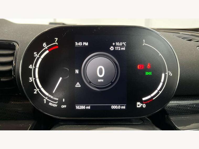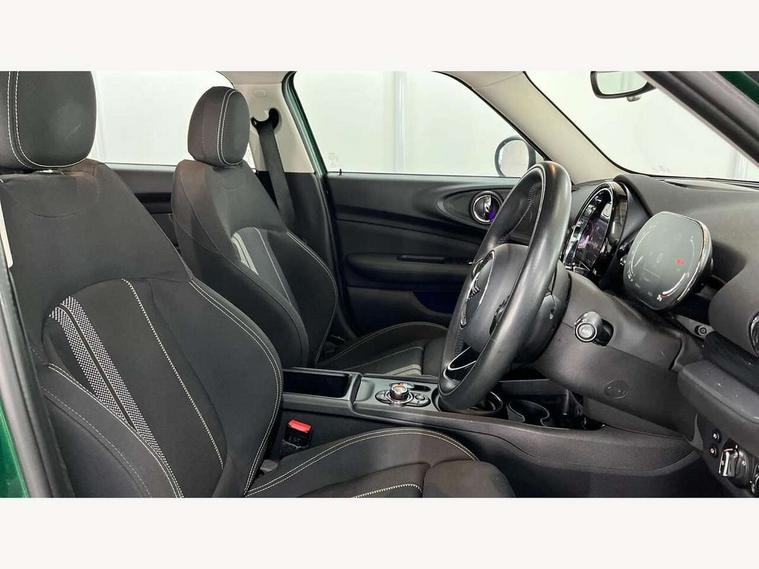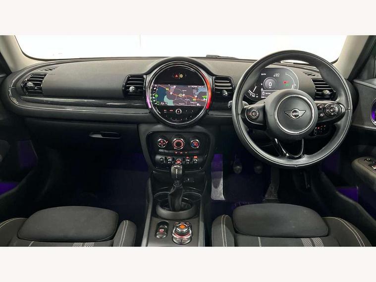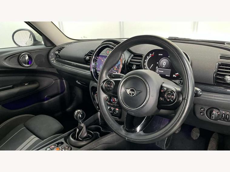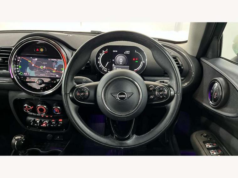 Active Guard incl speed limiting and lane departure functions with auto steering, and front collision warning with brake intervention, Automatic start/stop function with brake energy recuperation, Compatible mobile phone bluetooth with audio streaming, Digital cockpit, Electro-mechanical speed dependant steering assistance, Instrument cluster, Mini E-call, MINI TeleServices, On board computer, 6 Speed manual transmission including gear change indicator display, Double Vanos system, Fully variable valve control, High precision injection, Performance Control, FM tuner and DAB digital radio, Bonnet scoop, Chrome border honeycomb structure radiator grille with S badge, Chrome fuel filler cap, Dynamic brake lights, Electric windows, Heated rear window, Heated windscreen washer jets, LED headlights with closed ring as daytime driving lights, LED rear light with union jack design, Metal door sill strips with Cooper S imprint, Model logo, Model logo on rear doors, Rain sensor with auto headlights, Rear fog lights, Rear window wiper, Side scuttle panel with integrated indicator, Split rear doors, Sun/heat protection glass, Twin exhaust tailpipe, White indicator lenses, 12V Accessory socket in centre console, 3 spoke sport leather steering wheel + limiter function and audio controls, 360L luggage compartment capacity, 4 lashing eyes in luggage compartment, 60/40 split folding rear seat, Chrome interior highlights, Cupholders, English handbook, Front and rear head restraints, Glove compartment, Headliner with grab handles and clothes hooks, Height and length steering column adjustment, Interior lighting with 12 basic colours selectable via toggle switch in roof, Isofix rear child seat preparation, Leather gearshift lever and handbrake gaiters, LED reading lights, vanity mirror lights, front foot well light and spotlight on front seats, Manual air conditioning, Mechanical seat adjustment, driver seat height adjust, forward/back and front seats backrest, Multifunction steering wheel, Storage compartments in doors, Sunvisors with vanity mirrors, Toolkit, Excitement pack - Clubman, Navigation pack - Clubman, 2 tone horn, 3 point seatbelts on all seats, 6 Airbags - front, side, head and seat belt tensioners, Anti-lock braking system (ABS), DSC - Dynamic Stability Control, Electronic handbrake, Front and rear disc brakes, Tyre pressure monitoring system, Alarm system with tilt sensor, monitoring doors, bonnet interior and tailgate, Auto drive away locking, Deadlocking function, Electronic vehicle immobiliser, Locking wheel bolts, Start/stop toggle with keyless go, Tyre repair kit,