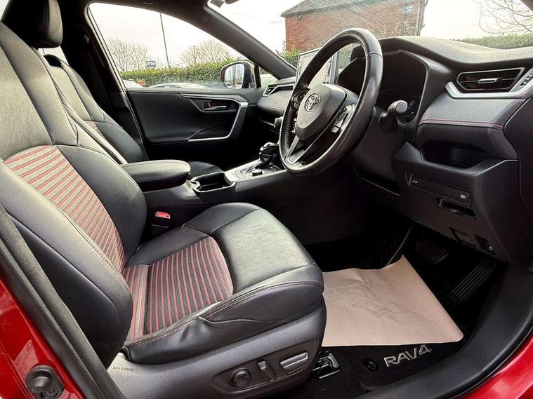 7" Coloured TFT multi informational display, Analog tachometer, Apple car play and Android auto, Blind spot monitoring with rear cross traffic alert, Bluetooth system, Cyclist Detection, Day and night time pedestrian detection, Digital speedometer, Drive mode selector, Driver attention alert system, eCall emergency call system, ECO-driving indicator, Electric power steering, EV audible alert, Front parking sensors, Hybrid system indicator, Intelligent adaptive cruise control, Lane departure alert with steering control, Lane trace assist, Lights on warning, Memory on adjustable speed limiter, My T Connected services, Power boot opening and closing, Push button start, Rear parking camera, Rear parking sensors, Remote boot door release in cabin, Remote boot door release in key, Road sign assist - RSA, Smartphone integration, Touch 2 Go navigation system, Traffic sign recognition, Trip computer, Voice control system, Wireless Mobile Phone Charger, 6.6 kw fast charger, 7.5m cable with home charging plug, Vehicle Stability Control (VSC), 2x USB sockets in front armrest, 2x USB sockets in rear, 6 speakers, 9" Multimedia display, Auxiliary socket for external MP3 player, DAB audio, Toyota touch 2 multimedia system, USB in front centre console, Anti-jam protection on power windows, Auto high beam, Auto up and down function on all power windows, Automatic headlamp levelling, Automatic headlights, Automatic wipers, Automatically retractable door mirrors, Bi-tone black roof, Black door mirrors, Black door moulding, Black front bumper, Black front grille, Black front under-run, Black rear bumper, Black rear spoiler, Black rear under-run, Black roof rails, Black Shark-fin antenna, Body colour door handles, Chrome window surround, Door mirror puddle lights, Dual exhaust pipes, Electric adjustable door mirrors, Emergency brake-light signal (EBS), Follow me home headlights, Framed electrochromatic rear view mirror, Front fog lights, Heated door mirrors, Honeycomb upper front grille, LED daytime running lights, LED dual beam projector headlights, LED front light guide, LED High mounted stop lamp, LED rear lights, Power front windows, Power rear windows, Privacy glass, Rear side wing doors, Rear windscreen defogger, Rear wiper, Retractable tonneau cover, Trailer Sway Control, Turning signal integrated indicators in door mirrors, 1.5L front and rear bottle holder, 12V socket in boot, 12v socket in front, 220v power socket in boot, 2x Rear coat hooks, 3 rear headrests, 3 seat bench in 2nd row, 60/40 split fold rear seat back with toyota easy flat system, Adjustable speed limiter switch on steering wheel, Array microphone, Black roof lining, Blue ambient lighting on front cupholders and open tray on passenger dashboard, Boot light, Clean air filter, Driver and front passenger personal light, Driver and front passenger Whiplash Injury Lessening seats, Driver and passenger seatback pockets, Driver and passenger sunvisors with illuminated vanity mirrors, Dual sided deck board in boot, Dynamic sports seats, Floor mats, Folding rear centre armrest, Front centre armrest, Front cupholders, Front footwell lights, Front headrests, Front/rear roof mounted assist grips, Heated driver and front passenger seats, Heated rear seats, Illuminated entry system, Isofix child seat preparation, Leather gearshift, Lockable glovebox, Manual telescopic and tilt 3-spoke nappa leather steering wheel, Manually reclining and sliding front passenger seat, Multimedia switches on steering wheel, Pollen filter, Power height-adjustable sliding reclining and lumbar support for driver seat, Rear console box, Rear door armrests with cupholder, Rear passenger air vents, Rear view display in display audio screen with dynamic guide lines, Reclining rear seats, Remote dual zone automatic air conditioning, Satin chrome interior door handles, Silver gear shift surround on centre console, Sunglasses holder, Synthetic leather upholstery, Telephone and voice recognition switches on steering wheel, Under floor storage in luggage area, 3x3 point rear seatbelts, ABS/EBD, Acoustic vehicle alerting system, Adjustable front driver and passenger seat belt extender, Brake assist function, Brake hold function, Child proof door locks, Collision mitigation braking system, Driver/Front Passenger airbags, Driver/front passenger side airbags, Drivers knee airbag, Electronic parking brake, Electronic Stability Programme (ESP), Front and rear curtain airbags, Front and rear seatbelt reminder, Front passenger airbag detector, Hill start assist, Passenger airbag cut-off device, Pedestrian detection, Pre collision system, Seatbelt pretensioners with load limiters, Toyota safety sense, Traction control, Tyre pressure warning, Glass-breaking alarm sensors, Immobiliser, Intrusion alarm, Light - on and Key in reminder, Motion sensor alarm, Remote central locking, Smart entry + Smart start, Speed sensitive auto door locking, Tilt detection sensors, Black centre air vent surround, Black centre console, Soft-touch black upper dashboard with silver insert, Soft-touch texture on lower dashboard, 19" 5 spoke black machined face alloy wheels, Tyre repair kit,
