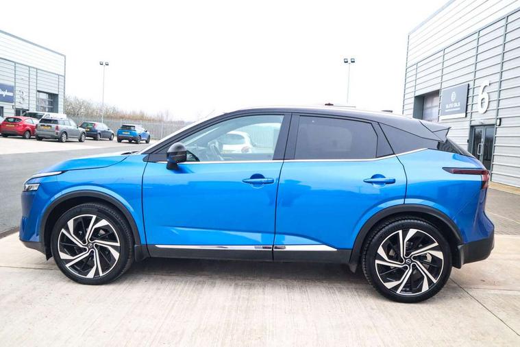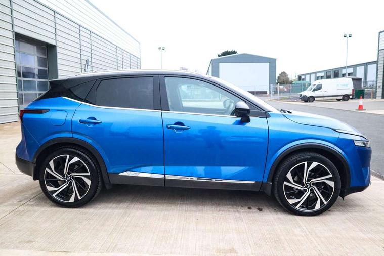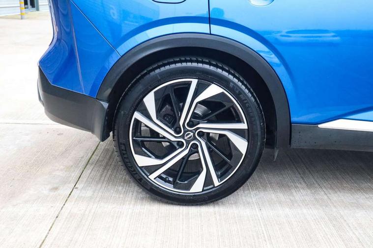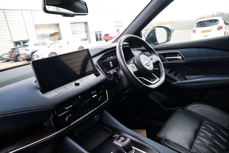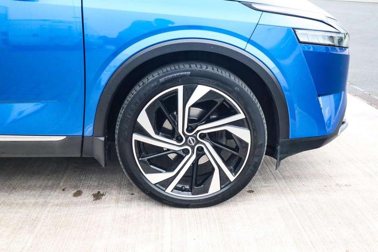 Advanced windscreen head up display, Android auto/Apple CarPlay (Wired), Blind spot warning, Drive modes (sport, normal, eco), Electric speed sensitive power steering, Emergency and breakdown call, Front and rear parking sensors, Full Digital 12.3" TFT Digital Combimeter, Google maps services - search, weather, 3D maps and Google street view, Hands free power tailgate, Idle stop/start system, Intelligent around view monitor, Intelligent Cruise control (ICC), Intelligent driver alert system, Intelligent forward collision warning, Intelligent lane intervention, Lane departure prevention, Lane departure warning system, Lane keep assist, Moving object detection, Nissan connect 12.3 inch touchscreen infotainment system, Nissan connect navigation, ProPilot, Push button starter, Rear cross traffic alert, Rear view camera, Remote control services - door locks, lights, horn and car locator, Telematics - notifications and connectivity services, TomTom live traffic services, Traffic jam pilot, Traffic sign recognition with legal speed adjustment, Trip computer, Virtual personal assistant and firmware over the air capability, Wireless apple carplay, Wireless charging pad, 10 Bose speakers - 2 tweeters, 6 high and medium frequency door speakers and 2 in subwoofer, AM/FM audio system with DAB, Bluetooth audio streaming, Bose acoustimass bass box, Digital amplifier, Front USB connections (Type-A and Type-C), Rear USB charging only ports (Type-A and Type-C), 3rd brake light, Auto dimming rear view mirror, Auto rear wiper when reversing, Automatic hazard signal with emergency stop signal, Body colour mirror caps, Body coloured door handles, Bodyside mouldings, Chrome side window finisher, Door handle with button, Door mirror memory, Electric auto folding door mirrors, Electrically adjustable and heated door mirrors with LED turn indicator, Follow me home headlights, Front and rear LED turning signals, Headlights auto levelling system, Intelligent auto headlights, LED daytime running lights, LED headlights with adaptive driving beam, LED rear lights, One touch front and rear electric windows with remote opening and closing, Privacy glass, Rear bumper with graphite insert, Rear reversing light (bulb lighting), Rear roof spoiler, Rear side wing doors, Rear styling plate, Reverse tilting door mirrors, Shark fin antenna, Splash free rain sensing wipers, Super UV and infrared cut glass, Thermaclear heated windscreen, Three blink turn signal, 12v power socket in dashboard and luggage, 2x Rear coat hooks, 3 bench rear seats in 2nd row, 3 rear headrests, 4 folding assist grip, 6 Luggage hooks - 4 on floor, 2 on side, 60/40 split folding rear seat bench, Ambient lighting around centre console, Ambient lighting in front doors, Centre console storage tray, Chrome interior door handles, Dark black/blueish PVC wrapping, Dark headlining, Driver and front passenger sunvisors with illuminated vanity mirrors, Driver seat back pocket, Dual zone automatic climate control with pollen filter, Electric 4-way lumbar support for drivers seat, Electric adjustable 4 way lumbar support for passenger seat, Electrically adjustable driver seat with massage and memory functions, Front and rear door storage, Front centre console and armrest, Front cupholders x 2, Front door with bottle holders, Glovebox with light, Hard trunk cover, Heated front seats, Heated steering wheel, Height adjustable driver's seat, Height adjustable front headrests, Height adjustable passenger seat, Leather steering wheel, Luggage board system, Luggage space lighting, Manually adjustable passenger (slide recline + lifter), Multifunction steering wheel, Passenger seat back pocket, Quilted premium leather upholstery, Rear armrest with 2 cupholders, Rear door bottle holders, Single front passenger seat, Soft PVC kneepad, Steering wheel gearshift paddles, Steering wheel switches, Tilt/telescopic adjustable steering wheel, Two rear isofix child seat anchorage points with top tether, Welcome light and doors with console tray ambient lighting, Glass roof pack with roof rails - Qashqai, 3x3 point rear seatbelt pretensioners + load limiters, ABS with EBD and brake assist, Active brake limited slip, Auto hold function, Child locks on rear doors, Curtain and front side, far side airbags, Driver and passenger airbags, Driver, passenger and 2nd row rear seat belt reminder, Electronic parking brake, Front seatbelt pretensioners + load limiters, Height adjustable front seatbelts, Hill start assist, Intelligent blind spot intervention, Intelligent front emergency braking with pedestrian, cyclist recognition and junction assist, Intelligent rear automatic braking, Tyre pressure monitoring system, Vehicle dynamic control, Advance intelligent key with driver memory storage (seats, mirrors, audio), Capless fuel filler, Engine immobiliser, Remote central door locking with deadlocking, Thatcham Cat.1 alarm, Interior instrumental panel C finisher, 20" Alloy wheels, Tyre puncture repair kit,