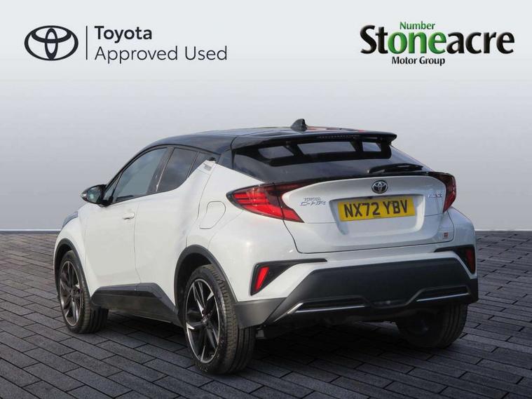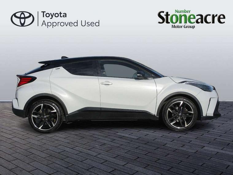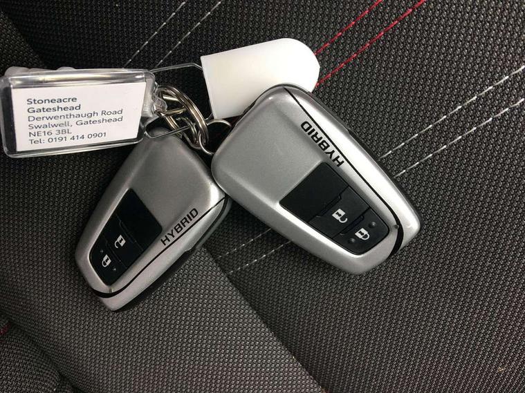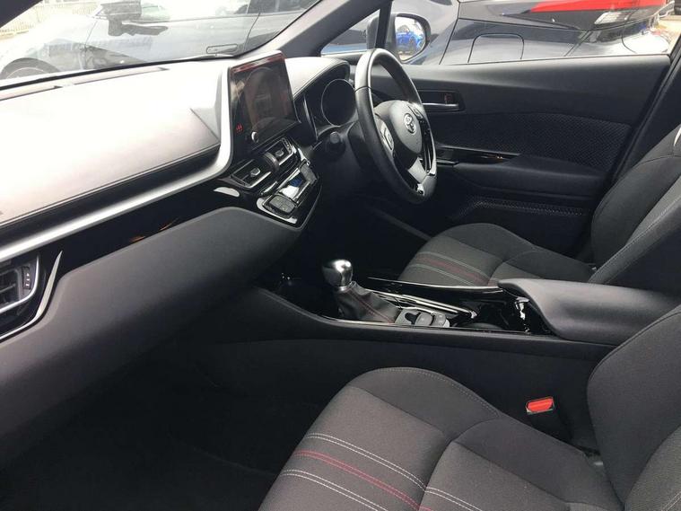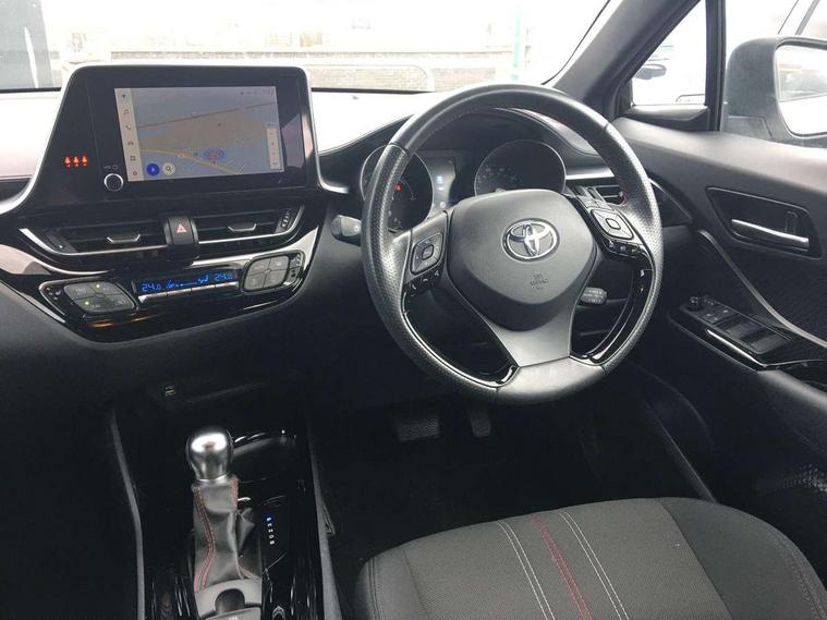 4.2" coloured TFT screen for multi-information display, Adaptive cruise control, Bluetooth connectivity, E-call, Electric power steering, Hybrid system indicator, Lane departure alert with steering control, Remote boot door release in cabin, Remote boot door release in key, Reversing camera, Road sign assist - RSA, Simple Intelligent parking assist, Touch 2 Go navigation system, Trip computer, Voice recognition, Vehicle Stability Control (VSC), 6 speakers, AM/FM radio, DAB Radio (Digital Audio Broadcasting), Toyota touch 2 multimedia system with 8" display, USB connector, Wi-fi connectivity, Adaptive front light system, Adaptive LED Headlights, Anti-jam protection on power windows, Auto high beam, Auto up and down function on all power windows, Automatic headlight levelling, Automatic headlights, Automatic headlights cut-off, Black and body coloured rear bumper, Black upper front grille, Body colour door handles, Body colour door mirrors, Body coloured front bumper, Boot door release with push button, Chrome front lower bumper, Electric heated door mirrors, Follow me home headlights, Front and rear power windows, Front spoiler lip in black, Hard tonneau cover, Honeycomb lower front grille, LED daytime running lights, LED fog lights, LED front light guide, LED High mounted stop light, LED rear brake lights, LED rear combination lights, Noise reduction layer on front windows and windscreen, Power adjustable door mirrors, Privacy glass, Rain sensor, Rear sequential indicators, Rear side wing doors, Rear spoiler, Rear tailgate, Rear window defogger, Rear window wiper, Shark fin antenna, UV-filter on driver and passenger windows, UV-filter on rear windows, 12v power outlet - front, 3 rear headrests, 3 seat bench in 2nd row, 3 spoke perforated leather steering wheel, 60/40 split folding rear seat, Adjustable rear headrests, Adjustable speed limiter switch on steering wheel, Assist grips front and centre pillar, Audio and telephone switches on steering wheel, Black front door assist grips, Blue ambient lighting on front cup holders, Blue ambient lighting on front doors, Boot light, Chrome interior door handles, Cloth upholstery, Driver and front passenger personal light, Driver and front passenger Whiplash Injury Lessening seats, Driver and passenger seatback pockets, Dual zone automatic air conditioning, Floor mats, Front cupholders, Front head restraints, Front sports seats, Glovebox with internal light, Heated driver and front passenger seats, Hooks for luggage holding net, Humidifying Nanoe air purifier, Illuminated entry system, Isofix attachments on rear seats, Leather gearshift, Light on driver sun visor, Light on passenger sun visor, Manual telescopic steering wheel, Manual tilt steering wheel, Manually height adjustable driver seat, Manually height adjustable front passenger seat, Manually reclining driver seat, Manually reclining front passenger seat, Manually sliding driver seat, Manually sliding front passenger seat, Microphone on front personal light, Mirror on driver sun visor, Mirror on passenger sun visor, Multimedia switches on steering wheel, Pollen filter, Power adjustable lumbar support on driver seat, Shopping bag hooks, Single front passenger seat, Slow opening on lower glovebox, Voice recognition switch on steering wheel, Tech with parking sensor pack - C-HR, 16 Disk front wheel brake, 3x3 point rear seatbelts, ABS+EBD+Brake assist, Electronic parking brake, Front and rear seatbelt reminder, Front passenger airbag on/off switch, Hill start assist control (HAC), Pre collision system with pedestrian detection, Pre-tensioners and force limiters, Rear door child safety locks, SRS Airbags - Driver + Front passenger, front side, front and rear curtain and driver's knee airbags, Toyota safety sense, Tyre pressure monitoring system, Acoustic vehicle alert system (AVAS), Glass-breaking alarm sensors, Immobiliser, Intrusion alarm, Intrusion sensor, Motion sensor alarm, Power door locks, Power passenger window lock, Remote central locking, Black lower dashboard, Black upper dashboard, Piano black console, Silver deco line on upper dashboard, 19" Black machined alloy wheels, Tyre repair kit,