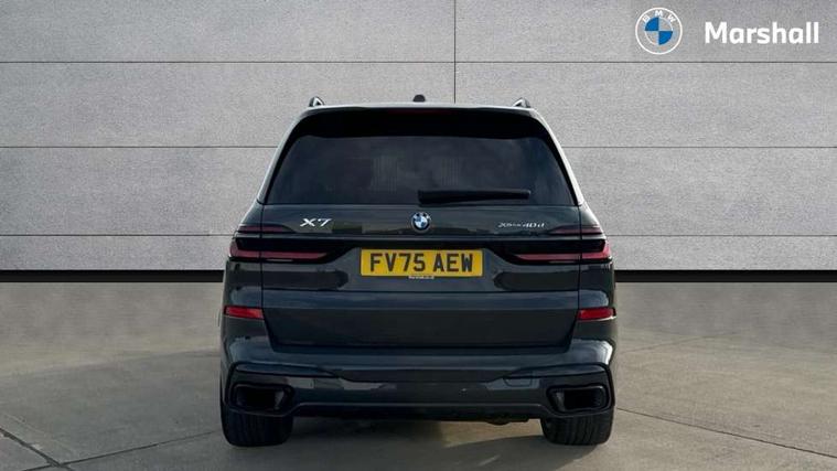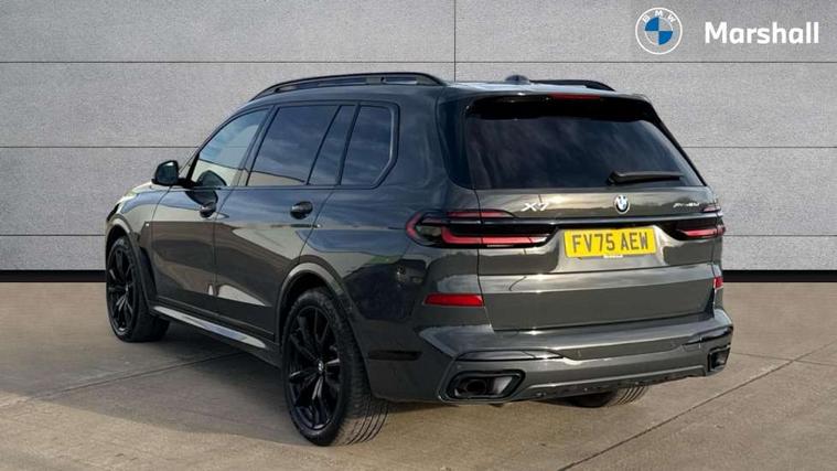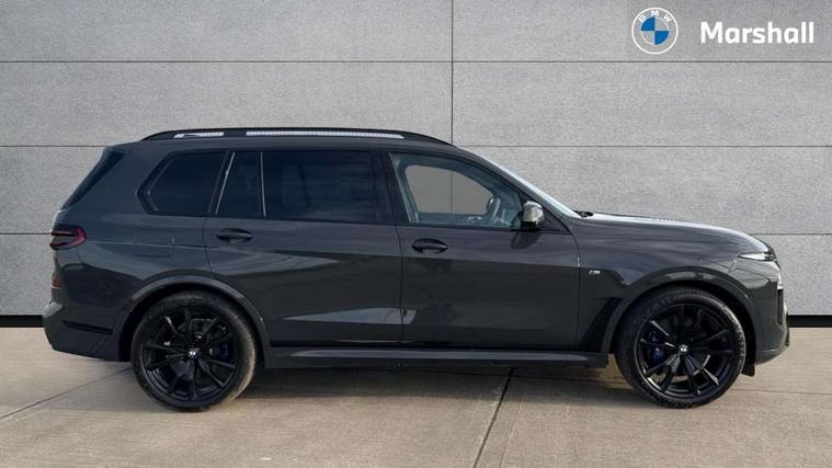 2 rear USB-C ports, Attentiveness assist, Automatic start/stop function, Automatic tailgate operation, BMW ConnectedDrive online services, BMW Drive recorder, BMW gesture control, BMW Teleservices, Brake pad wear indicator in front and rear, Condition based service, Integrated owner's handbook, Live Cockpit Professional with head up display including 12.3" instrument cluster and 14.9" central display, Parking assistant pro including reversing assistant, PDC, lateral parking aid, reversing assist camera, parking drive off monitoring, 48V Mild hybrid technology, 8 speed automatic with steptronic transmission including automatic hold function and gearshift paddles on the steering wheel, Drive experience switch with comfort mode + ECO PRO + sport mode, Permanent all wheel drive, 2x Front USB (1x USB-C, 1x USB-A), DAB radio, Personal eSim, Acoustic glazing, Adaptive air flap control bars in high gloss black, Air breather and door claddings in high gloss chrome, Body coloured wheel arches, Dynamic brake lights with LED technology, Electrically adjustable and heated aspheric folding side mirrors with auto dimming, electric fold in function, automatic parking function, Exterior and central air inlets in front bumper painted pearl chrome, Follow me home headlight function, Frameless interior mirror, Front and rear electric windows, Heated windscreen washer nozzles, High beam assist, High gloss black shadow line roof rails, High gloss black shadowline trim in side/window frame, window recess cover, window guide, B and C pillar, mirror triangle, mirror base, mirror frame, Integrated turn indicators (door), LED daytime running lights, LED rear lights, LED third brake light in rear spoiler, Rain sensor with automatic headlight activation and windscreen wiper control, Rear side wing doors, Sump guard front and rear painted in silver, Trailer stabilisation logic, 12V - Power sockets with 2x centre console and 1x luggage compartment, 2 seat bench in 3rd row, 2x cupholders in front, rear centre armrest and two in third row seats, 3 seat bench in 2nd row, 3 spoke M leather multifunction steering wheel, 40:20:40 split folding rear seat backrests, Ambient lighting strip in the instrument panel with illuminated, Armrest in front centre console, Compartment in front of cupholder, Driver and front passenger sunvisors with illuminated vanity mirrors and ticket holder, Electrical steering column with adjustable height and length with activation and control on the steering column, Entry sills with illuminated M inscription, Fold down flush into floor of luggage compartment 50:50, Front and rear colour co-ordinated with all standard carpet colours, Front and rear door pockets, Front and rear side armrests integrated into door trim, Front seat back pockets, Grab handles, Height adjustable front headrests, Height adjustable rear headrests, Lockable glove compartment, Nano filter, Single front passenger seat, Soft close doors, Storage tray and compartment with lid in centre console, Wireless charging tray, Additional storage compartment pack - X7, Ambient light interior pack - X7, Connected Package Professional - X7, Interior lighting pack - X7, Luggage compartment pack - X7, M aerodynamics pack - X7, M Sport pack - X7, 3 point seatbelts on all seats, front pyrotechnic belt tensioners, stopper and belt force limiters, front and outer rear seats, Acoustic protection for pedestrians, Active protection, Airbag - Front driver and passenger, side airbags and Head airbags, Anti lock braking system (ABS) with cornering brake control, BMW emergency call, Child seat ISOFIX attachment rear outer seats in 2nd row and both seats in 3rd row includes top tether, Comfort access system with digital key plus, Comfort cushion seats for outer seats in 2nd row, Crash sensor inclu activation of airbags, interior light, safety battery terminal clamp, hazard warn flasher, unlock doors, deactivation of fuel pump, DSC - Dynamic Stability Control, Dynamic Traction Control - DTC, Electromechanical parking brake with automatic drive away release and auto hold function, Front and rear brake discs with interior ventilation, Hill descent control, Integrated braking system, Manual child lock in rear doors, PC iBrake PostCrash approach control warning with light braking function, Tyre pressure monitoring system, Tyre pressure sensors, Variable torque distribution, Warning triangle and first aid kit, Alarm, Central locking including 2 vehicle keys with integrated emergency key, Engine immobiliser, Locking wheel bolts, Galvanic embellisher for controls,