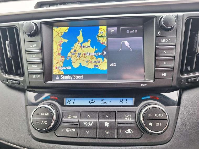 Bluetooth system, Cruise control, Electric power steering, Rear parking camera, Touch 2 touchscreen satelite navigation + CD/Radio/MP3 player/ipod connectivity, Trip computer, Vehicle Stability Control (VSC), 6 speakers, Auxiliary socket for external MP3 player, DAB audio, Multimedia System, Steering wheel mounted audio controls, USB connection, Auto dimming interior mirror, Automatic headlights, Automatic rain sensing wipers, Body colour door handles, Body colour door mirrors, Chrome strip on lower grille, Chrome trim to front bumper, Chromed back door plate, Dusk sensitive headlamps, Electric adjustable heated door mirrors, Electric windows + anti trap protection + one touch open/close drivers side, Follow me home headlights, Front and rear underruns, Front fog lights, LED daytime running lights, Manual headlamp level control, Privacy glass, Rear screen wiper - intermittent, Rear spoiler, Retractable door mirrors, 3 rear headrests, 3 spoke steering wheel, 3 x 12V power sockets, 60/40 split fold rear seat back, Active headrests, Assist grips, Cargo net, Chrome inner door handles, Coat hooks, Cupholders, Driver/passenger sunvisors and vanity mirrors, Dual zone climate control, Folding rear centre armrest, Front centre armrest, Front seat and rear pockets, Glovebox, Height adjustable driver's seat, Illuminated entry system, Isofix child seat preparation, Leather door trim, Leather gear knob, Leather steering wheel, Luggage area lamp, Reach + rake adjustable steering column, Reclining rear seats, Sliding centre console box, Sliding front seats, Sports seats, Sunglasses holder, Tonneau cover, 3x3 point rear seatbelts, ABS/EBD, Brake assist function, Child proof door locks, Driver/Front Passenger airbags, Driver/front passenger side airbags, Drivers knee airbag, Front and rear curtain airbags, Hill start assist, Passenger airbag cut-off device, Seatbelt pretensioners with load limiters, Traction control, Tyre pressure warning, Alarm/immobiliser, Folding key, Remote central locking, Leather instrument panel, 17" Alloy wheels, Space saver spare wheel,