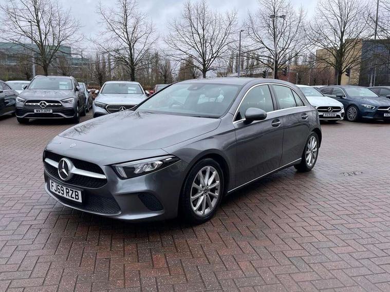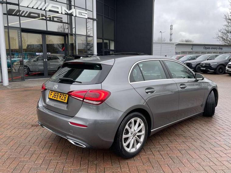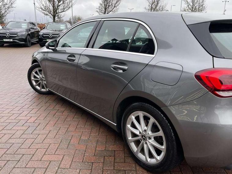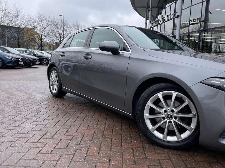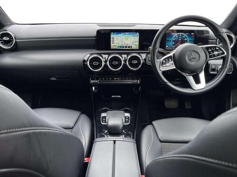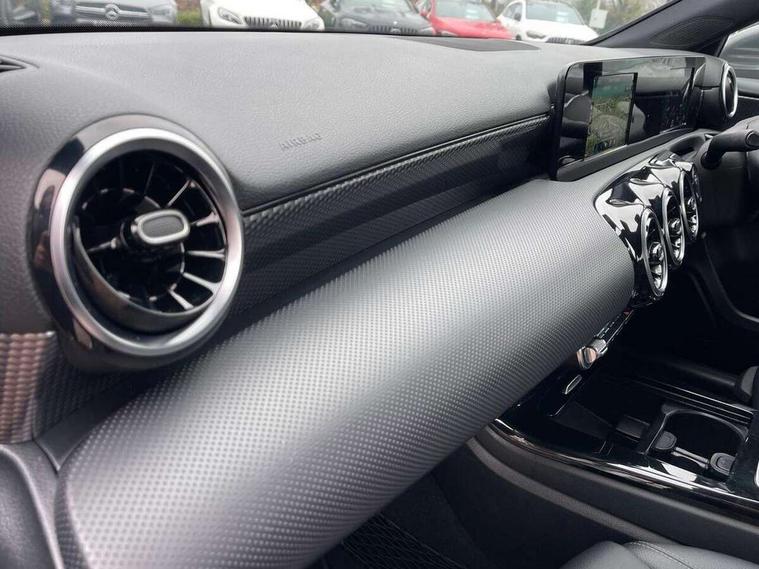 180 degree rear view camera with parking guidelines, 7" colour screen in instrument panel, 7" touchscreen media display, Active lane keep assist, Attention assist, Brake pad wear indicator warning light, Cruise control + speed limiter, Direct steering, DYNAMIC SELECT with a choice of driving modes (ECO, Comfort, Sport and Individual), ECO start/stop function, Fluid level warning indicator for fuel, oil, coolant and washer fluid, Hard-disk navigation, Hey Mercedes Voice activation, Lamp failure indicator, Mercedes me connect including emergency call system, accident recovery, breakdown and maintenance management, Outside temperature gauge, Radio aerial integrated into roof spoiler, Service indicator (ASSYST), Speed sensitive power steering, Trip computer, Lowered comfort suspension, DAB Digital radio, Dual bluetooth interface, 2 USB ports (type C), MBUX multimedia system with DAB digital radio and touchpad including satellite navigation, 4 Electric Front and Rear windows, Active aerodynamics with AIRPANEL in the front apron, Adaptive brake lights, Blue tinted glass, Body colour bumpers, Body colour door handles, Body colour side skirt, Body coloured door mirrors, Chrome beltline trim, Chrome weather strip, Diamond radiator grille with black pins with one louvre in silver + chrome insert, Electric adjustable and heated door mirrors with integrated LED side indicators, Exhaust system - Twin trapezoidal tailpipes in polished stainless steel, Headlamp assist automatic headlamp activation, Heated glass rear windscreen + timer control, LED high performance headlamps with integrated LED daytime running lights, LED tail lamp, LED third brake light, Rain sensor windscreen wipers, Rear fog lights, Rear wiper, 12V socket, 3 Spoke leather multi function steering wheel, 40:20:40 split folding rear seats, Air vents surround and cruciform nozzle in silver chrome, Artico man-made leather/Fleron fabric upholstery, Auto Mercedes-Benz child seat recognition sensor, Black roof lining, Controller on centre console with chrome surround, Cup holder and stowage compartment lighting, Floor mats, Freight packaging without tie-down hooks, Front centre armrest with storage compartment, Front comfort seats with adjustable head restraints, Front door sills with Mercedes Benz lettering, Front doors with ambient and signal light, Front footwell lights, Front reading lamps in left and right console downlighter, Front seat backs luggage nets, Front seat cushion length adjustment, Front signal exit lamp, Front vanity lights, Gearshift paddles on steering wheel, Handle recess/closing light, Height/reach adjustable steering column, Illuminated glove compartment stowage, ISOFIX Child seat top tethers and anchor fixings, Luggage compartment cover, Manual height adjustable front seats, Oddments tray lighting, Rear head restraints, Rear Reading Lamps, Seat occupancy sensor for front passenger seat, Spectacles compartment for driver, Storage compartment under load area floor, Stowage compartment in centre console with retractable cover, Sunvisors with illuminated vanity mirrors, Touchpad, Touchpad illumination, Twin front cupholders, Two zone thermotronic luxury automatic climate control, Light and sight pack - A Class, Seat comfort pack - A Class, 3 rear 3 point seatbelts, ABS with Brake Assist, Active bonnet, Active brake assist includes forward collision warning system with autonomous braking, Adaptive brake assist with hold function and hill start assist, Black seatbelts, Childproof locks manually operated for rear doors and electrically operated for rear power windows, Crash responsive emergency lighting, Driver and passenger head and side airbags, Drivers knee airbag, Dual stage driver/passenger airbags, Electronic parking brake, ESP curve dynamic assist, ESP with ASR, Front and rear seatbelt reminder, Tyre pressure monitoring system, Warning triangle and first aid kit, Window airbags, Alarm system/interior protection/immobiliser, Keyless Go, Remote central locking and crash sensor with emergency opening function, Dark carbon fibre interior trim, 17" 10 spoke light alloy wheels painted in vanadium silver, Summer tyres, Tirefit sealant kit,